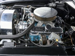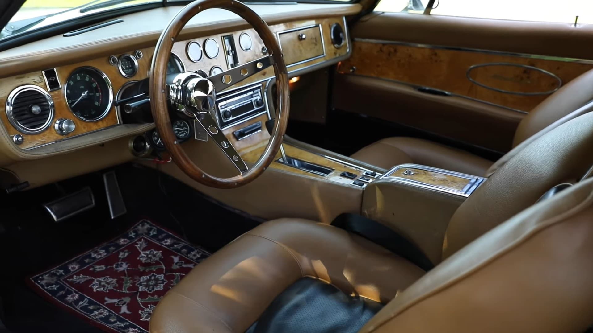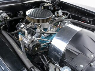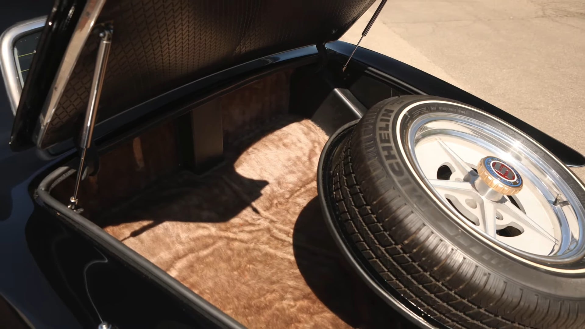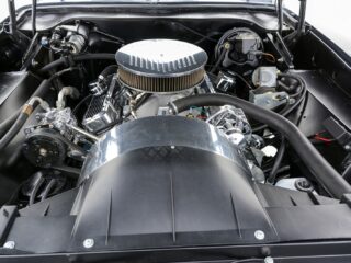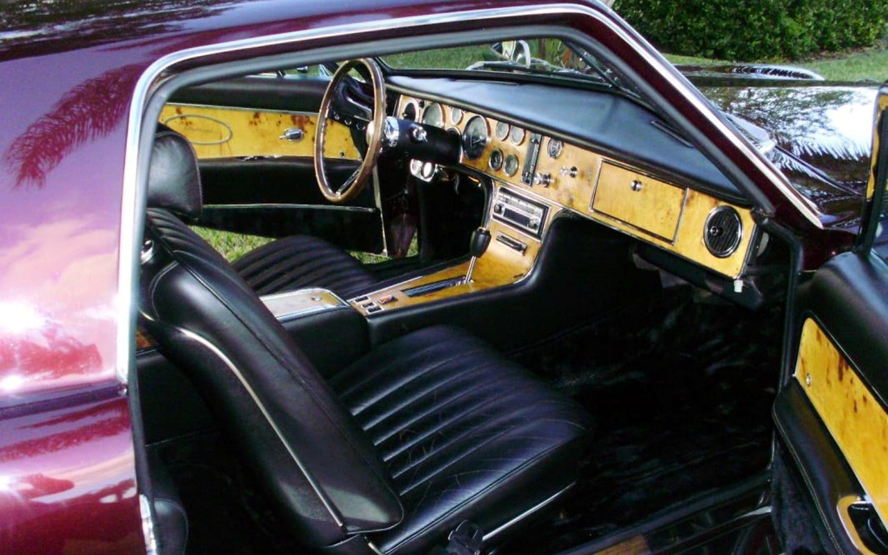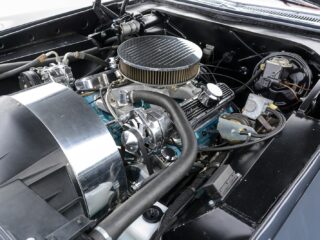 Le couvercle du coffre se soulevait sur des jambes de force à gaz pour éviter l’aspect horrible des charnières “dogleg”. Parmi les autres caractéristiques intéressantes de la Blackhawk, citons les commandes d’éclairage automatiques via Twilight Sentinel de Cadillac, la climatisation automatique de Cadillac et le régulateur de vitesse Cadillac. La chaîne stéréo était de Lear Jet et comprenait un lecteur de huit pistes pour écouter les succès des Bee Gees. La sécurité était assurée par un verrouillage central en conjonction avec une alarme de voiture Cadillac. La suspension Cadillac était pneumatique et réglable selon les préférences du conducteur. En plus de tout le bois décoratif, les cuirs, le bar à alcool et plus de luxe que nécessaire, la Blackhawk avait besoin d’une grande centrale thermique et il y en avait une ! Venant de la Pontiac Grand Prix son grand V8 de 7,5 litres (455ci) délivrant 425cv avait été conçu par Pontiac à l’époque où GM faisait encore ce genre de chose !