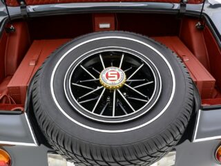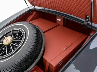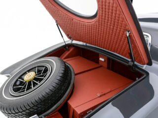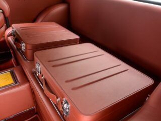 Il y avait une petite armoire à alcool à l’arrière de la Blackhawk 4 portes, mais la garniture arrière variait selon les préférences du client. De grandes valises de taille “bagage enregistré” étaient disponibles, également recouvertes de cuir et finies dans la même couleur que l’intérieur de la Blackhawk. Ces bagages pouvaient également être dupliqués pour la zone du coffre, ce qui signifiait un ensemble complet de quatre grandes valises. Les bagages du coffre étaient spécialement fabriqués et avaient une forme à cinq côtés très gênante : ils devaient s’adapter à la forme de la roue de secours, qui s’immisçait dans le coffre et était fixée dans sa position. Un propriétaire de Blackhawk était la seule personne à l’aéroport avec des bagages en forme de pentagone ! Le reste du coffre était rembourré et fini dans le même cuir fin (ou fourrure) que l’intérieur.