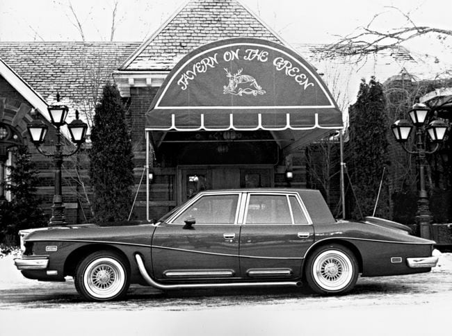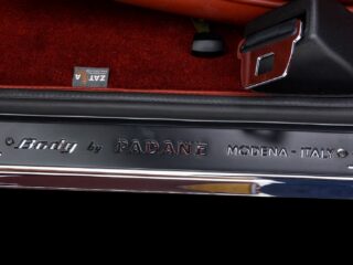 Ce qu’Exner a retravaillé pour le prototype de 1968 et les débuts ultérieurs de la Blackhawk en 1970 s’apparentait davantage à la version d’une Pontiac Grand Prix trop stylée. Un grand nez de cercueil chromé ouvrait la voie, fendu au milieu et soutenu en maille. Un logo Stutz rouge prenait la place de tout autre ornement de capot. Clé de l’aspect frontal d’une Néo-Classique, de grands phares circulaires se détachaient de manière indépendante, entourés de boîtiers chromés. Des feux plus petits flanquaient les phares de chaque coté. Tout l’éclairage avant était monté sur une extension du pare-chocs qui avait sa propre lèvre chromée qui rencontrait l’entourage de la calandre au milieu. L’aspect général de l’avant en ce qui concerne l’éclairage n’était pas si différent de la configuration de l’Imperial de 1961. Exner était assez coincé sur cette idée. L’Exner-Stutz a fait ses débuts en janvier 1970 à l’hôtel Waldorf Astoria à New York. Contrairement au concept qui avait été construit par Ghia, la production Blackhawk a été construite par la Carrozzeria Padane. Les panneaux étaient fabriqués “à la main” et toute la carrosserie était construite en acier épais et lourd… Les artisans de Padane ont appliqué entre 18 et 22 couches de peinture sur la Blackhawk pour obtenir une finition supérieure. Peindre chaque Blackhawk prenait environ six semaines !