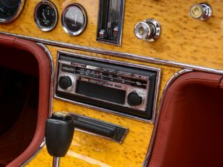 Elvis n’était pas le seul artiste musical au-delà de la fleur de l’âge de sa carrière, intéressé par la Stutz Blackhawk, car Frank Sinatra a également levé la main pour la posséder ! Elvis a fini par l’emporter d’être le premier client parce qu’il était un peu moins pointilleux que Sinatra. L’accord d’achat du prototype avait une condition attachée : le distributeur Stutz Jules Meyers était autorisé à exposer la Stutz Blackhawk au Salon de l’auto de Los Angeles en 1970, et l’acheteur (Elvis) devait poser pour des photos de relations publiques devant et dedans la Stutz Blackhawk lorsqu’il en prendrait livraison. Sinatra a dit : “Je ne suis pas un singe, je ne peux pas accepter ça”. En gros il a refusé ! Peu de temps après la livraison, Elvis a envoyé sa Stutz Blackhawk au modificateur de bon goût : George Barris pour quelques modifications et enlaidissements complémentaires (sic !). Il a également dépensé un paquet de dollars en janvier 1971 alors qu’il n’avait presque jamais entendu causer de technologie, pour un téléphone de voiture qu’il a fait installer dans la Stutz Blackhawk. L’énorme appareil lui a couté 1.467 US$ soit 11.000 US$ actuels).