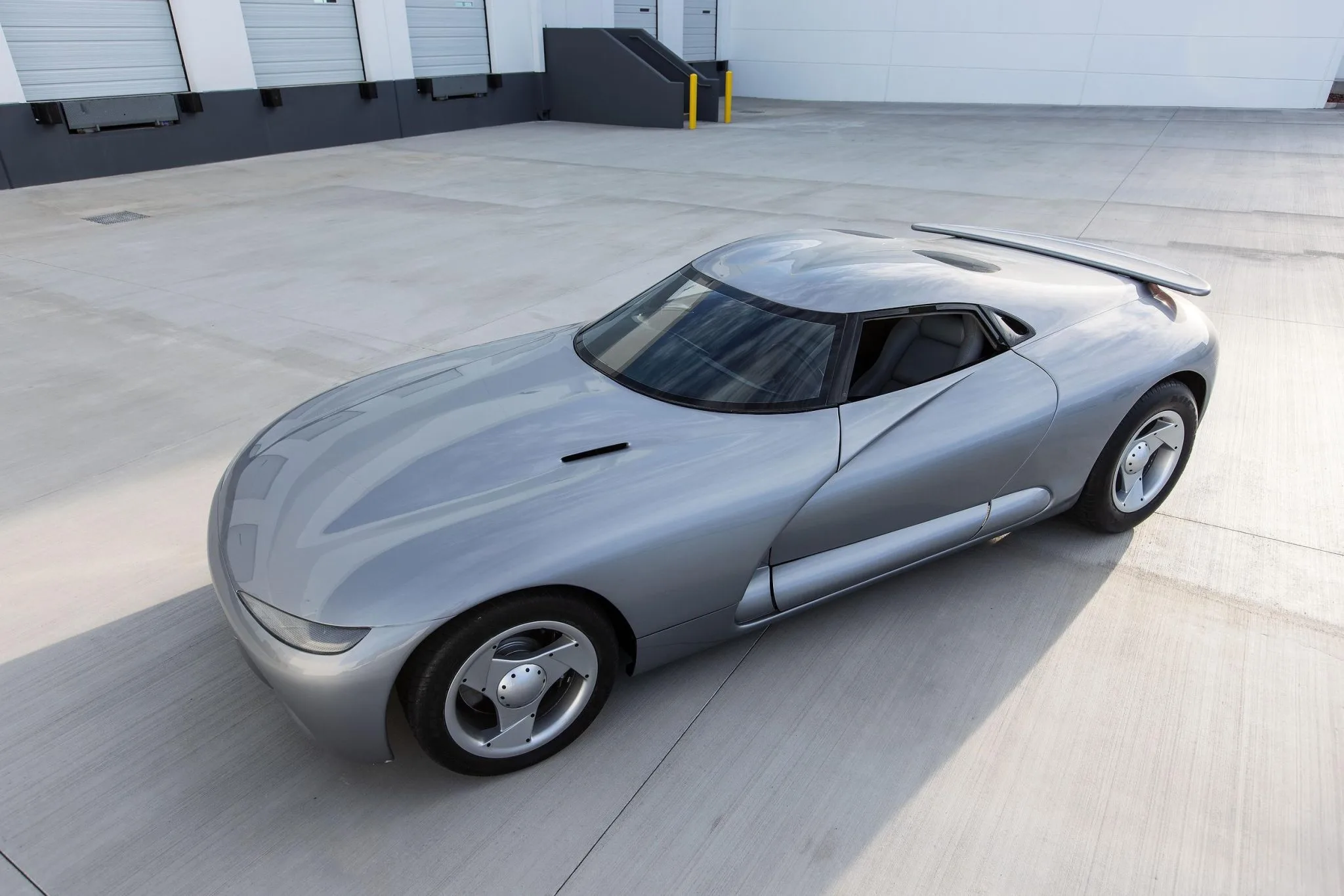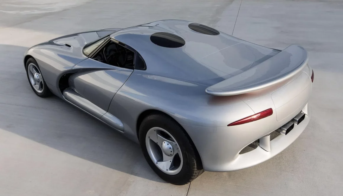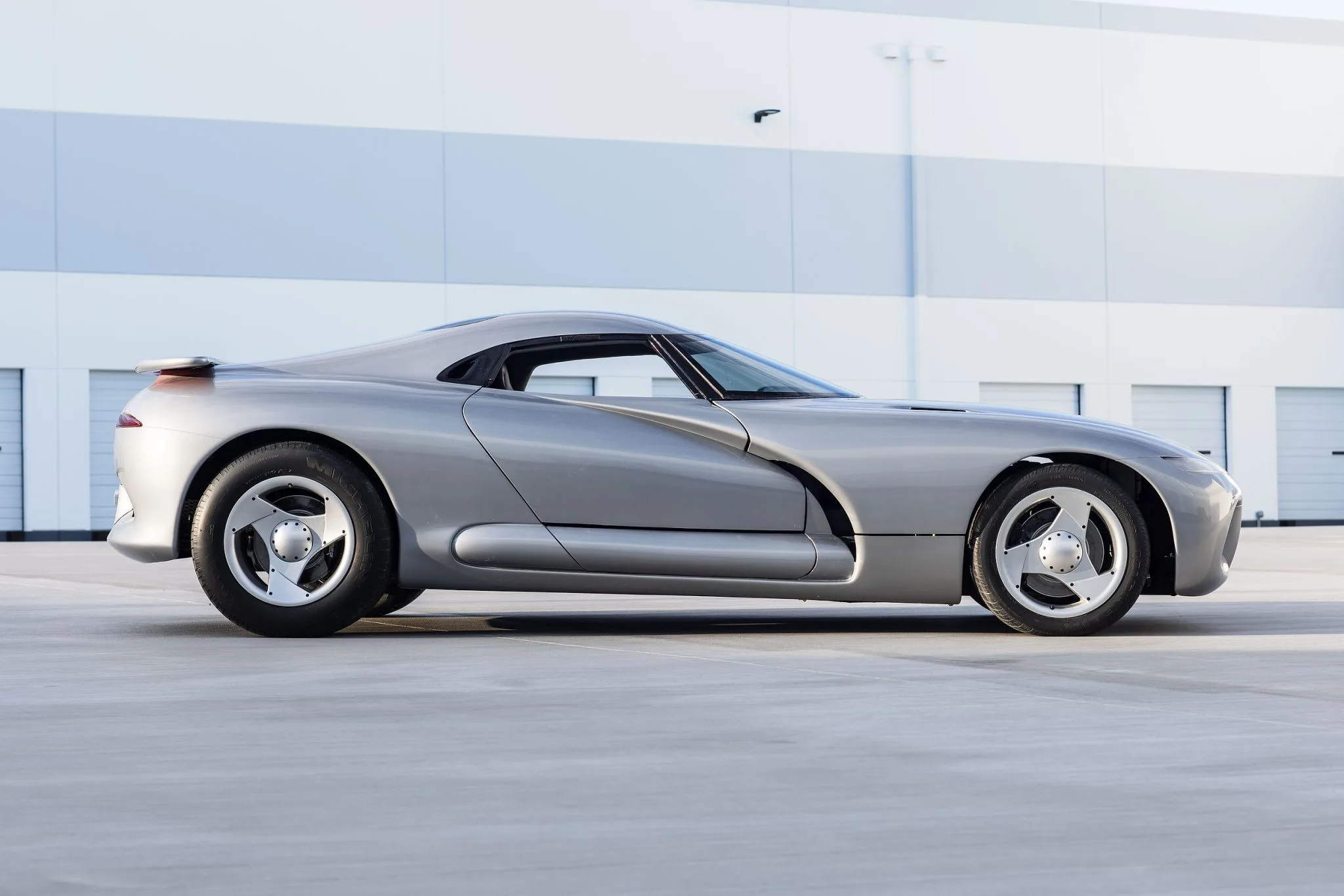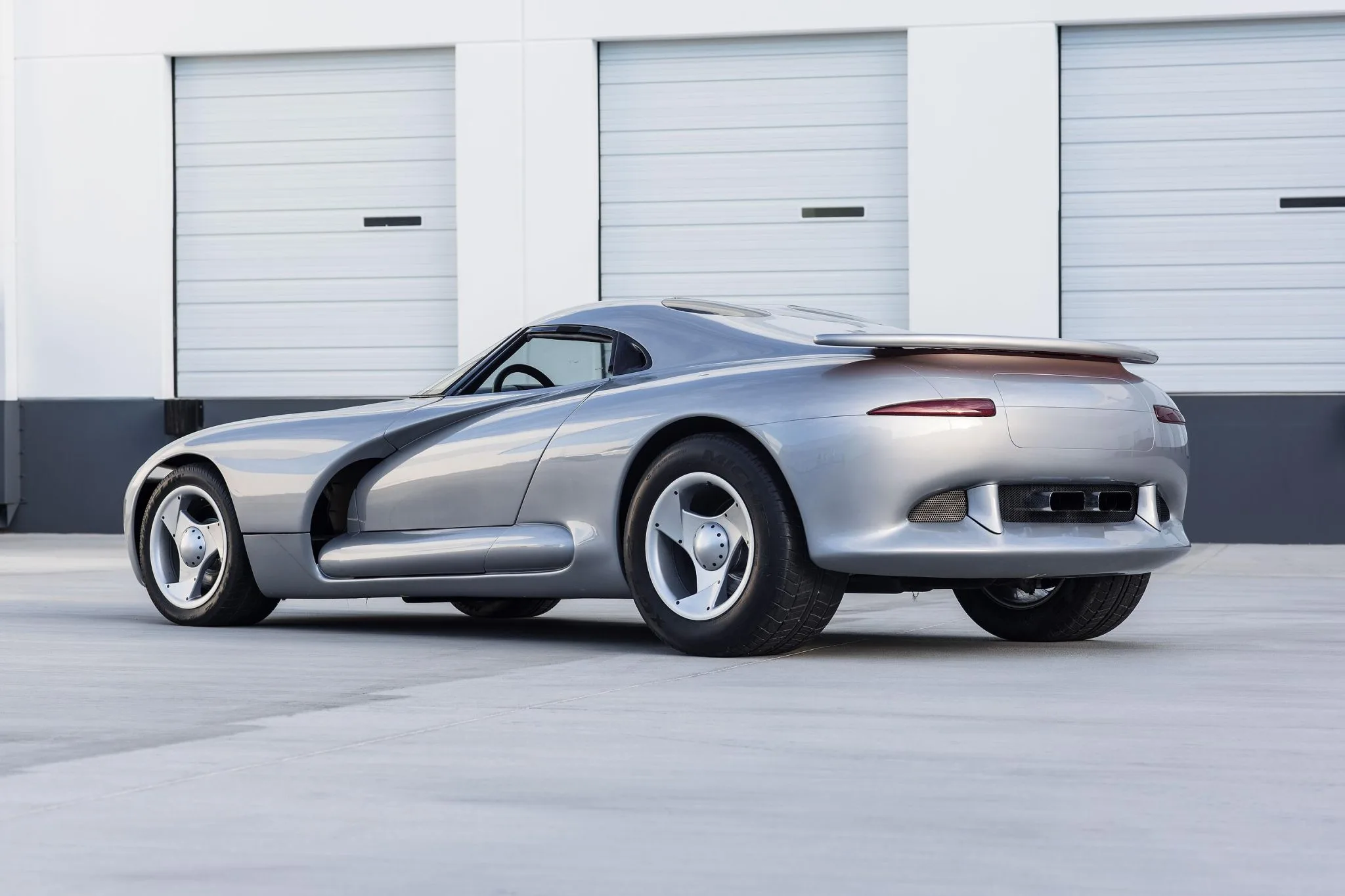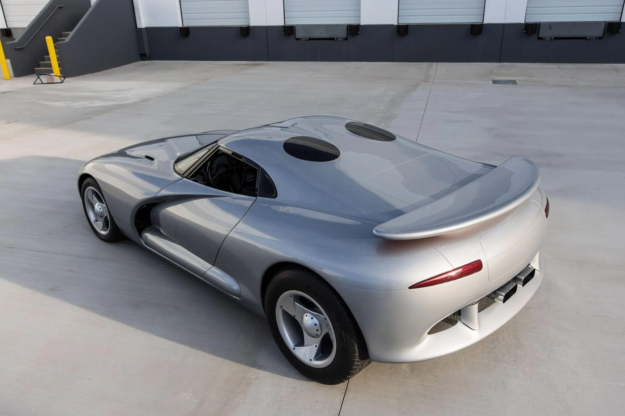 Construite sur un châssis Dodge Viper R/T 1993 allongé de 10 pouces, la voiture est dotée d’une carrosserie coupé en fibre de verre couleur argent et est propulsée non par le V10 mais par un V8 360ci Chrysler à carburateur couplé à une transmission automatique 727. Les caractéristiques supplémentaires comprennent des jantes à trois branches de 17 pouces en largeurs décalées et pneus 275/40 à l’avant et 335/45 à l’arrière, des freins à disques assistés, une direction à crémaillère à assistance électrique, une sellerie intérieure en cuir noir et gris.