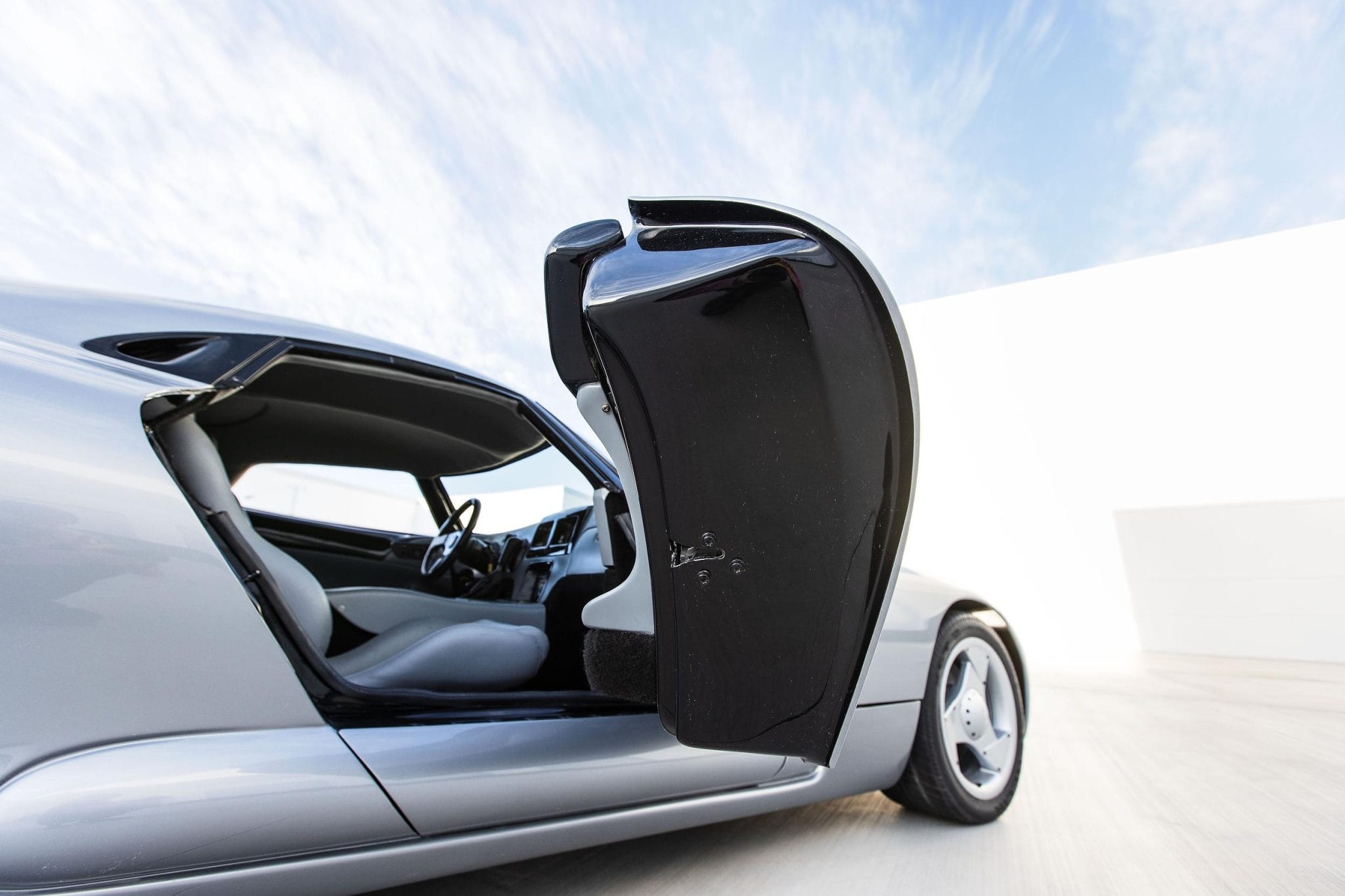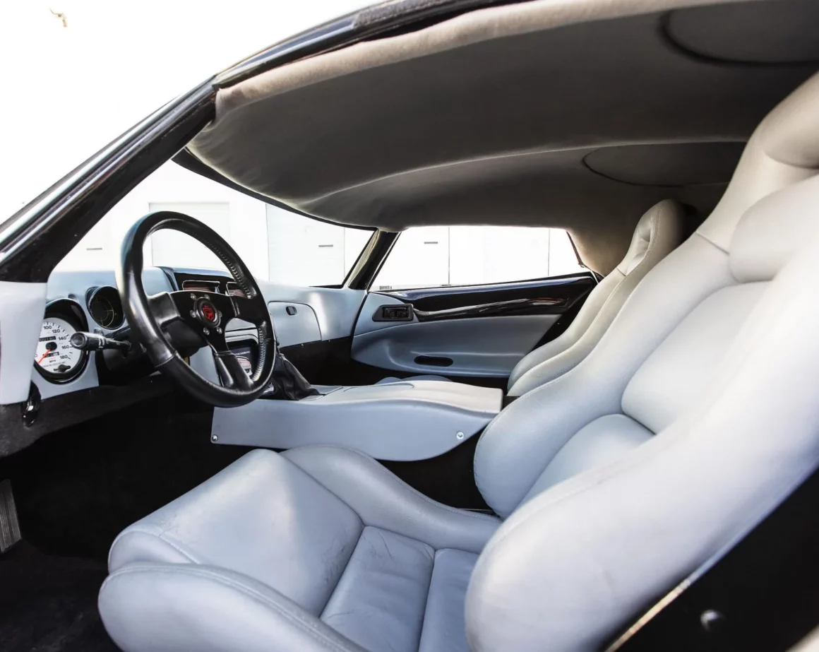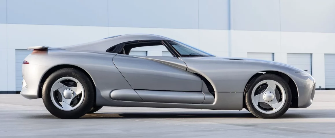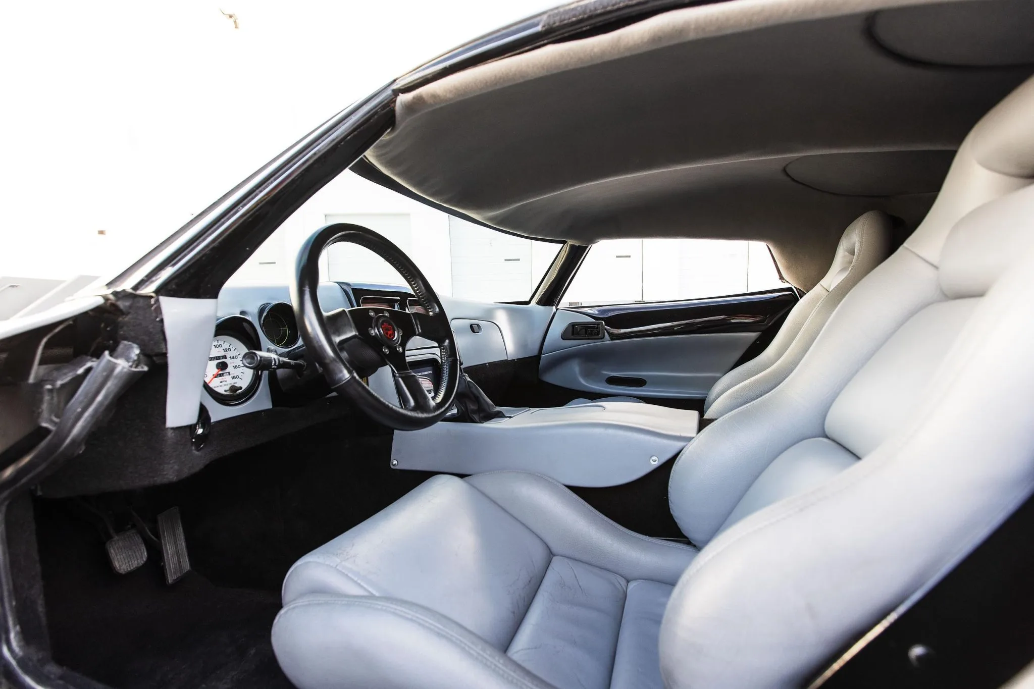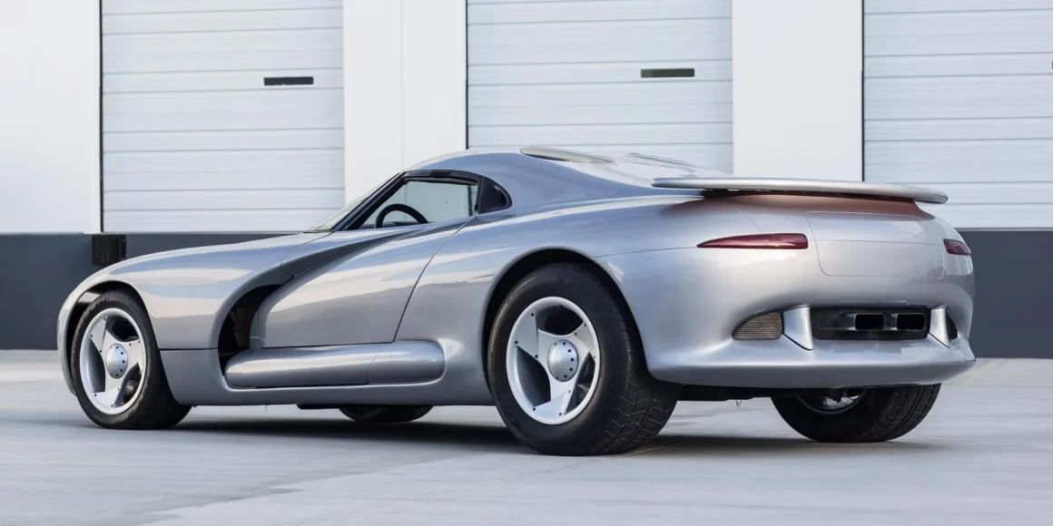 Construite sur un châssis Dodge Viper R/T 1993 allongé de 10 pouces, la voiture est dotée d’une carrosserie coupé en fibre de verre couleur argent et est propulsée non par le V10 mais par un V8 360ci Chrysler à carburateur couplé à une transmission automatique 727. Les caractéristiques supplémentaires comprennent des jantes à trois branches de 17 pouces en largeurs décalées et pneus 275/40 à l’avant et 335/45 à l’arrière, des freins à disques assistés, une direction à crémaillère à assistance électrique, une sellerie intérieure en cuir noir et gris.