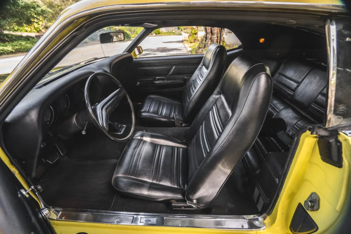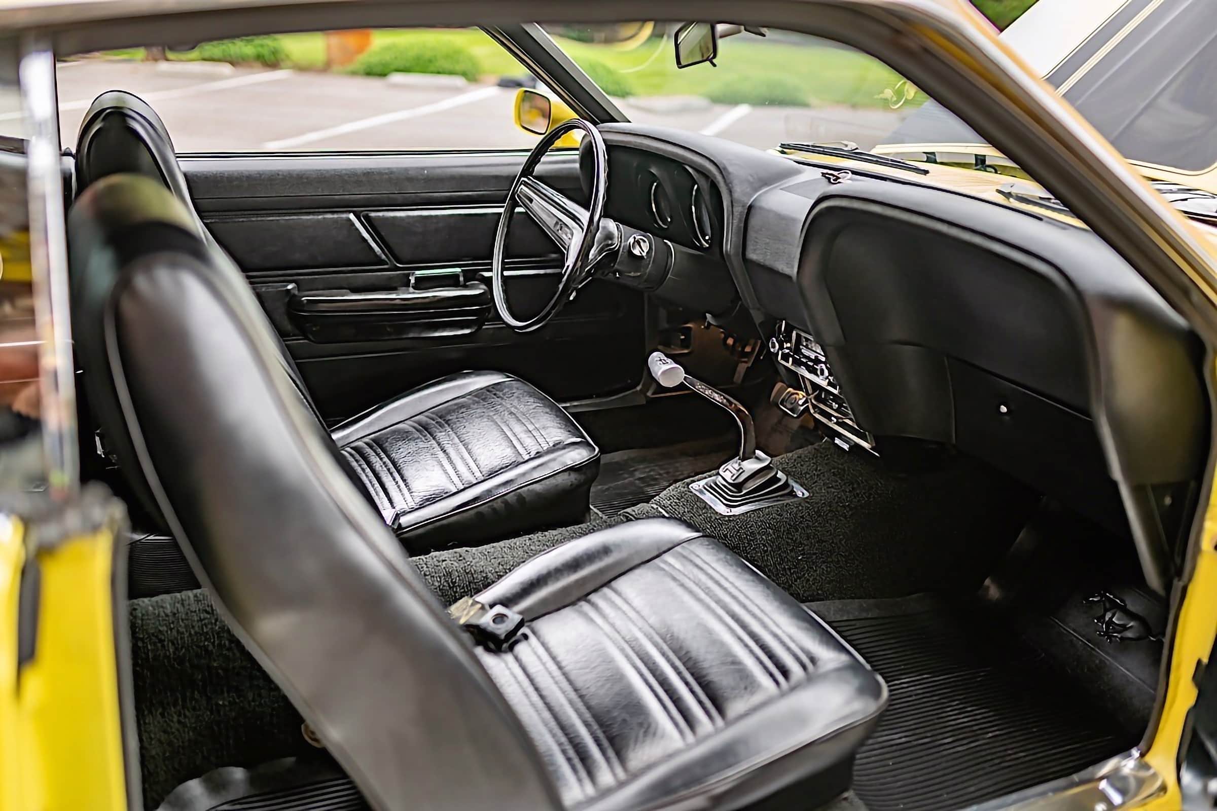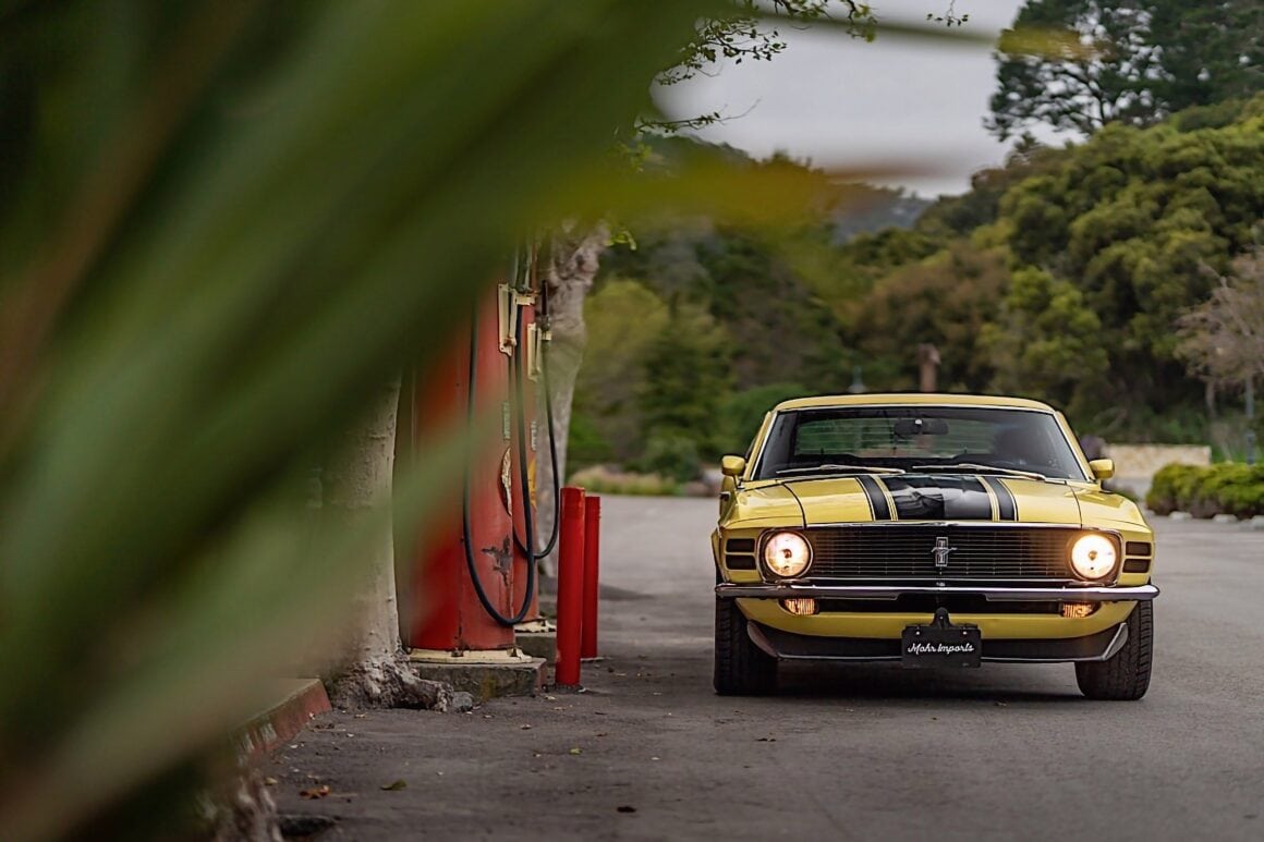 Les plus visibles étaient les pneus F60-15 qui mettaient plus de huit pouces de caoutchouc sur la route montés sur des jantes de 15 et 7 pouces de large. Les pneus étaient si larges pour l’époque que des ailes avant et arrière avaient été subtilement modifiées. Pour dégager la suspension avant, il fallait également que les roues soient décalées plus loin vers l’extérieur de la voiture, ce qui, à son tour, nécessitait de nouvelles broches avant avec les roulements de roues plus grands. Les gros pneus devaient vraiment adhérer à la chaussée pour valoir autant de peine, c’était le cas. La nouvelle maniabilité de la Mustang a exigé une plus grande révision de la philosophie du département d’ingénierie que des pièces de suspension. Se débarrasser de l’habitude de sous-virage n’est pas plus facile que d’abandonner l’herbe ou les noix de peyotl et Ford doit encore tant d’années plus tard être félicité pour sa réhabilitation. Une chose était en sa faveur dès le début, c’est la répartition du poids – 55,7% sur les roues avant de la Boss 302 contre 59,3% pour la 428 Mach I.