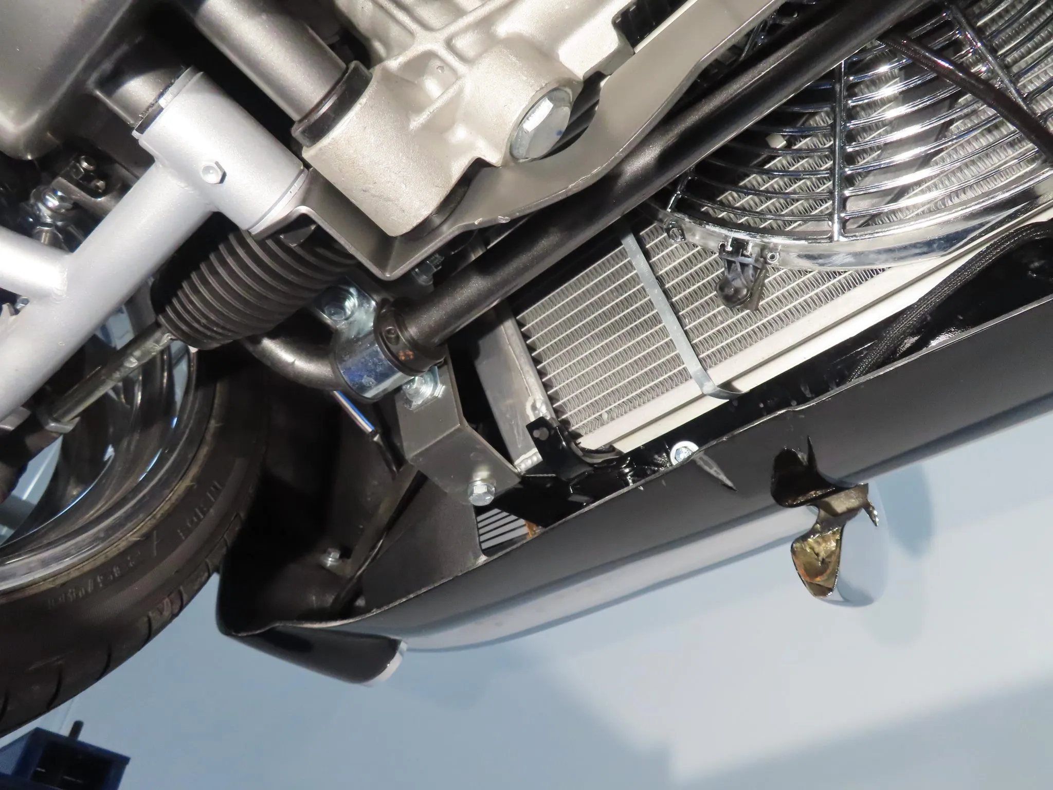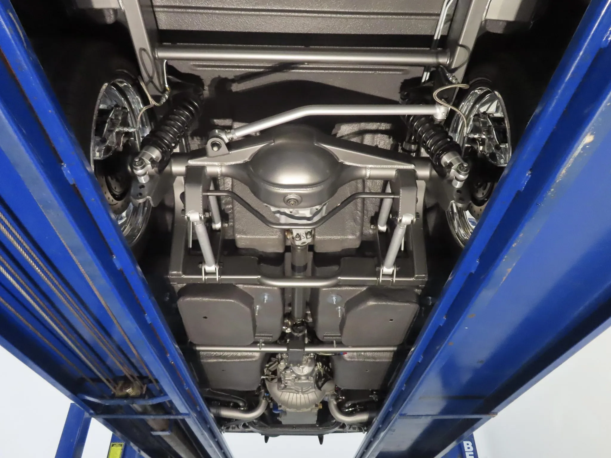 L’équipement accessoire comprend la climatisation, une radio à l’ancienne avec boutons-poussoirs, des vitres électriques et un moniteur de caméra de recul monté en rétrovision. Je m’en voudrais d’oublier de mentionner l’équipement supplémentaire comprenant lesystème d’entraînement d’accessoires en serpentine Eddie Motorsports, un radiateur en aluminium, et une batterie Optima…