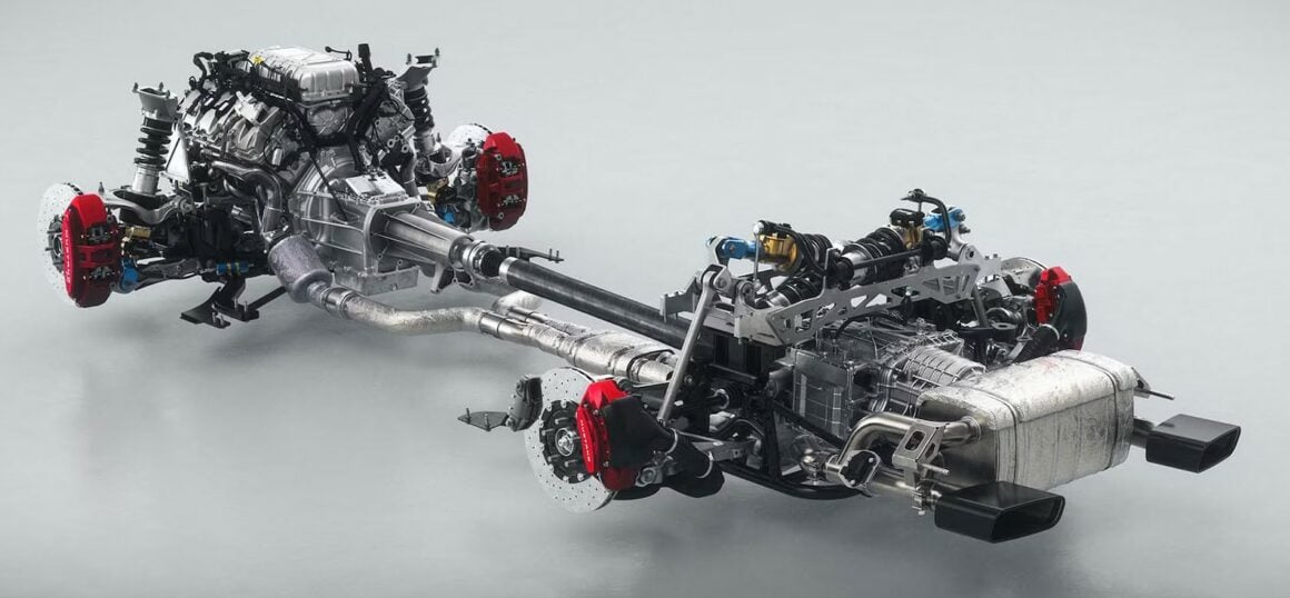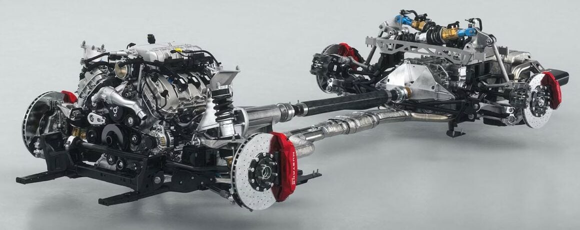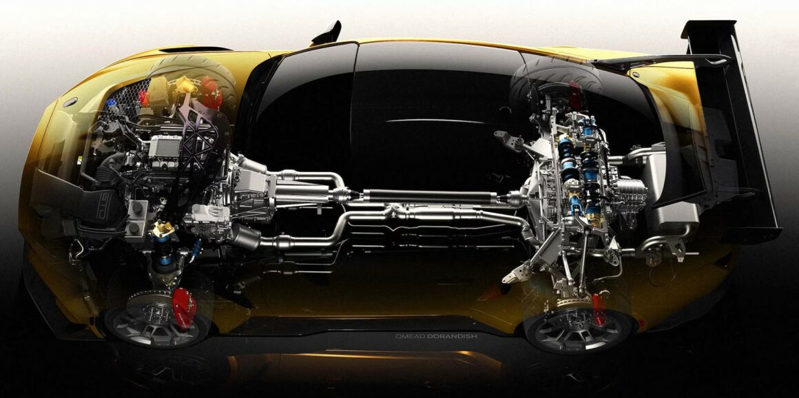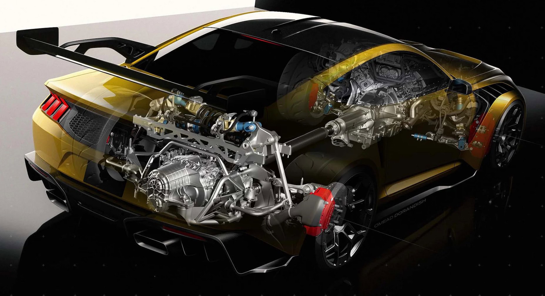 La puissance du V8 dépasse de loin le V8 Coyote de 5,0 litres d d la Dark Horse, qui développe 500 ch et 418 lb-pi de couple, et il surpasse également facilement la voiture de course GT3, qui dépose son V8 atmosphérique à 5,4 litres pour plus de durabilité, mais qui est plafonnée par les règles de course à 550 chevaux.