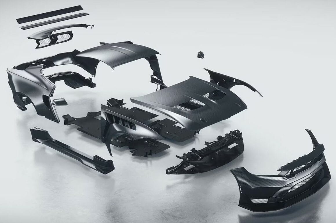 Des carénages avant et arrière en fibre de carbone seront disponibles en option. Les portes, cependant, restent en acier. Ford prévoit également d’offrir un ensemble aérodynamique comprenant un plateau de soubassement en fibre de carbone. Il y a aussi certaines technologies qui seraient illégales en course, telles que des volets avant à commande hydraulique.