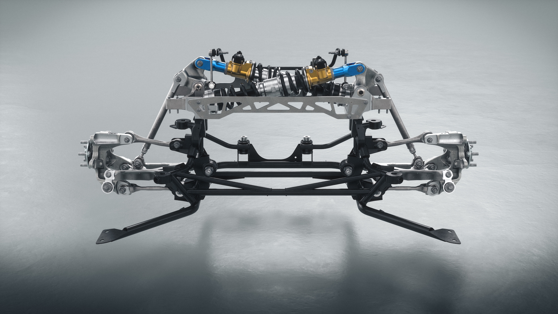 En adaptant les amortisseurs en temps réel pour différents virages, la suspension peut passer de complètement rigide à complètement souple en 10 millisecondes. Les amortisseurs sont disposés de manière horizontale avec actionnement par tige de poussée, une architecture de suspension courante dans les voitures de course de haut niveau. L’électronique et la possibilité de régler l’antipatinage et l’ABS promettent d’avoir une maniabilité incroyable.