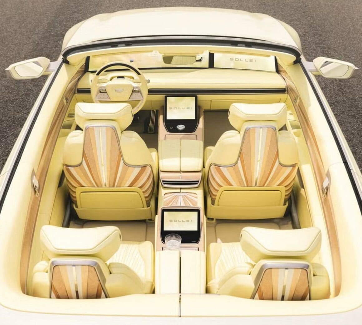 Ces éléments ont été choisis plutôt que les accents chromés plus traditionnels de la marque, un matériau qui est actuellement éliminé par d’autres fabricants, comme Stellantis. Les énormes roues de 23 pouces ressemblent à du chrome, la Sollei va remonter à l’apogée de la marque dans les années 1950. Même la teinte extérieure Manila Cream est tirée directement du catalogue de 1958. La couleur est représentée telle qu’elle était, sans aucun ajout.