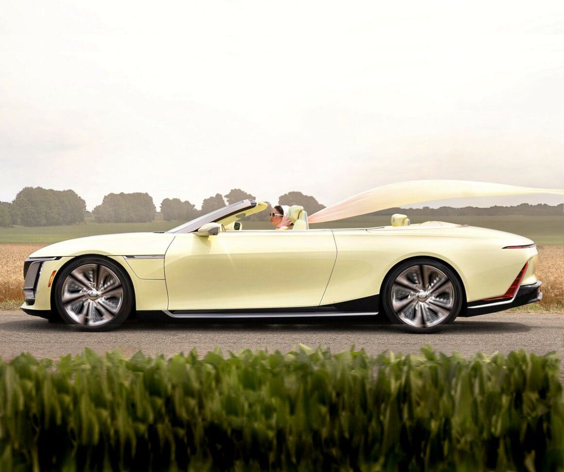 La vie en plein air en Cadillac est le cœur de la Sollei qui est un mot-valise de “sol” et “leisure”. (Ça se prononce comme Cirque du Soleil). Michael Simcoe, vice-président principal du Design mondial, est allé jusqu’à me dire reconnaître que l’attente des clients à l’égard d’une Caddy décapotable haut de gamme, n’avait que trop duré. La Sollei est basée sur la plate-forme Ultium de la marque qui comprend également la Celestiq.