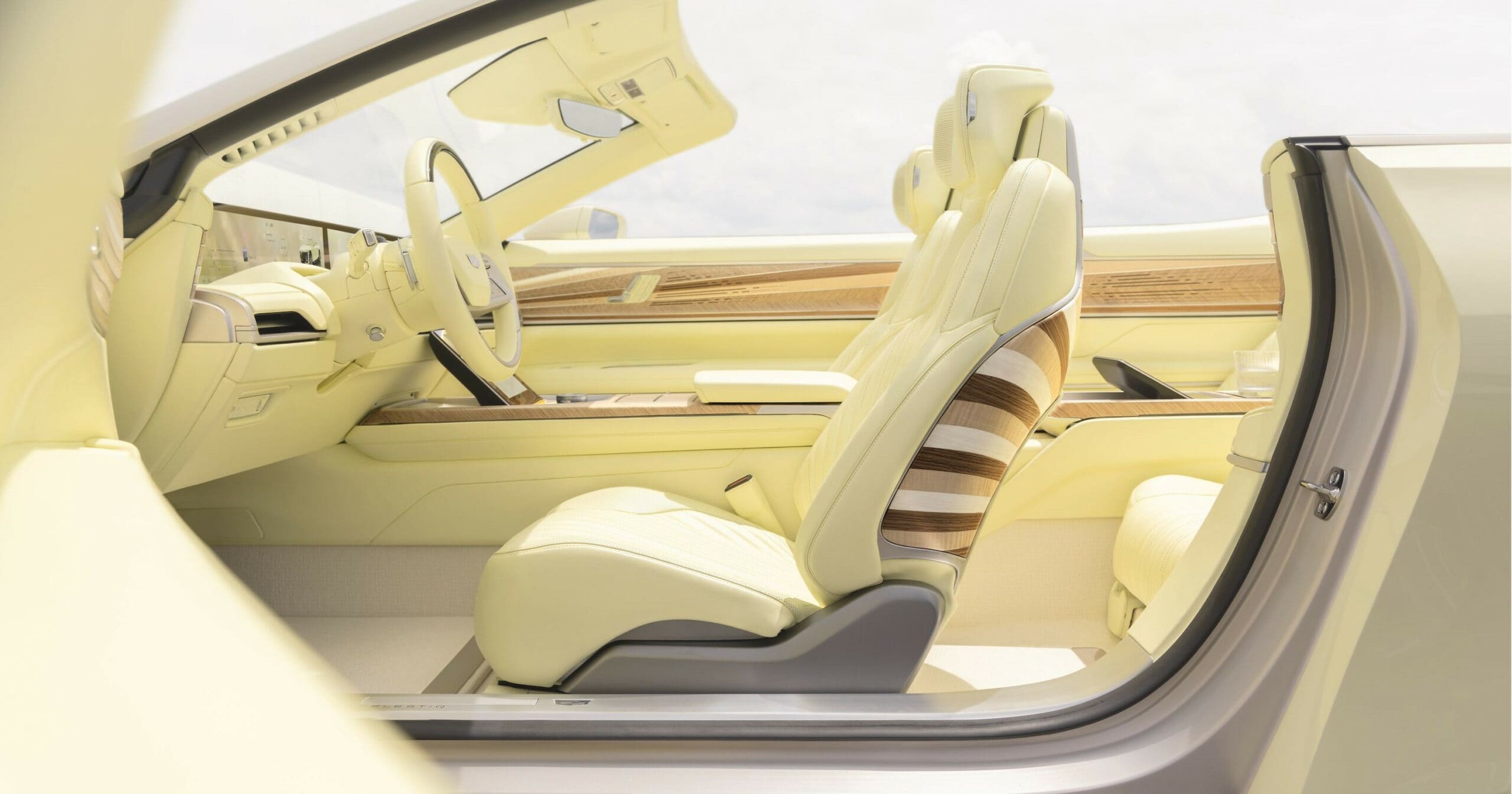 En fait, la Sollei partage presque tout avec la berline. La Sollei est une grande machine, mais ses proportions sont plus traditionnelles. Les porte-à-faux sont beaucoup plus courts que ceux de la Celestiq. De gigantesques portes permettent d’accéder aux quatre sièges de l’habitacle et remplissent toute la section centrale de la voiture. La carrosserie est fabriquée à partir d’un mélange de fibre de carbone et de fibre de verre, en mettant l’accent sur le minimalisme.