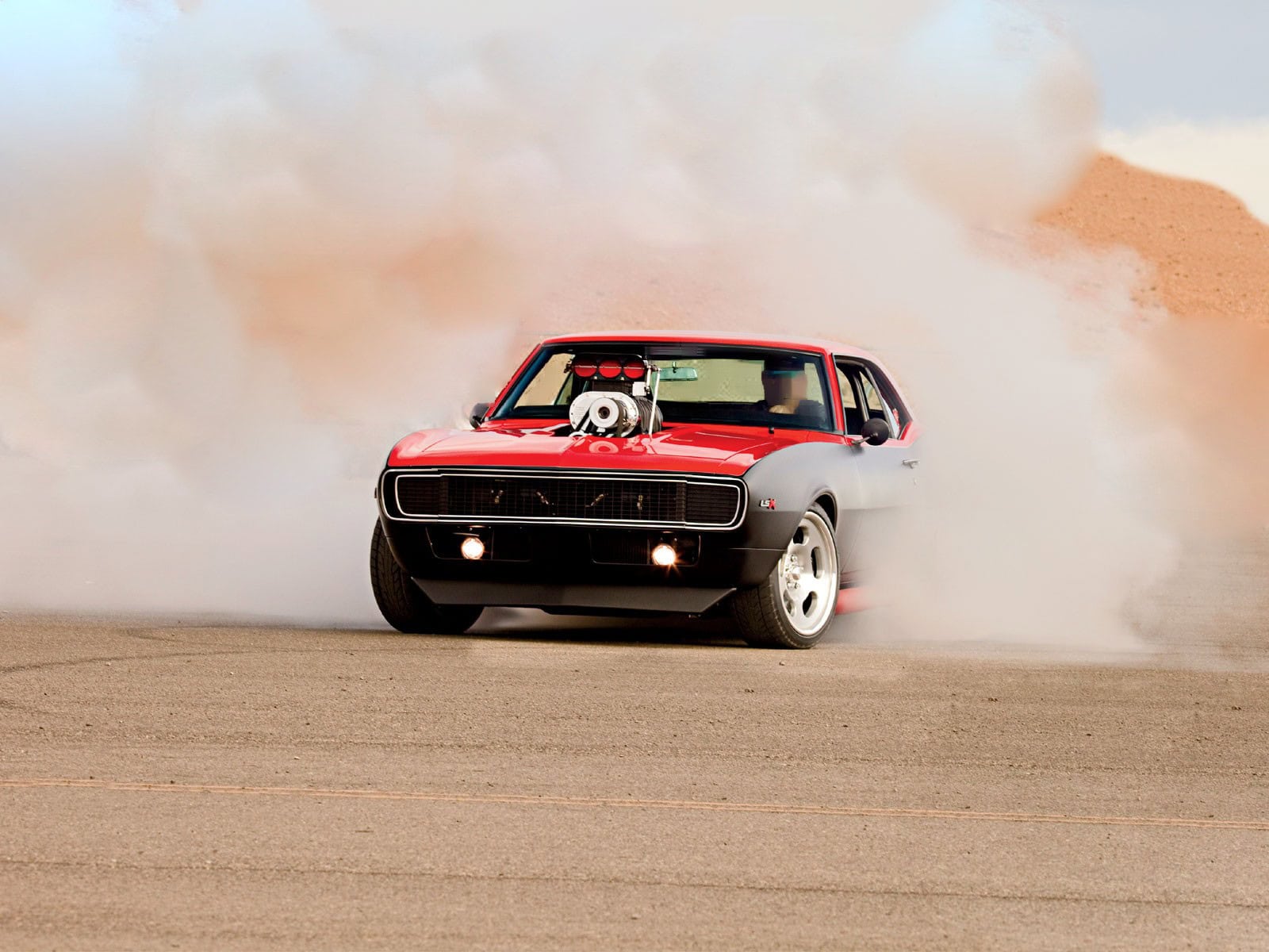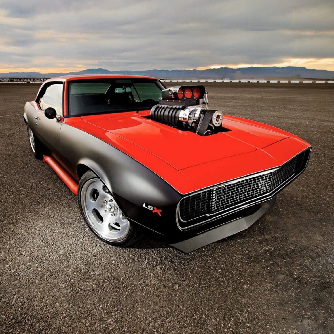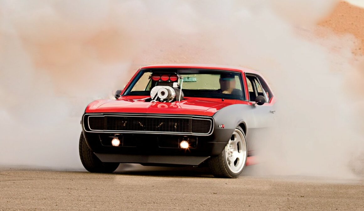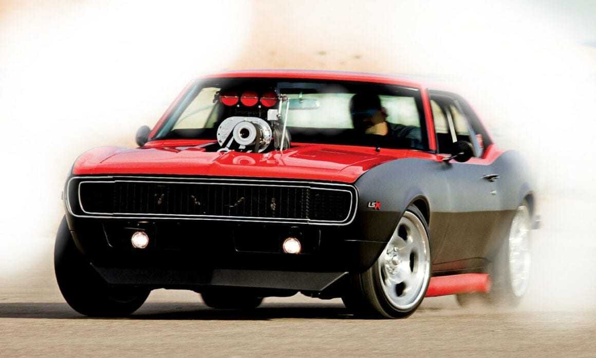 Lorsque je stoppe au feu rouge, le râle saccadé de l’échappement ouvert se mêle au gémissement du Blower alors que le moulin à injection de carburant s’installe dans une pente facile. Même au ralenti, les 427ci du V8 de la Genération IV de la LSX surcompressée par le Blower, transmettent une onde de choc continue de terreur automobile à travers le châssis, la colonne de direction, le levier de vitesses et le plancher. La voiture est vivante, une extension brutale de ma bête intérieure. Il n’y a rien sur la route qui puisse me toucher, néanmoins, mes paumes transpirent abondamment alors que mes mains exercent une emprise mortelle sur le volant. Cette Camaro’68 ne bouge même pas, mais selon la ville dans laquelle vous vous trouveriez à ma place, vous enfreindriez probablement au moins une demi-douzaine de lois simplement en restant immobile. C’est aussi bon que cela… Sans cesse vous avez le doigt d’honneur… C’est bon de n’en avoir rien à foutre… Au feu rouge, les autres voies commencent à s’empiler de trafic, les conducteurs télégraphiant tour à tour la peur, le dégoût, l’admiration et l’envie. Un sale gamin de 30 (va te faire foutre connard) avec une Mitsubishi Evo appuie sur l’accélérateur, sa soupape de décharge gazouille comme un moineau sur la méthamphétamine. Je tends le cou pour jeter un coup d’œil en avant, vue bouchée par le Blower qui perce à travers le capot et grogne comme un Dobermann monstrueux, et j’aperçois la boite des feux de trafic juste au moment où elle devient verte. Sans précaution, je lâche l’embrayage, ses deux disques en céramique s’agrippant intelligemment et……….. Wouaaaaaaaaaaaaaaa !!!