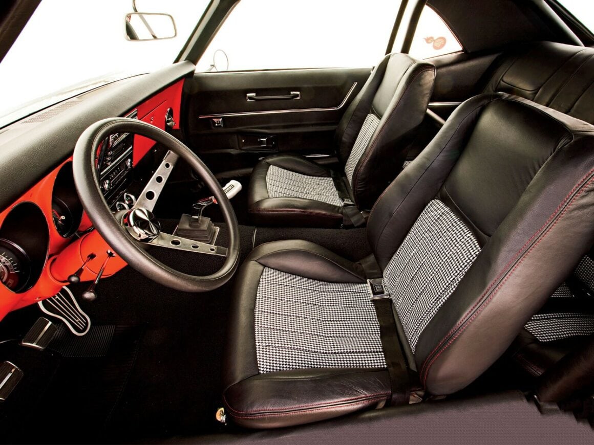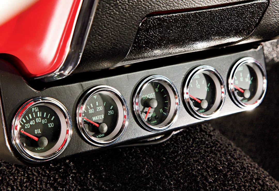 Compte tenu de l’esprit de cette Camaro décisive, c’est à cet égard que l’œuvre de Cherry Bomb brille vraiment. À partir de la suspension primée basée sur la C6 de DSE et des longerons de cadre hydroformés, cette Camaro est dotée d’un kit de direction AGR à crémaillère ultra-rapide, ainsi que de la puissance de freinage supérieure de Baer (assistance Hydra Boost, également), et la combine avec le moteur LS relativement léger pour une voiture qui ne demande qu’à être battue avec acharnement dans les virages… Tenez-vous à distance, et vous êtes giflé par des éléments de design rétro. Les chargeurs de machines à sous sont plus que fidèles, mais suffisamment grands pour répondre aux besoins modernes. Les tuyaux latéraux tirent sur vos cordes sensibles comme Don McLean chantant “American Pie”. Visuellement, le Blower rugit plus fort que n’importe quel aboiement d’instructeurs d’exercices du Corps des Marines en formation de base. La peinture BASF de Glasurit sur la Camaro est un lien historique avec les couleurs traditionnelles rouge et noir de Cherry Bomb, mais le traitement noir satiné de l’ensemble du design l’ancre solidement dans le présent. Jetez un coup d’œil à l’intérieur et vous êtes frappé par des touches vintage comme le volant Grant d’époque, la pédale d’accélérateur Mr. Gasket Hang Ten, la chaîne stéréo d’origine (mais puissante) et la poignée de changement de vitesse en T Hurst. Pour tous ceux qui étaient assez vieux pour savoir ce qu’était un Hot Rod en 1974, la Cherry Bomb Camaro transformera votre cœur en mastic. Mais voici la vraie claque : les souvenirs nostalgiques sont rarement fidèles à la façon dont les choses étaient réellement.