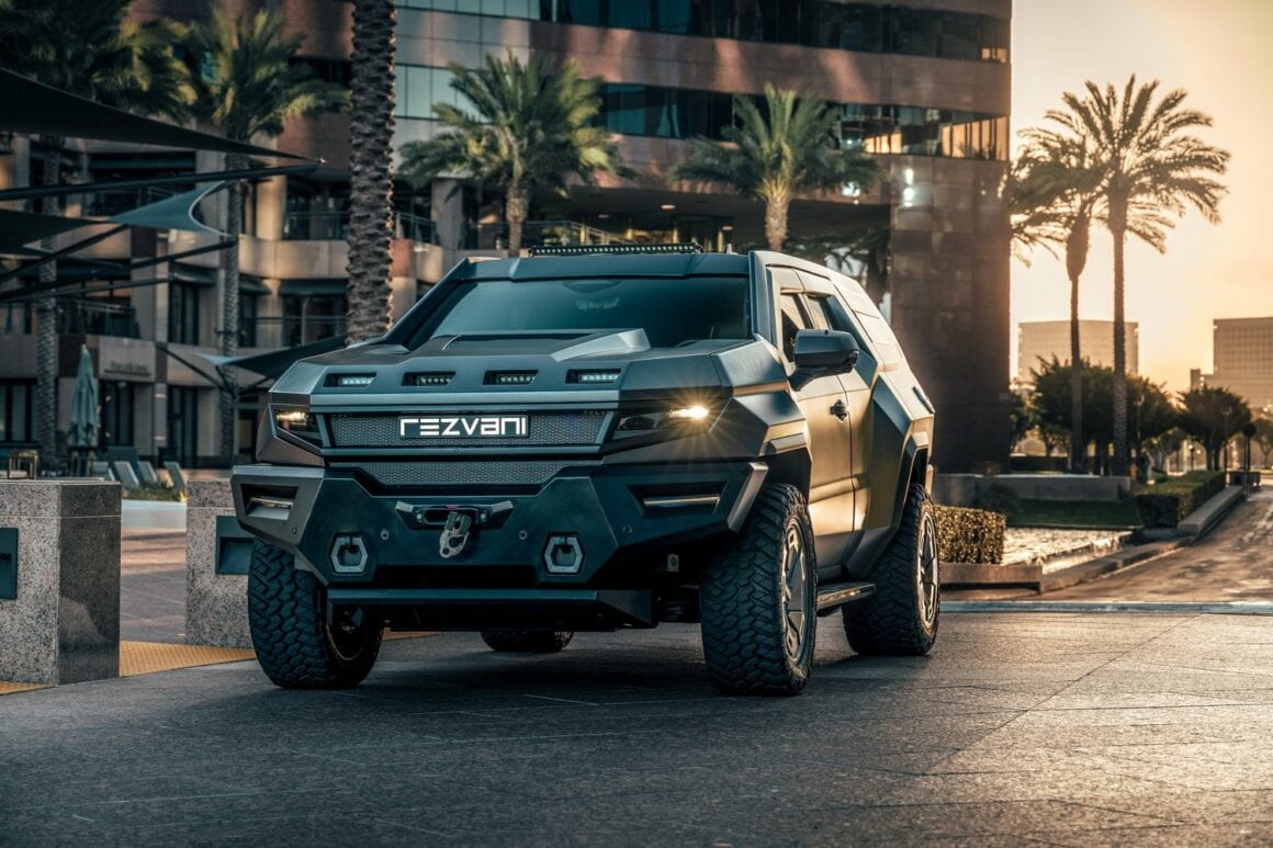 En ce cas, vous aurez les sièges arrière classe affaires, une cloison conducteur, des télés et minibars. Parce qu’on peut être paranoïaque et aimer son petit confort… Quand beaucoup d’entre nous étaient enfants, nous passions des heures à griffonner des voitures et des formes de véhicules folles. Regarder ces dessins peut être embarrassant et hilarant, mais un constructeur automobile a pris ces idées farfelues et en a fait toute une marque. Rezvani Motors a produit certains des véhicules les plus dérangés et les plus fantastiques d’inspiration militaire, et il vient d’annoncer un nouveau modèle. Le Vengeance est un SUV à quatre portes avec une liste d’équipements qui se lit comme une liste de contrôle d’accessoires d’un film Mission Impossible. Ne vous faites pas prendre à penser qu’il s’agit d’une Jeep militaire costaude avec un intérieur dépouillé et aucun confort.