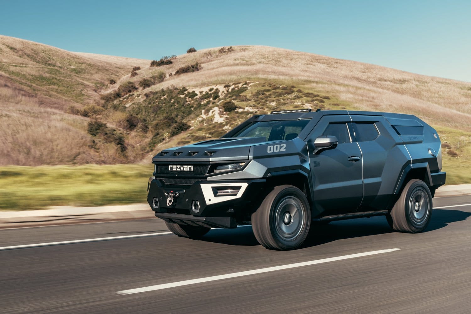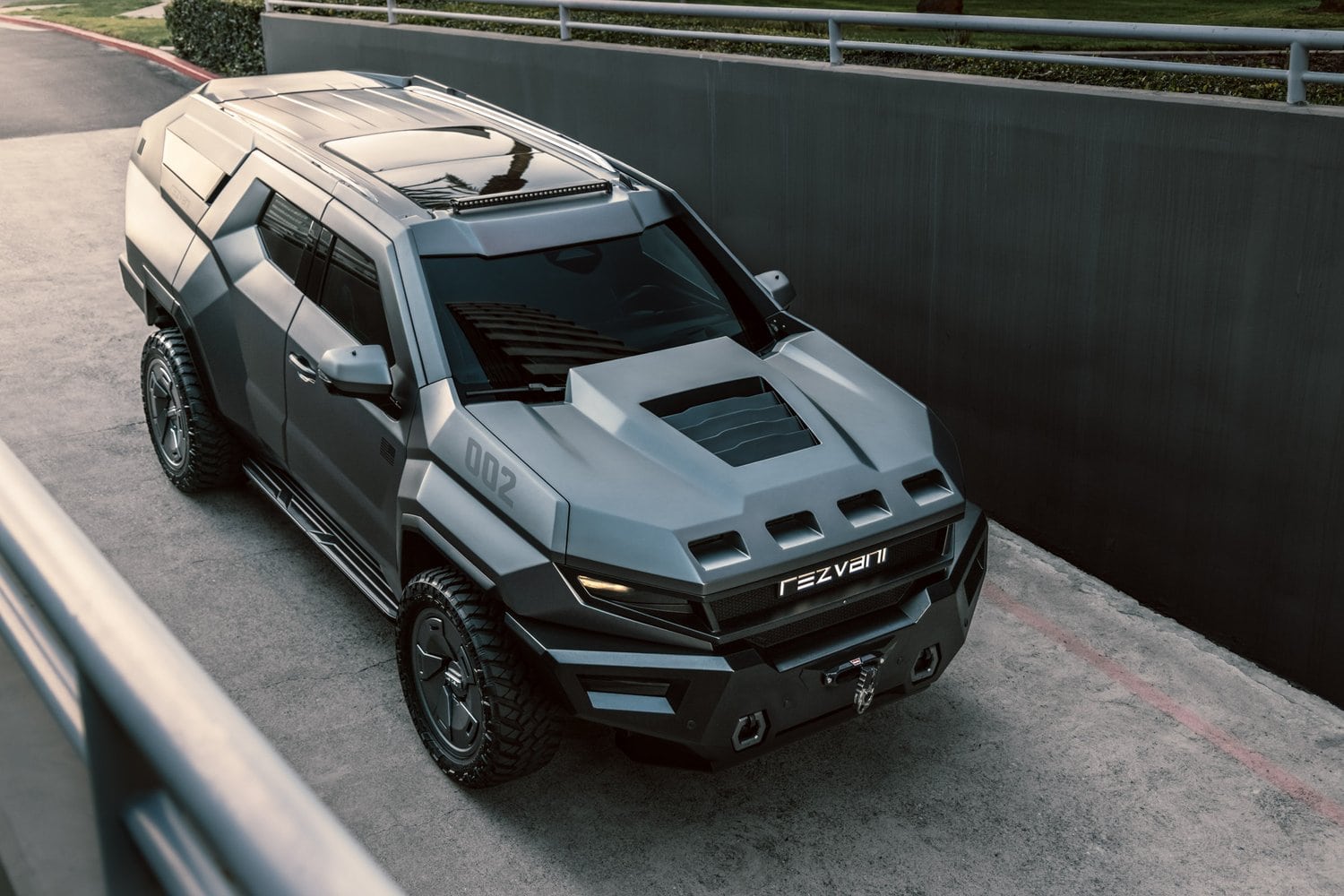 Son concepteur avait pour objectif de faire un successeur moderne du Hummer, et pour son impact direct, il y est sans aucun doute parvenu. Pour la promo, reportez vous à l’illustration dite “de couverture” avec le chasseur yankee… C’est impressionnant… À mesure qu’il devenait la norme du marché automobile, le SUV est devenu consensuel. C’est en tout cas l’avis des fous furieux de chez Rezvani, qui ont décidé de réveiller ce marché ennuyeux avec des designs de SUV parmi les plus agressifs. Le dernier en date s’appelle le Rezvani Vengeance, et c’est un SUV sept places basé sur le Cadillac Escalade mais sous une nouvelle carrosserie apparemment inspirée des jeux vidéo. Et pour cause, elle a été dessinée par l’artiste numérique et développeur de voitures de jeux vidéo Milen Ivanov. Le constructeur californien, à qui l’on doit déjà les terrifiants (et tellement bien nommés) Tank et Hercules 6×6,..