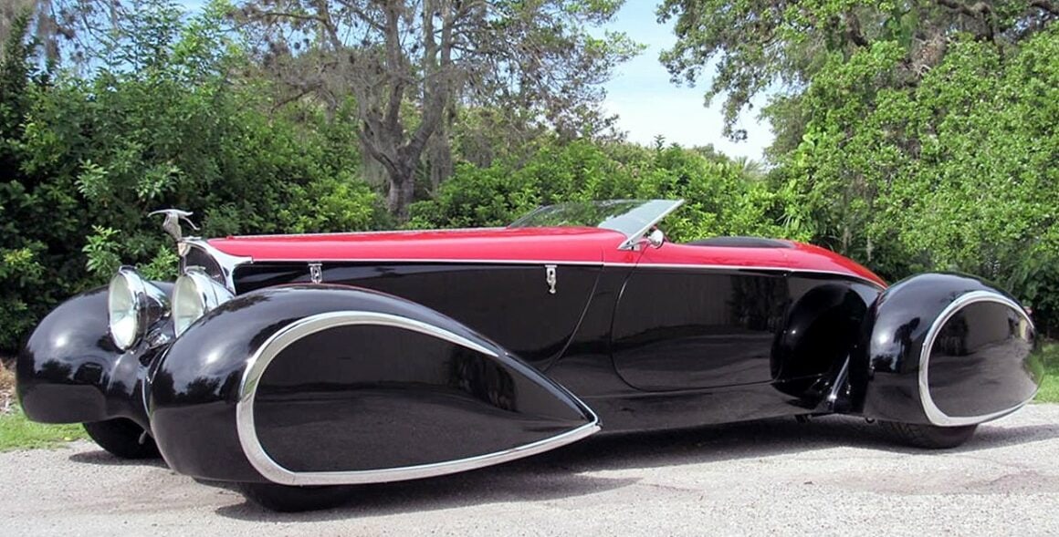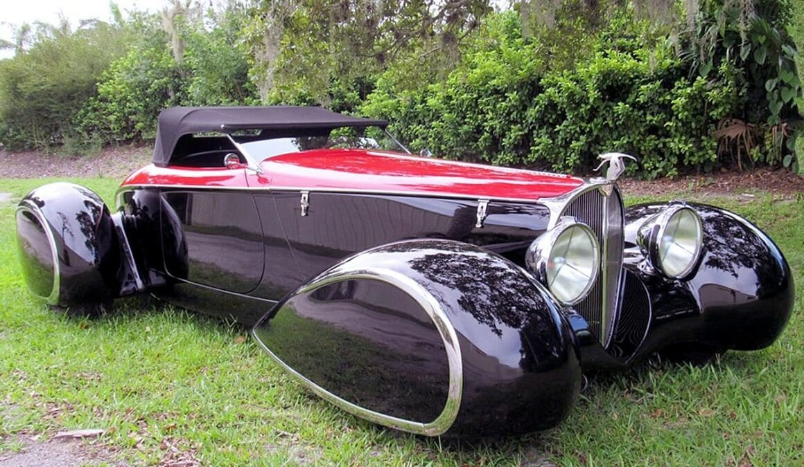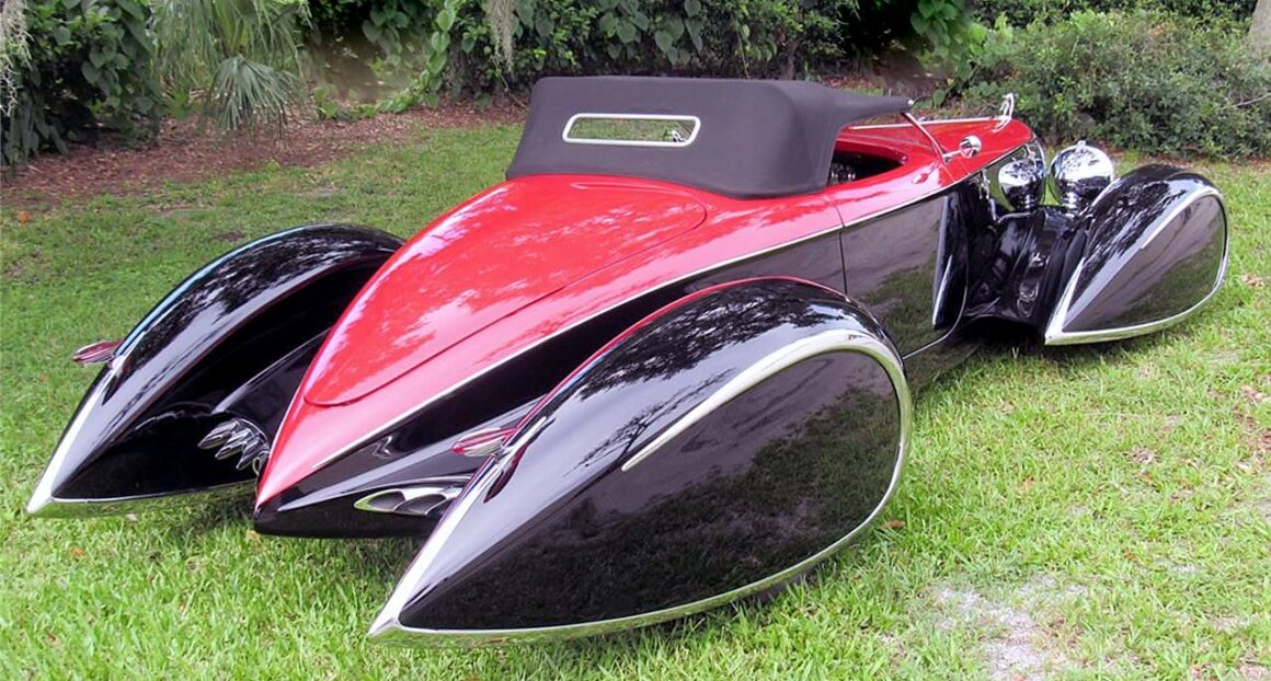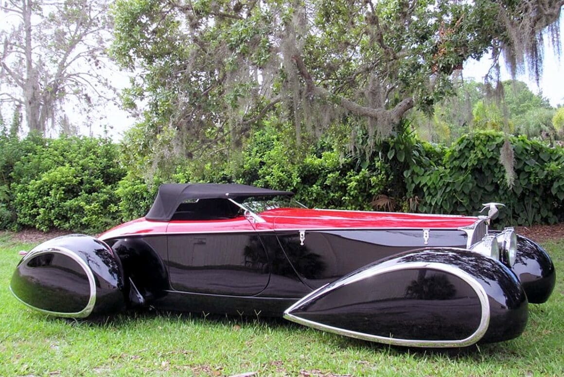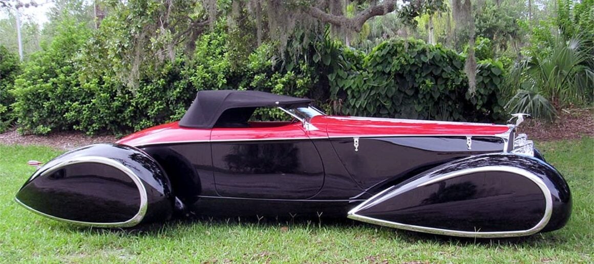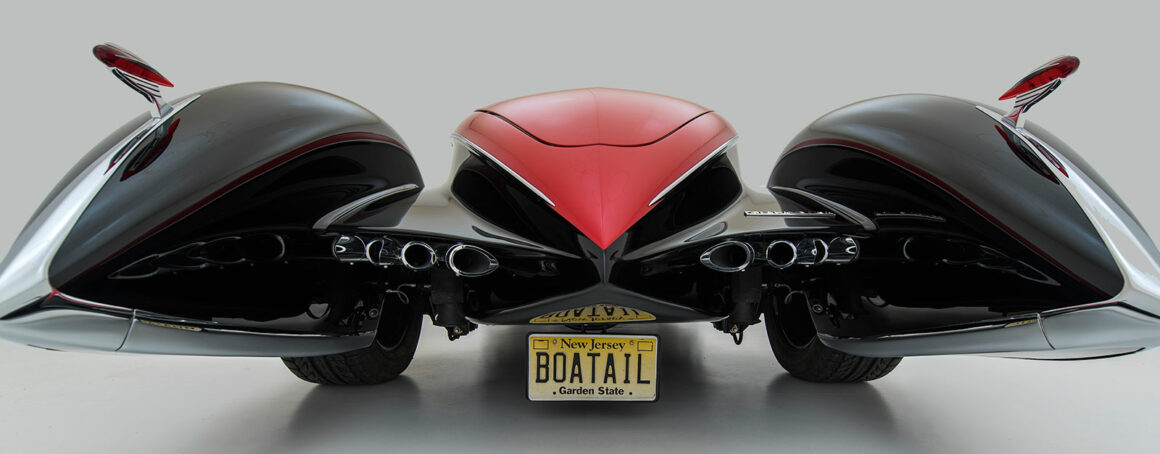 Commençant sa vie comme une voiture sans ailes, elle a évolué pour devenir la première “queue de bateau” de deuxième génération avec des ailes pontons tout autour. Cela a commencé comme le Highboy avec des inserts de hors-bord en bois (véritable) stratifié. Ensuite, les pontons fermés à l’avant et à l’arrière ont été ajoutés par Gary Brown. Cette voiture s’est vendue aux enchères Keels & Wheels au Texas pour 105.000 $. Plusieurs autres queues de bateau à ailes pontées Gen Two ont suivi avec la Type 57 Bugnotti noire qui s’est vendue pour 227.000 $ à la vente aux enchères Gooding Scottsdale, AZ.