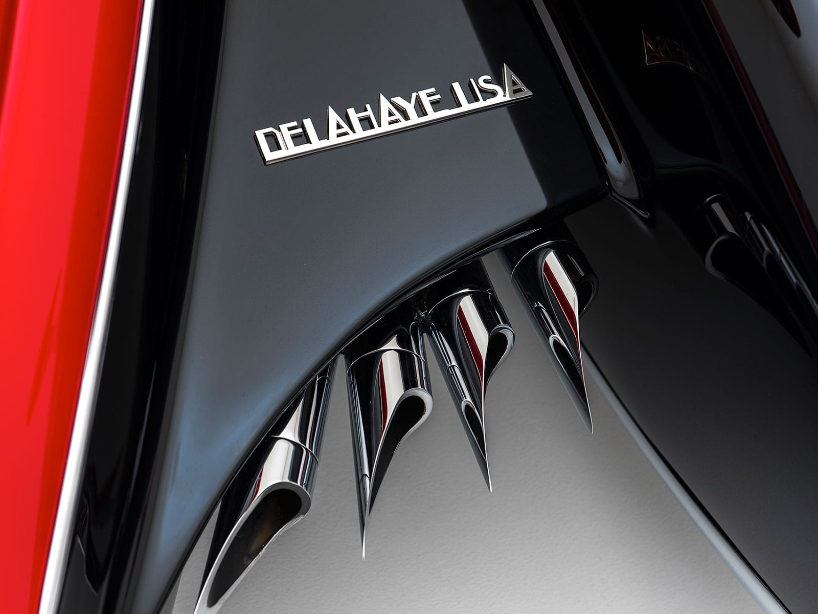 Terry Cook, ancien rédacteur en chef de CarCraft, HotRodMagazine et Car&Driver, devenu ensuite BigBoss de DelahayeUSA, a vu pour la première fois la 1948 Delahaye type 175 appartenant alors à Ronald Benach, avec la carrosserie construite par Jacques Saoutchik, restaurée par Frank Roxas, à Pebble Beach 2000. Cela a changé sa vie. Cook a selon lui été submergé par l’émotion et a embauché John Caswell, designer professionnel diplômé de l’Art Center. Son idée était de créer une interprétation moderne d’une grande voiture à ailes entièrement ponton en hommage à Saoutchik…