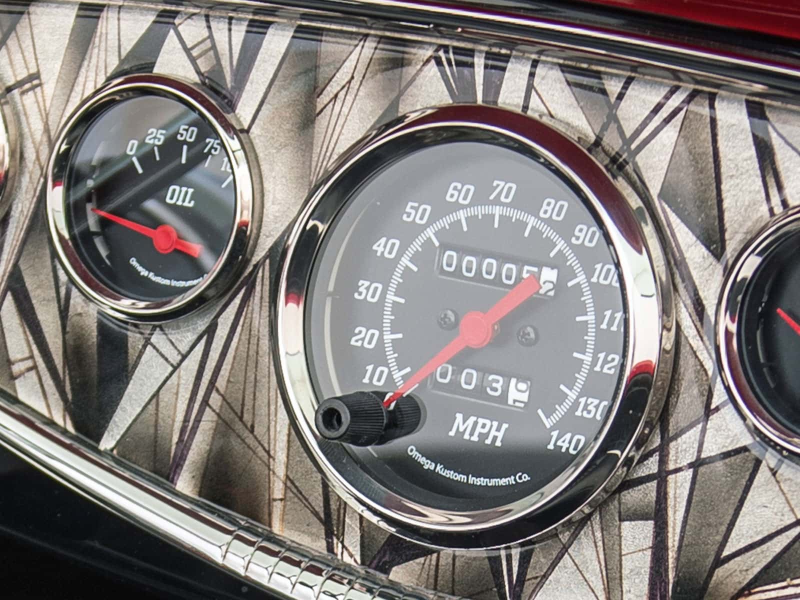 Des amortisseurs pneumatiques réglables sont utilisés à l’arrière pour soulever et abaisser la voiture, et des amortisseurs hélicoïdaux sont utilisés sur la suspension avant. Le moteur est un Ford V8 302ci avec une transmission automatique C4. La direction assistée et les freins sont de série. La voiture a été construite et peinte par les quatre frères Brown de Brown’s Metal Mods. Le véritable cuir en peau de chevreau compose les sièges, les traversins et les portes, combiné à des tapis en laine. L’insert de tableau de bord unique de Don ‘The Egyptian’ Boeke a été conçu dans le style cubiste impressionnisme.