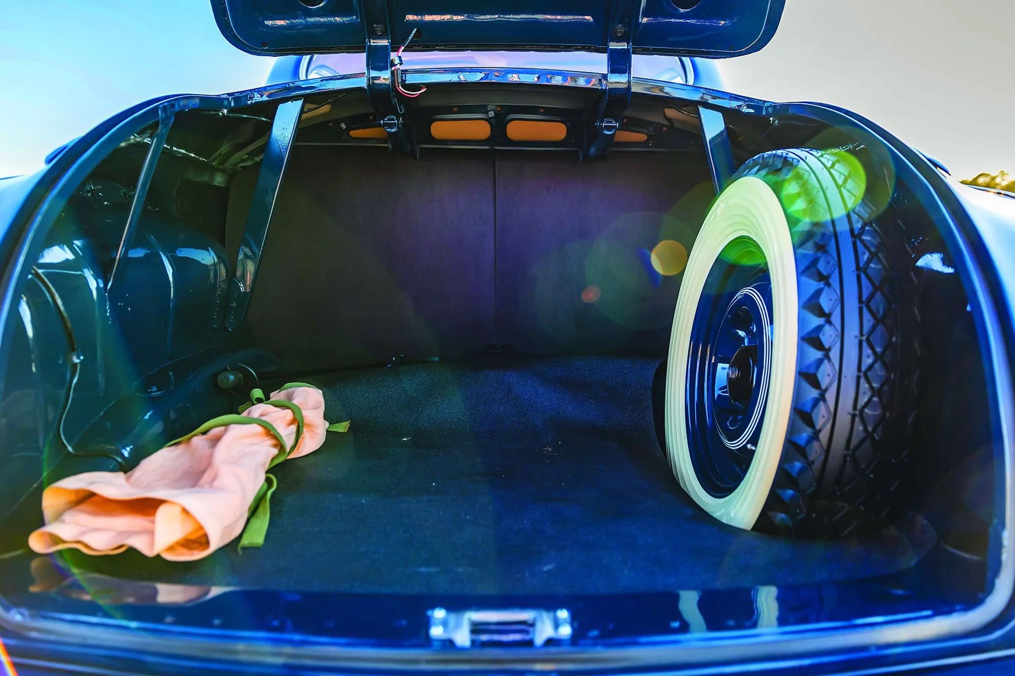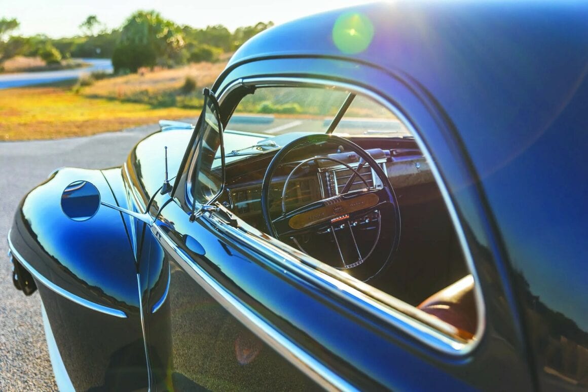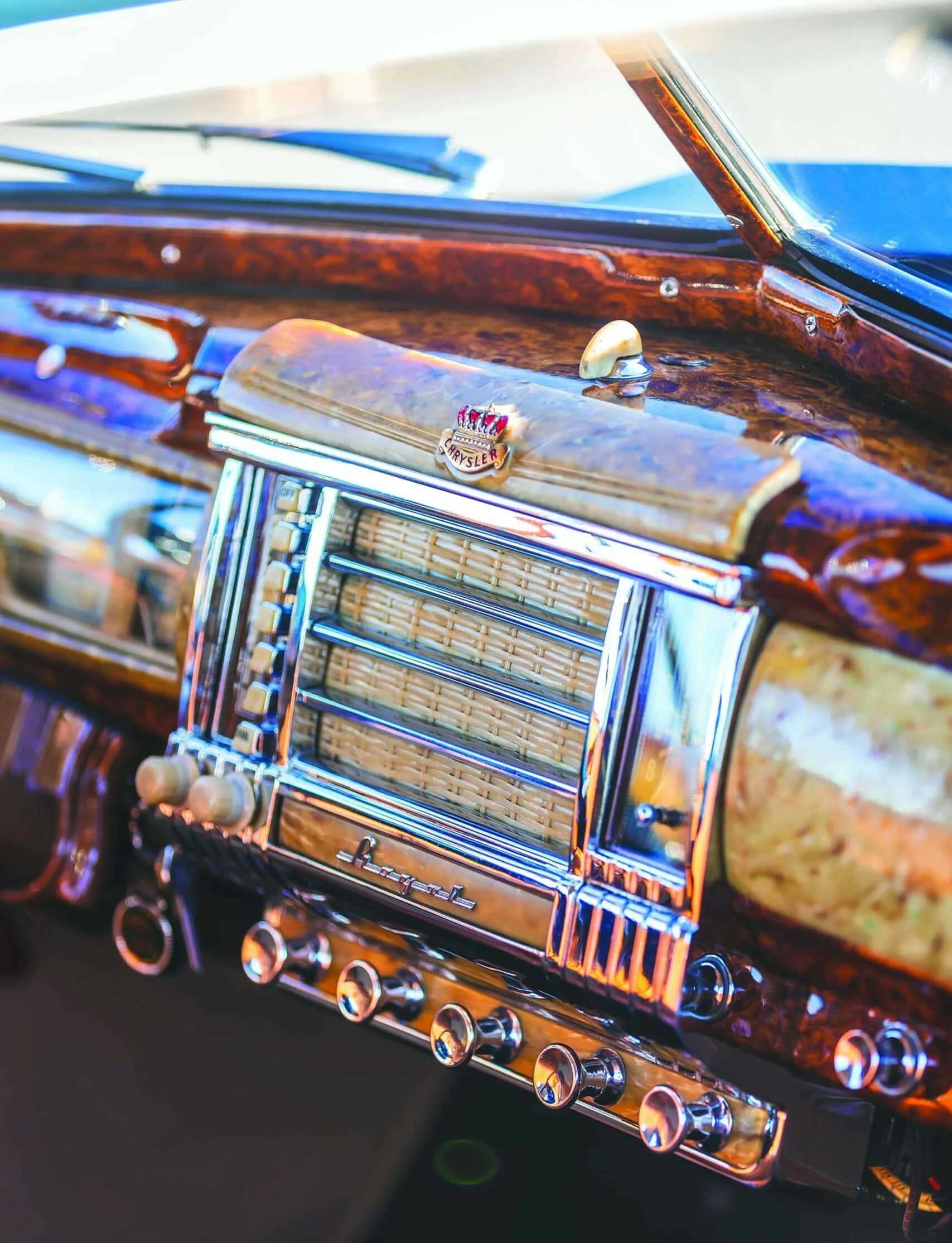 Se distinguant visuellement par ses cinq barres de calandre horizontales et ses marchepieds excisés, la Royal de 1942 a rejoint une gamme Chrysler qui comprenait également la Windsor, la Saratoga et la New Yorker par ordre croissant, ainsi que des unités de châssis qui ont principalement reçu une carrosserie Derham personnalisée. 1942 étant très tard dans l’ère de la carrosserie. Selon la documentation, la voiture de David a été assemblée sept jours seulement après l’attaque de Pearl Harbor. Cela signifie que la Chrysler a son ensemble complet de garnitures chromées, qui ont ensuite été retirées de la voiture lorsque le chrome a été déclaré métal stratégique par le gouvernement américain. Plus tard, les coupés d’affaires, dans la mesure où ils ont été construits, ont été relégués à des garnitures d’exposition de show-room en acier peint comme la plupart des voitures assemblées pendant la guerre.