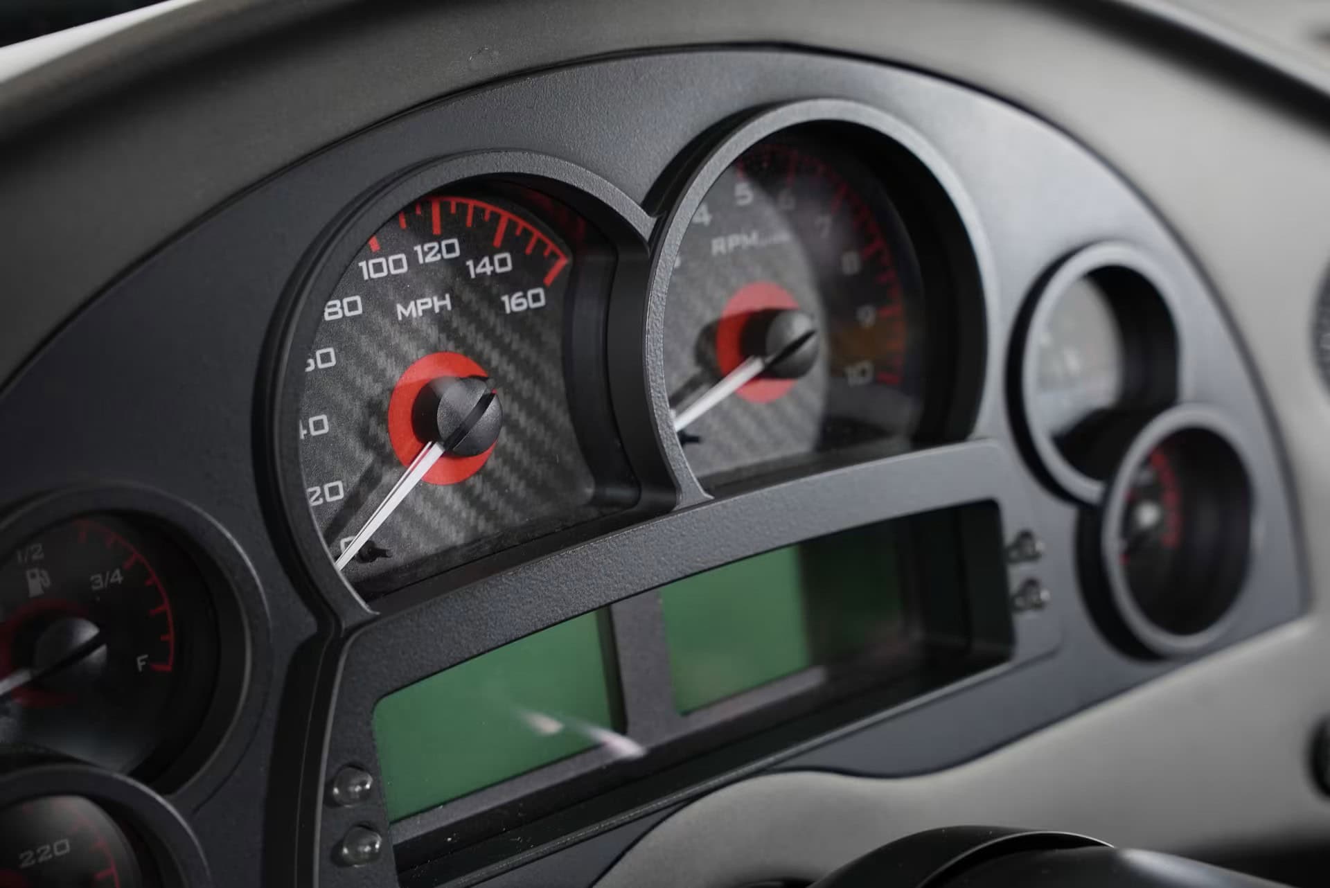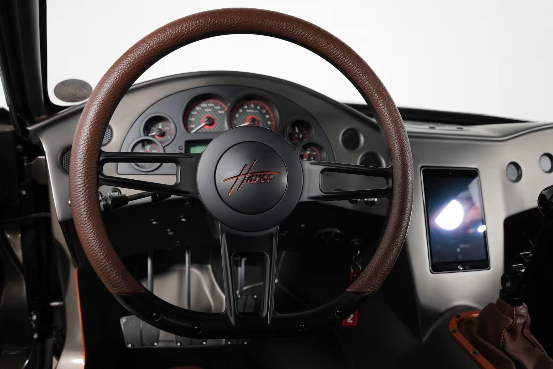Dakota Digital a fourni le groupe de compteurs rétroéclairés dans le rouge du cockpit afin d’accompagner le tableau de bord construit sur mesure. Le design à double bosse fait un clin d’œil aux voitures de sport anciennes, tandis que l’iPad encastré au centre fait entrer le véhicule dans le 21e siècle. Bien que l’avant du véhicule ait été presque entièrement reconstruit, la calandre emblématique est la calandre d’origine, modifiée pour s’adapter à la partie avant.