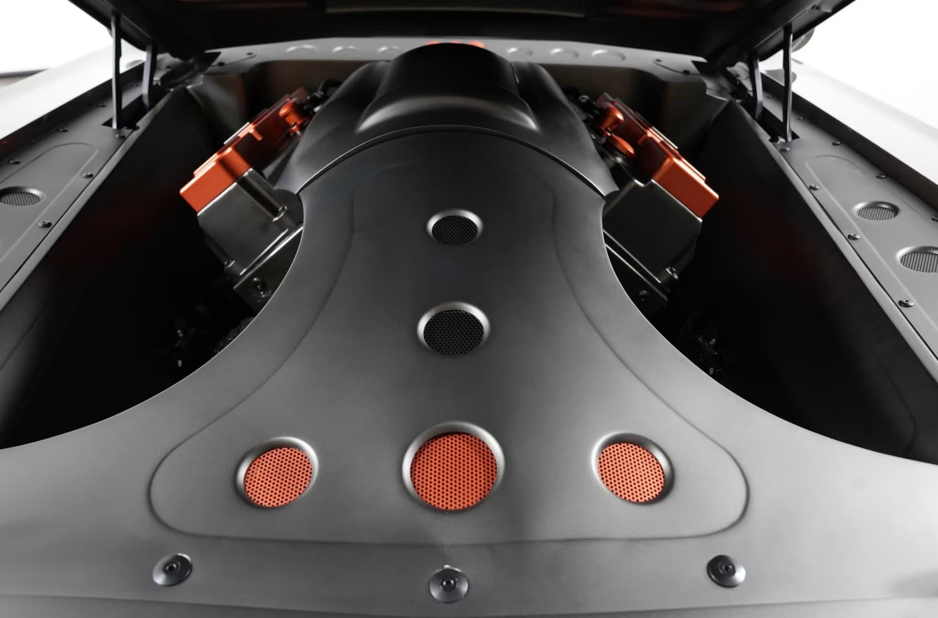 Assemblé par “Stanton Racing Engines” (les gens qui ont construit les moteurs NASCAR de Mopar à l’époque), le gros bloc tout en aluminium de 572-ci (9,4 litres) était livré avec des alésages améliorés, des soupapes de course, des culasses, un énorme corps de papillon de 120 mm (4,72 pouces), des injecteurs colossaux de 2.200 cm³. L’alimentation forcée en air par un compresseur centrifuge F3 ProCharger a plongé les bancs d’essai dans une frénésie débile…
