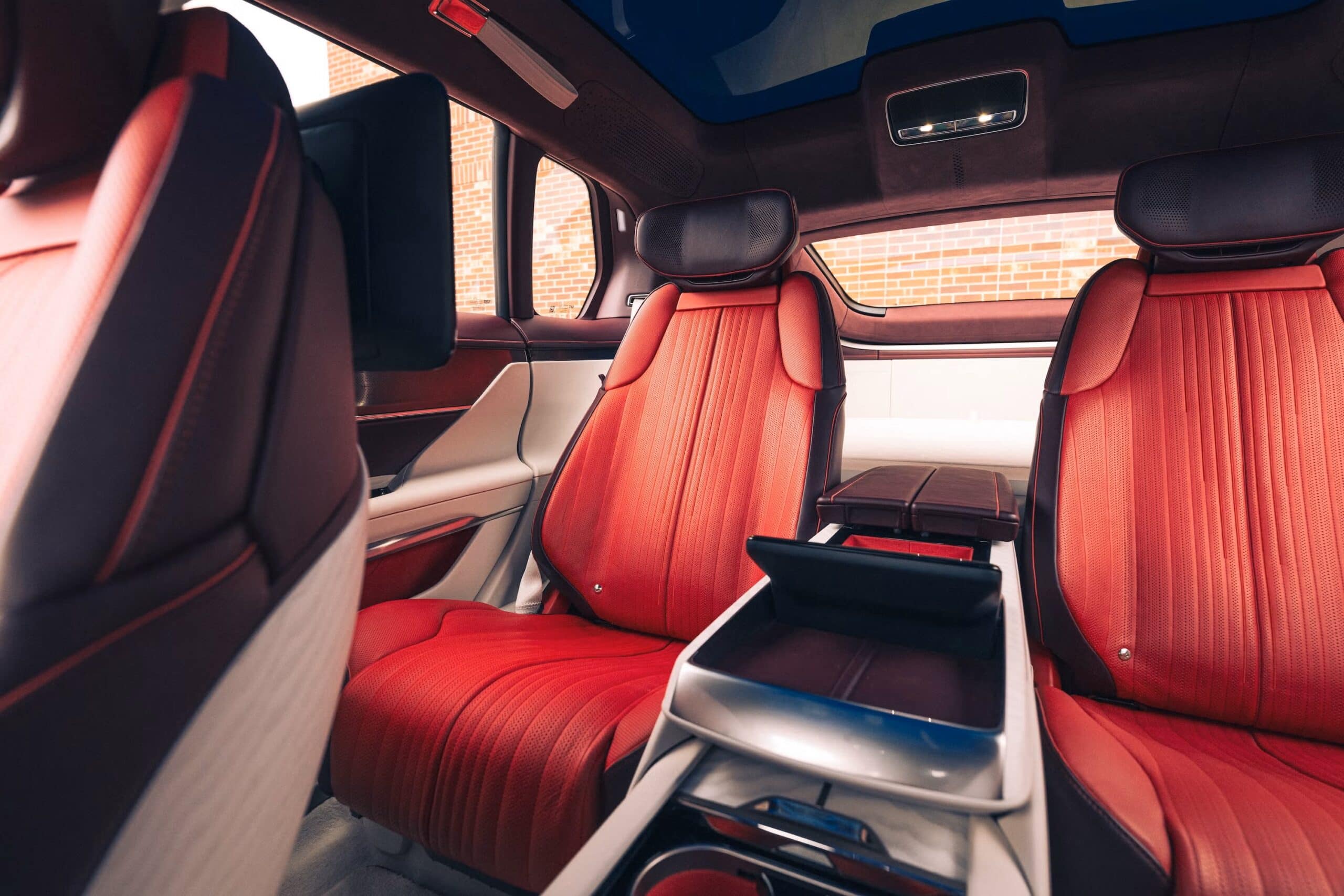 Intégrer une capacité de batterie suffisante pour une autonomie de plus de 480 km (norme EPA) dans une voiture de seulement 145,3 cm de haut a représenté un véritable défi. Certes, d’autres véhicules électriques sont encore plus basses, notamment la Porsche Taycan de base, qui mesure 137,8 cm. Mais j’ai peine à m’installer à l’avant de la Porsche, et je déteste me cogner la tête, les hanches, les genoux et les épaules en essayant de passer comme passager par la porte arrière. Cependant, grâce à une batterie d’une capacité de 111 kWh répartie en différentes épaisseurs dans la structure de la Celestiq – sous le plancher, sous les sièges arrière et dans le tunnel central – le véhicule peut transporter 80 % d’une équipe titulaire de NBA jusqu’à la salle de sport. (Les cinq peuvent tenir si le meneur accepte de voyager en position fœtale dans la soute.)… Puisque le propriétaire d’un Celestiq peut être au volant ou passager, les quatre sièges sont à réglages électriques, chauffants, ventilés et massants. Chaque porte s’ouvre et se ferme électriquement par simple pression sur un bouton extérieur discret, en tirant sur la poignée intérieure ou en glissant le doigt sur…. euhhhhhhh… l’écran tactile.
