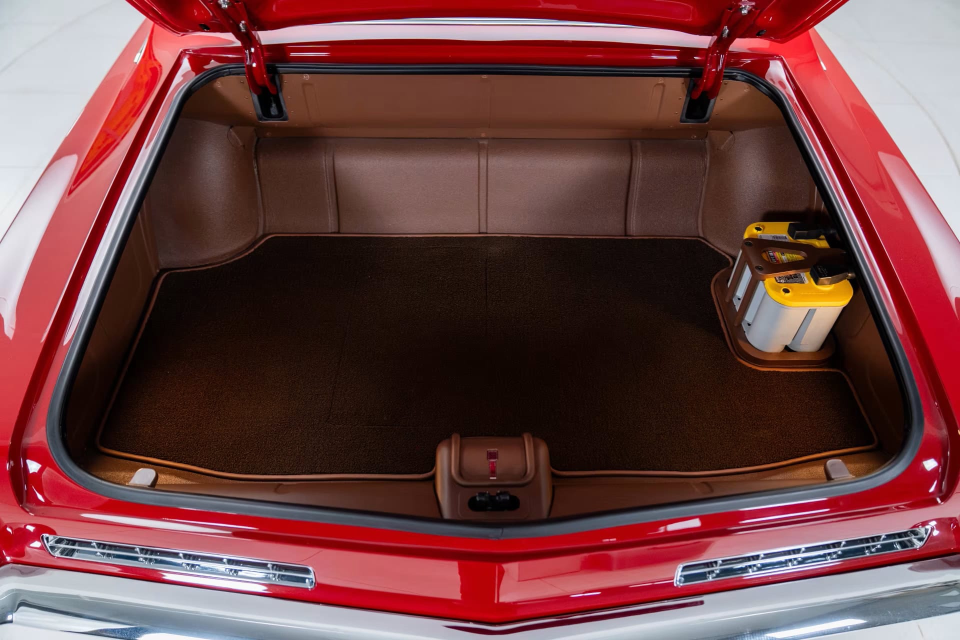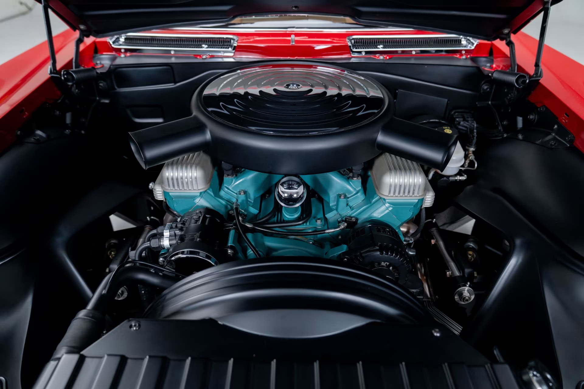 Cela confère à la voiture une allure plus profilée. Toutes les pièces chromées ont été rechromées par “Advanced Plating” et brillent désormais comme au premier jour, à la sortie d’usine de Flint, dans le Michigan. Châssis sur mesure, intérieur sur mesure, tout est personnalisé et la puissance de cet engin est phénoménale. Ce Restomod est en effet construit autour d’un châssis “Detroit Speed” , avec une suspension avant indépendante hydroformée “Detroit Speed”, une suspension arrière à trois bras et un pont arrière Ford de 9 pouces équipé d’amortisseurs réglables.