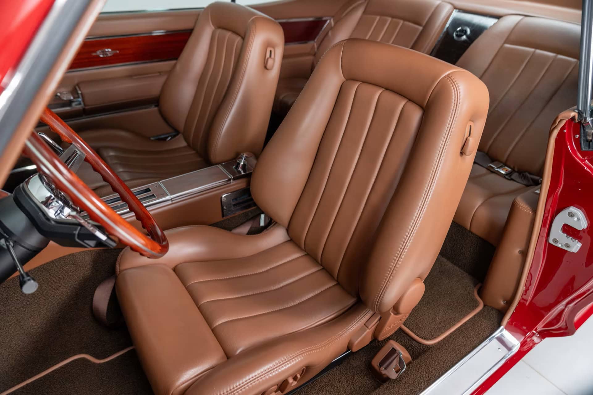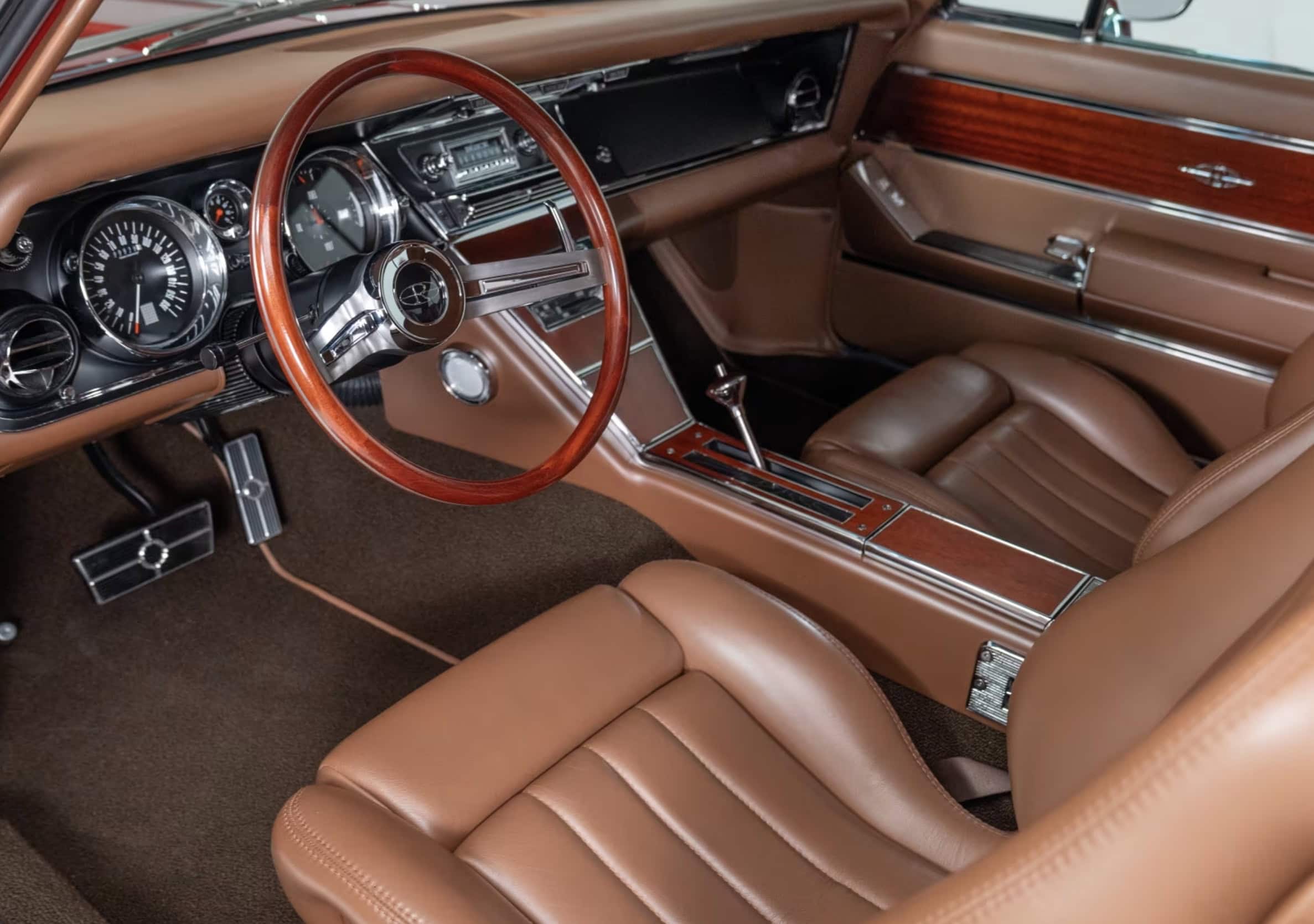 Des freins Brembo en carbone-céramique et un ABS Bosch complètent la puissance accrue. Grâce à ces modifications, la Riviera Gran Sport, âgée de 60 ans, se conduit comme une voiture des années 2020, sans pour autant dénaturer son ADN. Detroit Speed a repeint ce qui était autrefois la voiture de sport de gentleman dans le rouge vif Rosso Mugello , un nom qui sonne tellement Ferrari, sur un intérieur en cuir marron personnalisé, entièrement reconstruit, téléportant ainsi l’ambiance des années 1960 dans le présent. Et le meilleur reste caché sous le capot, sans que rien ne laisse présager sa puissance.