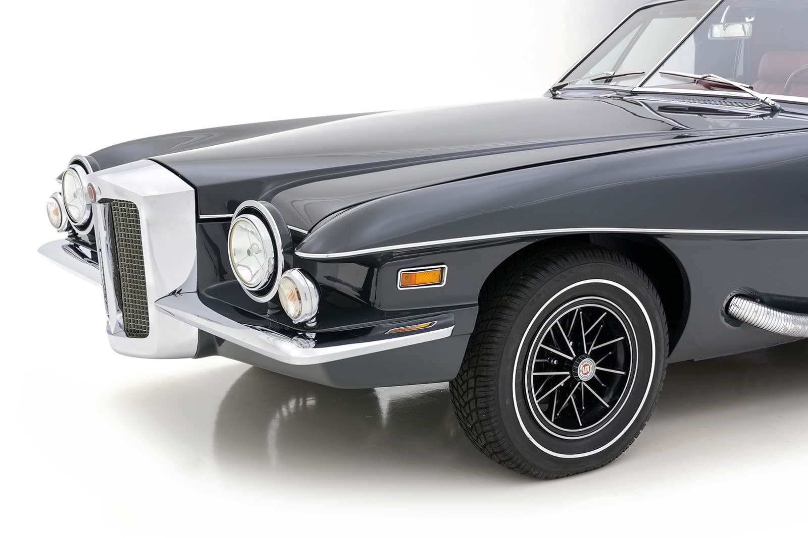 Mais ce sont les premières voitures construites par la Carrozzeria Padane à Modène qui attirent le plus d’attention de la part des collectionneurs. Selon les historiens, seulement 16 des 25 Blackhawk’s d’origine ont survécu, et elles demeurent aussi exclusives qu’elles l’étaient neuves. Le Coupé Stutz Blackhawk présenté en vrac en seconde partie-photos de cet article est l’un des plus beaux exemples de la très exclusive version “split” (à cause de la forme en “V” de son pare-brise). Cette voiture provient d’une collection privée et a fait l’objet d’une restauration de huit ans. C’est la 17e des 25 produites, cette voiture a quitté l’usine en Novembre 1971. Selon Richard Curotto, l’ancien directeur des ventes de Stutz Motorcars en Amérique, il a recueilli cette Stutz châssis #276571A172808# sur les quais du Québec, l’a conduit de l’autre côté de la frontière Canada/USA, à Manhattan, juste à temps pour le Salon de New York.
