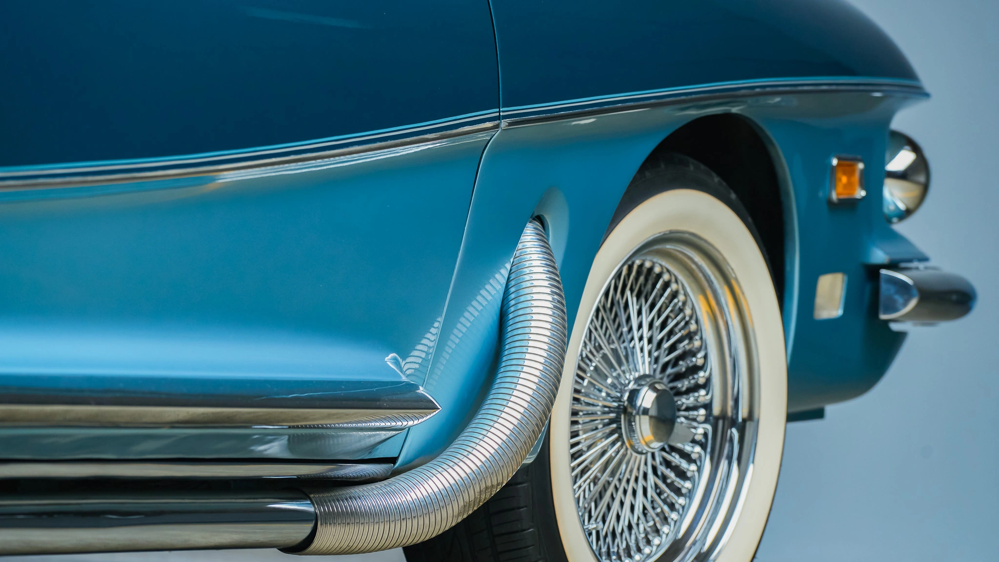 Les “Big-Three” n’avaient aucun modèle véritablement sportif, ni vocation à en faire si ce n’étaient la Chevrolet Corvette et la Ford Thunderbird qui brinqueballaient depuis les fifties en prenant du poids, du volume et de plus en plus de chromes chaque année…Il n’existait aucun modèle extraordinairement fabuleux proposant à la fois le chic, le choc, la classe et la sportivité toutes réunies, si ce ne sont quelques prototypes de salon et quelques productions étrangères telle la Facel-Véga, diverses Maserati et Ferrari Grand-turismo. Plus fort que les firmes gérontophiles, un designer s’invita alors dans la danse en créant une auto-simulacre, un moyen consumériste souvent pratiqué aux thés dansants des clubs du troisième âge de l’Amérique bien-pensante, dévoilant un monstre onirique hésitant entre le délire d’un designer frustré et le fantasme d’un ingénieur attardé.