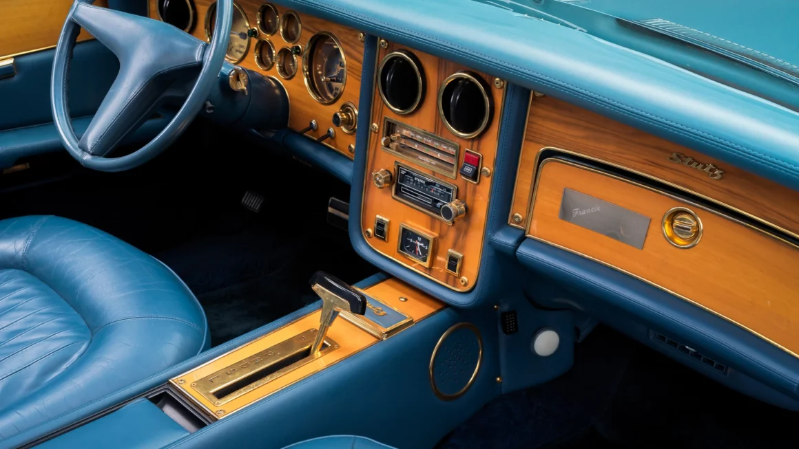Ce coupé Stutz a été vendu peu de temps après, mais le propriétaire (qui était Président des USA) n’a pas voulu que son identité (Ronald Reagan) soit dévoilée. L’histoire reprend au début des années 2000 quand le Coupé Stutz était dans les mains du célèbre imitateur d’Elvis : Paul Casey, qui a navigué chaque jour à son volant sur le strip de Las Vegas. En avril 2009, Paul Casey a vendu le Coupé Stutz à Erik Nielsen vivant en Californie. Le propriétaire le plus récent l’a acquis de Nielsen 14 mois plus tard, et a entrepris une restauration minutieuse jusqu’aux écrous et boulons, des heures indicibles à s’approvisionner en pièces rares et uniques perdues par le temps et les propriétaires négligents. La Carrozzeria Padane ayant également construit les Maserati Mistral, Indy et Bora aux côtés des Stutz, de nombreux composants provenaient des mêmes bacs… Mais certaines pièces ont été particulièrement difficiles à obtenir, y compris le lecteur original Lear Jet stéréo 8 pistes et l’ensemble de cinq roues et pneus Firestone LXX de 17 pouces, dont moins de 50 ensembles ont été produits ! Prix de vente : 325.000 $