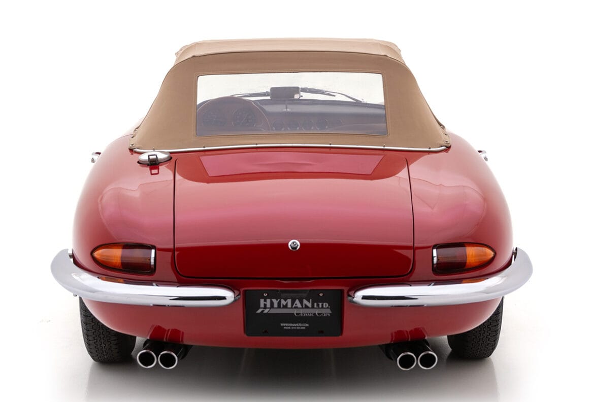 Le cuir beige est utilisé sur les sièges et les cartes de porte, avec des passepoils bruns subtilement contrastés offrant un accent agréable. Les sièges sont bien renforcés et de soutien – parfait pour les voyages sur de longues distances. Le cuir est en excellent état, montrant une utilisation légère sur les surfaces d’assise compatible avec le caractère utilisable de cette voiture. Les tapis de couleur avoine sont en très bon état, tout comme la capote en toile. Le cockpit est fini avec d’excellentes jauges Jaeger entièrement restaurées, un joli volant à bords minces et un appareillage de commutation approprié.