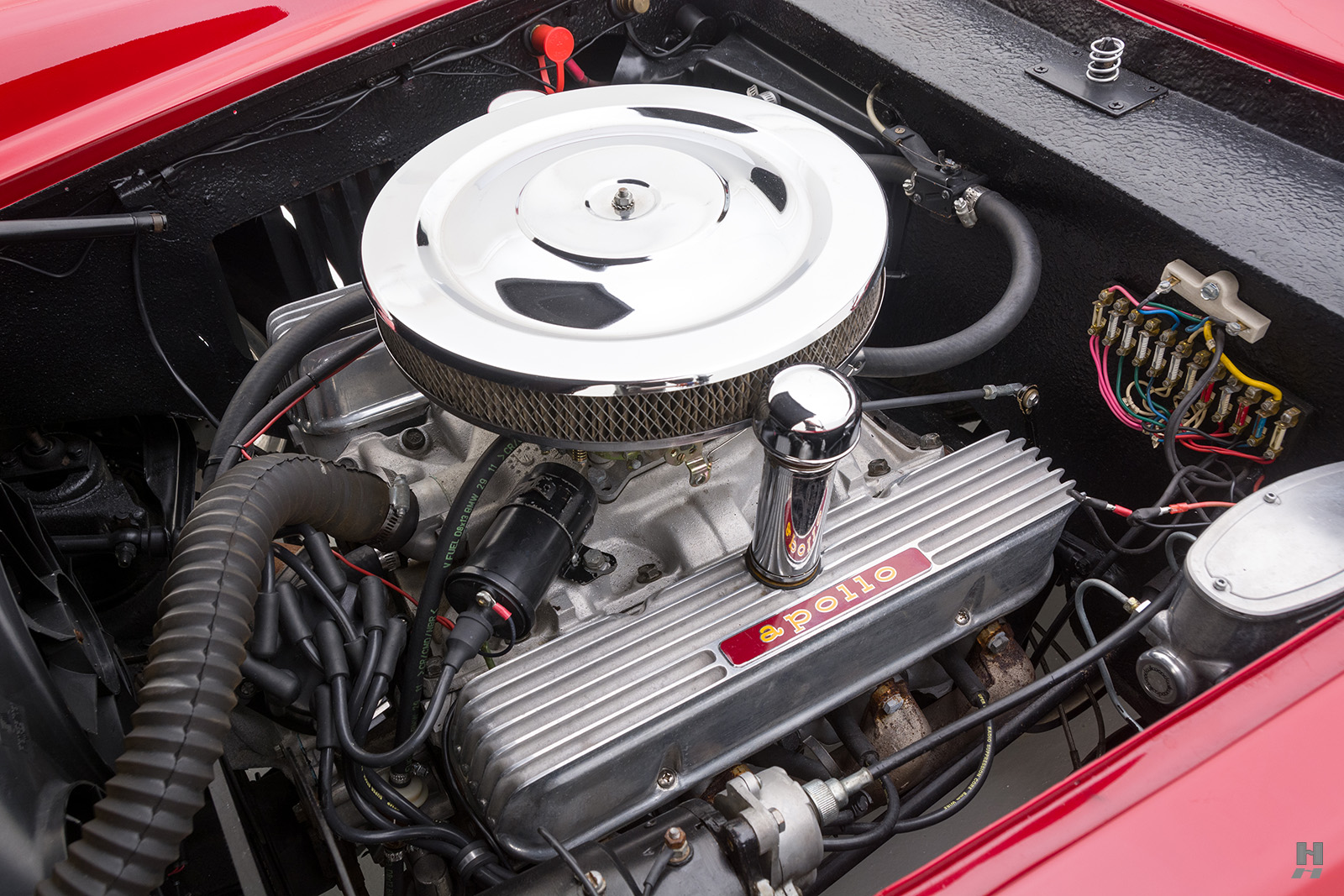 Au cœur de cet Apollo se trouve le V8 « Nailhead » de 4,9 litres de Buick, partagé avec le Skylark. Bien que moins exotique que la 215 tout en aluminium, cette unité en fonte offre beaucoup plus de grognement. Le propriétaire le plus récent rapporte que de nombreuses pièces de réglage d’époque sont installées, y compris des pistons Olds « jupe pantoufle », qui font effectivement tourner le moteur à 348ci.