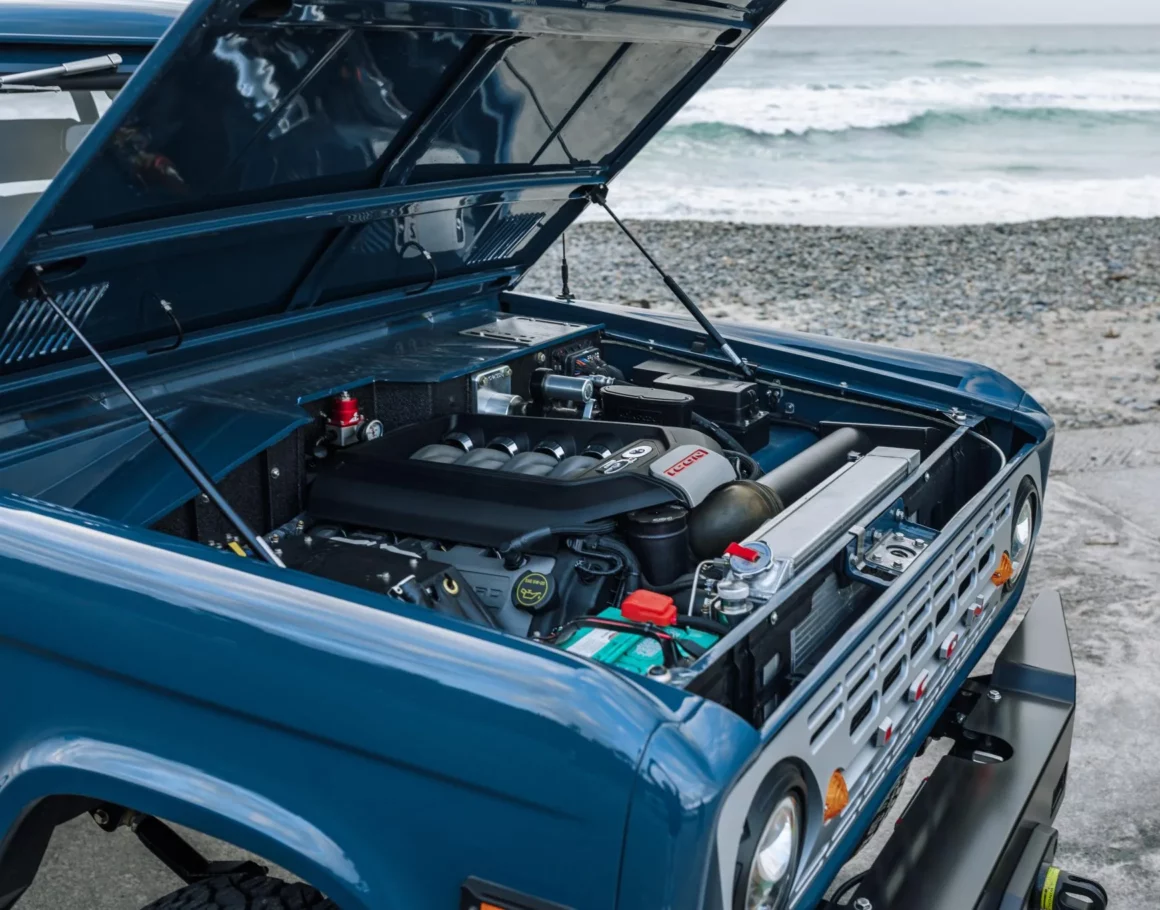 L’équilibre et la maniabilité sont aussi neutres que dans un 4X4 de série, avec un survirage facilement invoqué avec un levage ou un plongeon dans l’accélérateur. Ce bonheur arrière fait du Bronco Icon un engin qui procure des frissons de bonheur à conduire, surtout si ce sentiment est aussi aidé par une une poignée en va et vient incessants à l’approche des limites sans filet de sécurité de de contrôle. Mis à part ces éléments, la perle de cette huître est le robuste V8 donné pour un puissant 840cv de haine envers toutes les autres automobiles. C’est un excellent test pour le châssis qui s’amuse de tout 0 à 60 mph en seulement 4,4 secondes ! Bien que mon temps avec ce Bronco ait été abrégé par un besoin de repos, je pense que la résurrection d’Icon en tant que transformateur d’automobiles renommées fera grands bruits, aidé par la société EV-Clinic.