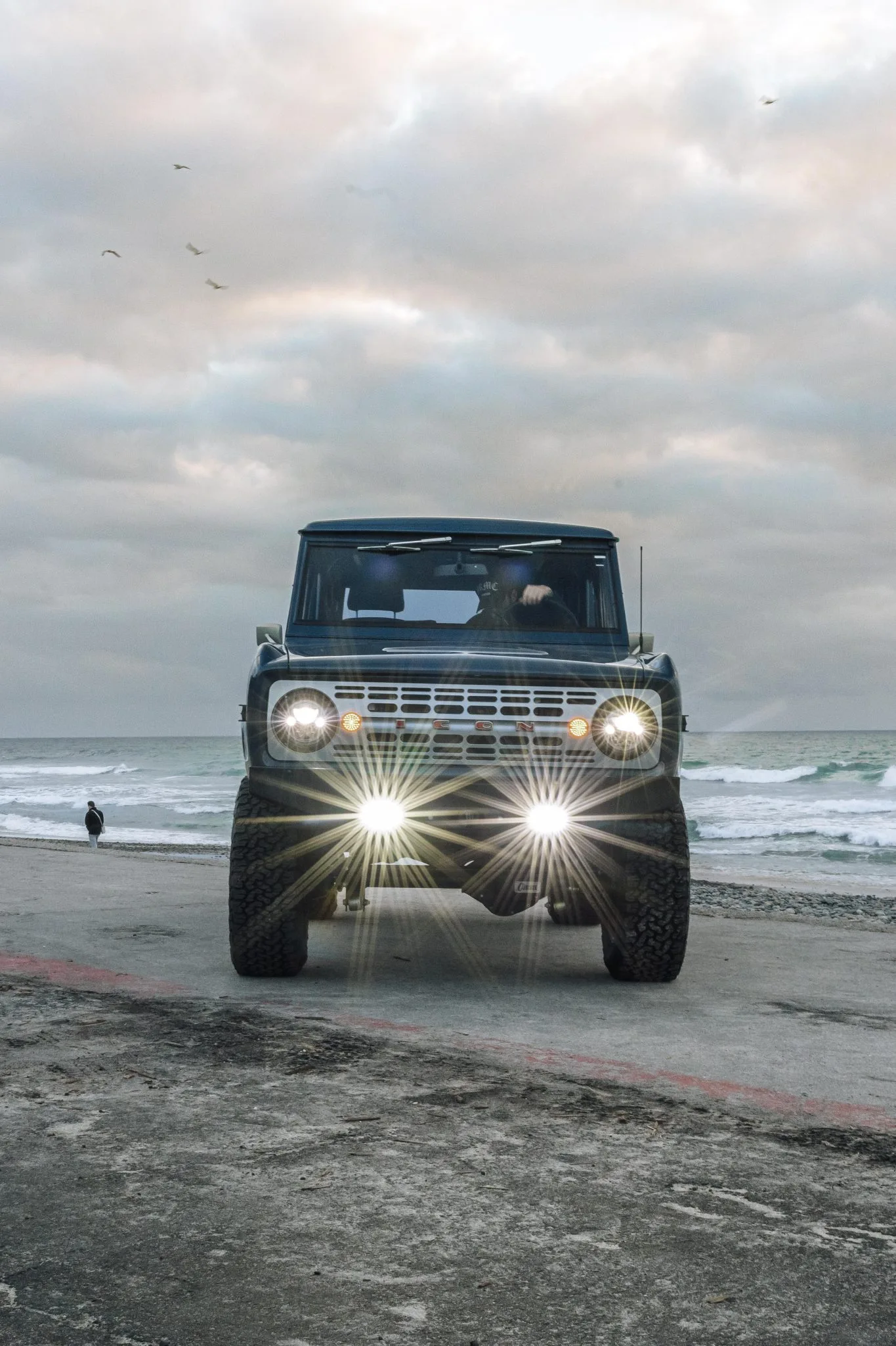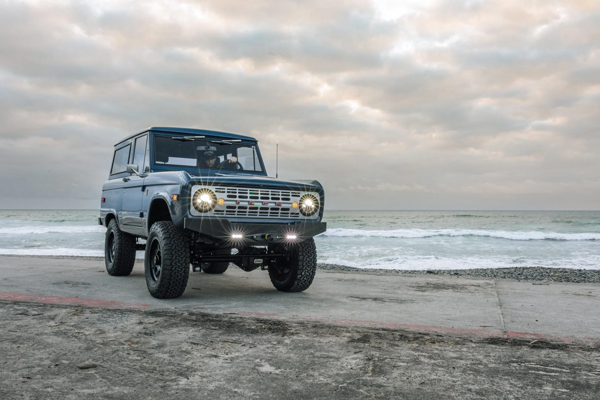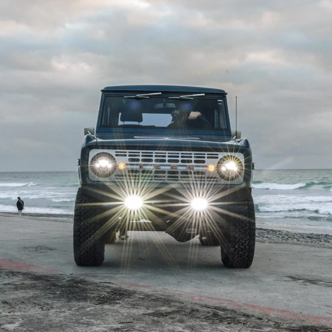 Il est 8h30 du matin et moi, les yeux flous, je tâtonne sur la plage avec ce qui pourrait être le porte-clés le plus cher du monde pour orner les pochettes de mon jean Banana Republic bien usé et me balader en Bronco Icon avec la sulfureuse et sexy Bianca… En grimpant dans le 4×4 je me sens comme un barouder débutant sur le point d’embarquer une sadique en combinaison de latex rouge pour un sex-cross-country en duo. En essayant de me souvenir de la séquence d’allumage correcte que je dois parfaitement exécuter, je m’égare sexuellement une poignée de fois sur ses seins avant d’entreprendre cette mission, mais ensuite un récital de “Bronco-Mantra” fait l’affaire via des instructions préenregistrées : “Ouvrez la boîte à gants, insérez la clé secondaire, quart de tour dans le sens des aiguilles d’une montre, bascule d’allumage, embrayage, appuyez sur le bouton de démarrage !”... Ah, ça devient plus facile à chaque fois!