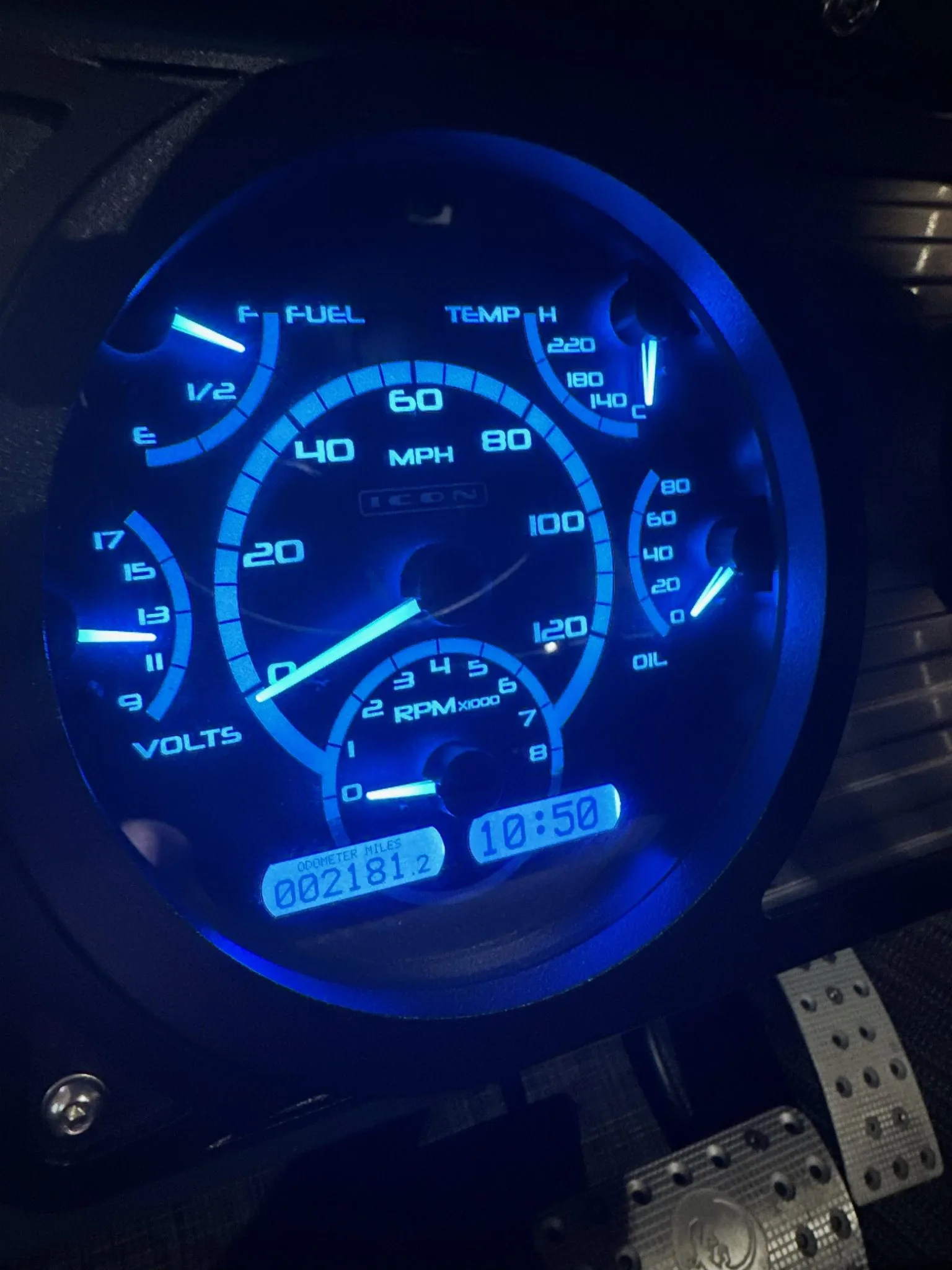 Ă€ cheval sur la fine ligne entre luxure et gaietĂ© sexuelle dĂ©bridĂ©e, j’ai toutefois notĂ© que le tableau de bord Ă©tait intelligemment minimisĂ© en un seul mais complexe compteur qui s’illumine façon boite de partouze dès que la nuit s’installe. Ce rĂ©tro-Ă©clairage dans un bleu kryptonite en sus des rangĂ©es d’interrupteurs Ă bascule imitant le tableau de bord d’un avion, est un ajout psychologique aux fonctions de base rĂ©servĂ©es au plaisir. En appuyant sur un interrupteur et un mode sport est activĂ©, modifiant la sensibilitĂ© de l’accĂ©lĂ©rateur tout en ouvrant simultanĂ©ment un ensemble de dĂ©coupes d’échappement, raccourcissant la longueur du tuyau pour un grognement vraiment menaçant (non recommandĂ© lors du passage d’une patrouille de police)… De son cotĂ©, l’architecture du groupe de pĂ©dales est le chef-d’œuvre d’un machiniste, semblant avoir Ă©tĂ© transplantĂ©e directement Ă partir d’un engin spatial !