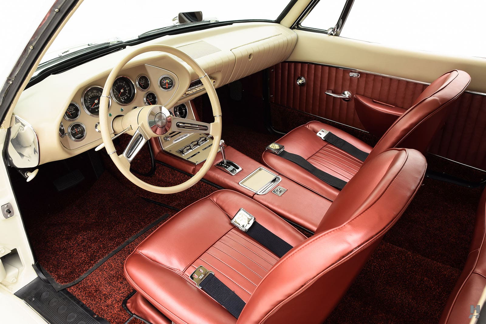 Mais le public n’a pas suivi… Je décortique l’affaire : L’Avanti de 1963 avait un small-bloc V-8 Studebaker 289ci en version standard disponible en version non suralimentée (R-1) et suralimentée (R-2). La transmission de base rarement vue, était une manuelle trois vitesses, ensuite une boîte manuelle à quatre vitesses et une boîte automatique BorgWarner étaient en options. La climatisation n’était pas disponible sur les R-2, car le compresseur Paxton ne laissait aucune place sous le capot pour un compresseur de climatisation. Toutes les Avanti’s étaient équipées de freins à disque Dunlop à l’avant et de freins à tambour à l’arrière. Les options comprenaient une direction assistée, des vitres électriques, une radio AM ou AM / FM, et des vitres teintées.