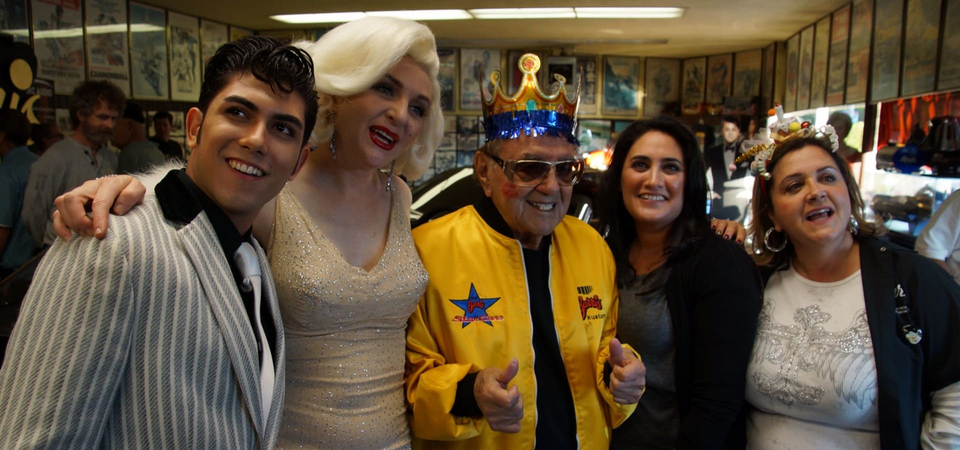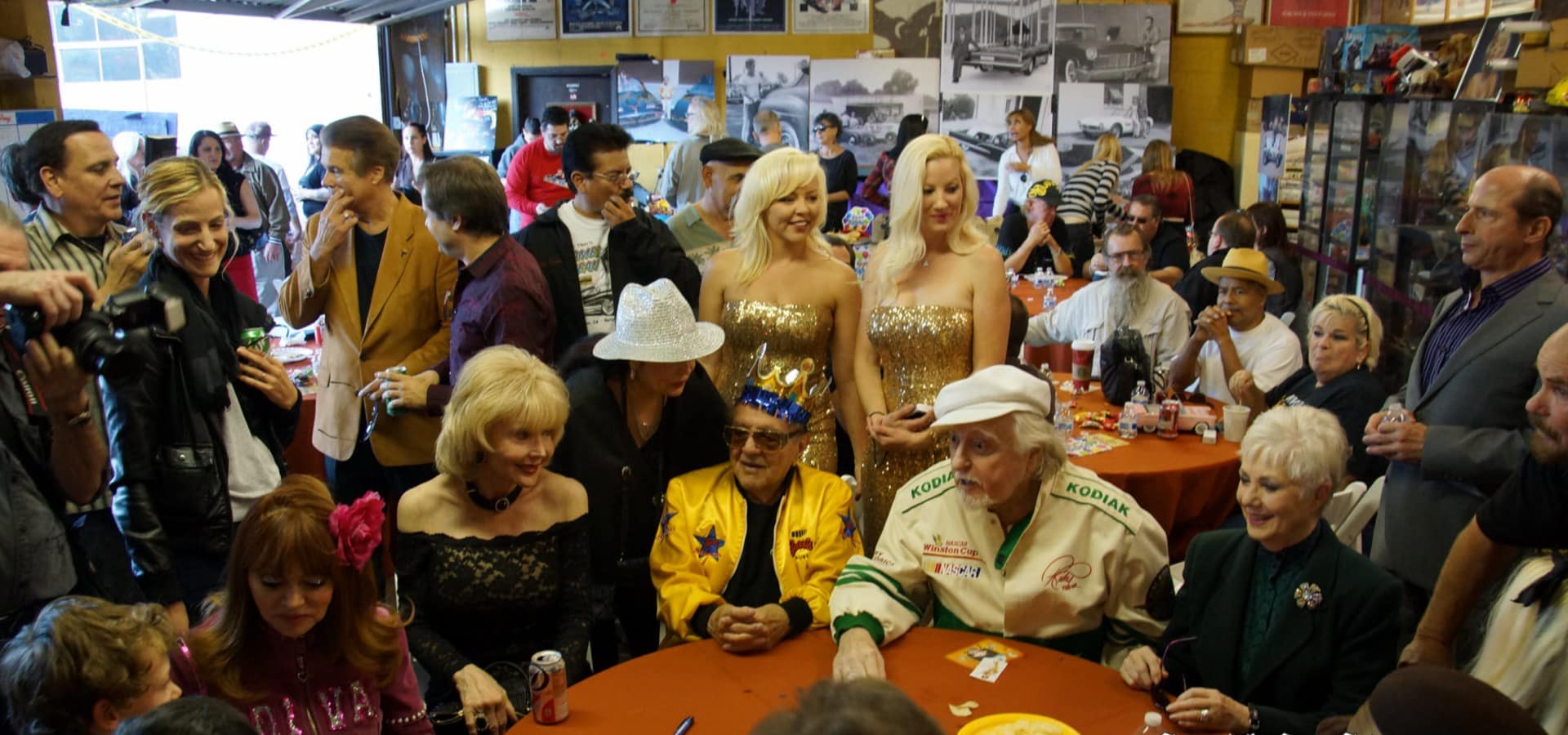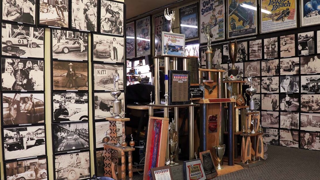 Toute une vie de trophées de salons automobiles remplissaient la salle d’exposition et les bureaux de Barris Kustom. Les meilleurs trophées étaient les centaines de photos encadrées d’acteurs et d’artistes qui avaient été des clients, des amis et des fans. Au milieu de toutes les voitures célèbres que Georges Barris a construites pour les plus grandes stars d’Hollywood, il a su cultiver son propre statut de célébrité (appelé “Branding” de nos jours). Il était un maître. Quand il construisait des voitures, il réfléchissait toujours à la façon de se promouvoir…