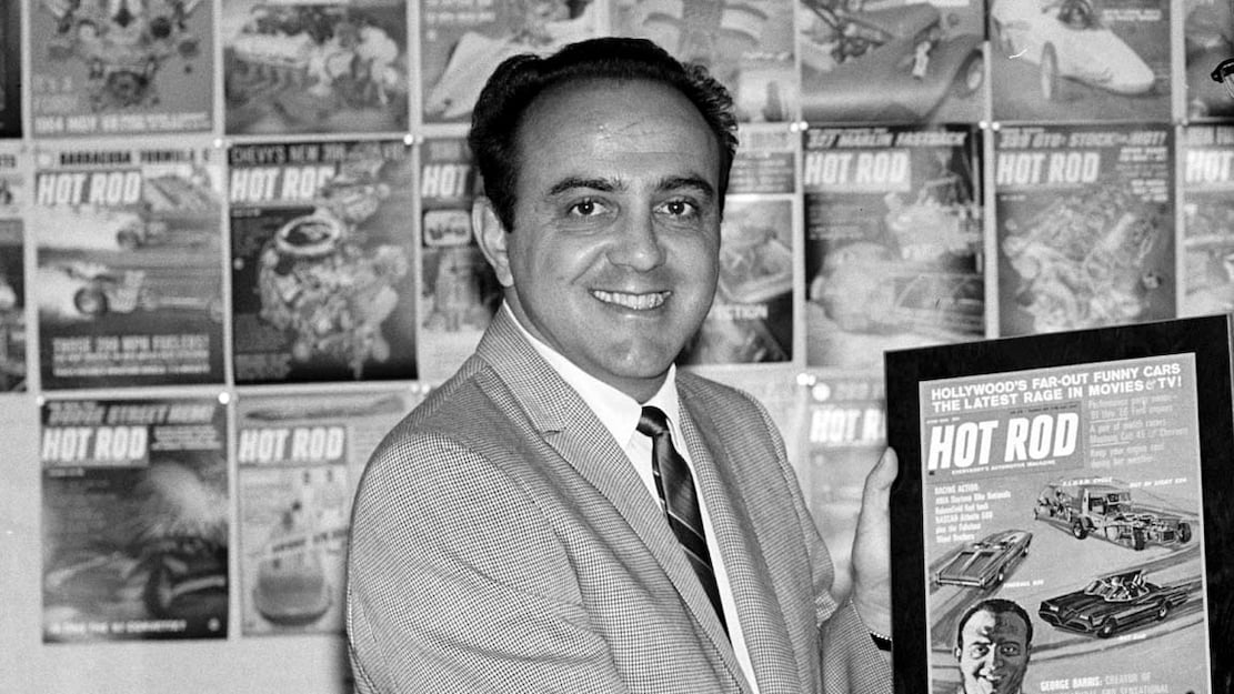 George Barris fut sans nul doute le roi du custom et du Hot Rod, le “King of the Kustomizers” auto-proclamé. Il est à l’origine de nombreuses préparations devenues célèbres (Batmobile, Black-Beauty, KITT, etc…) et son travail de qualité fu et reste salué par les amateurs. George Barris est né en 1925 à Chicago, lui et son frère ainé Sam quittent Chicago pour Roseville, Californie, à la mort de leurs parents chez un oncle et une tante. Les deux frère sont de bons étudiants, plus particulièrement en théatre, en musique et en dessin. George est passionné par la construction d’avions et d’automobiles.