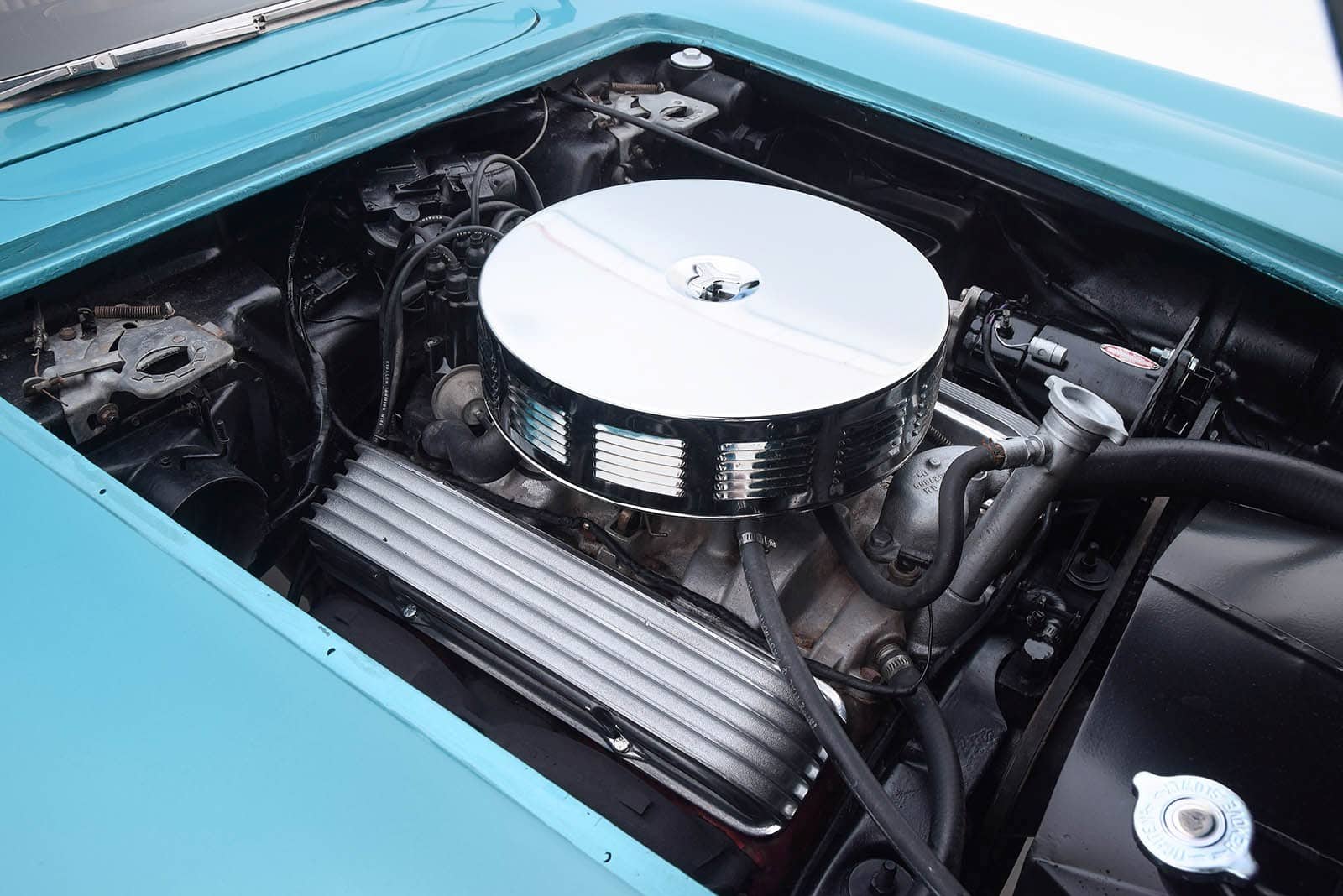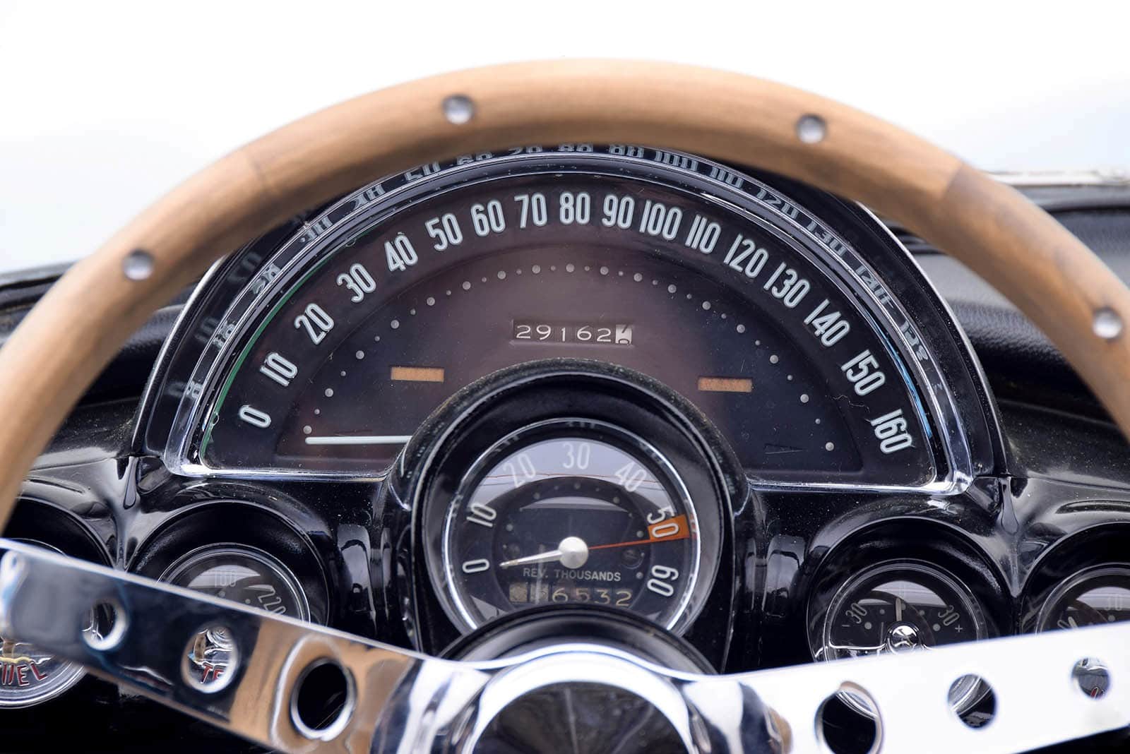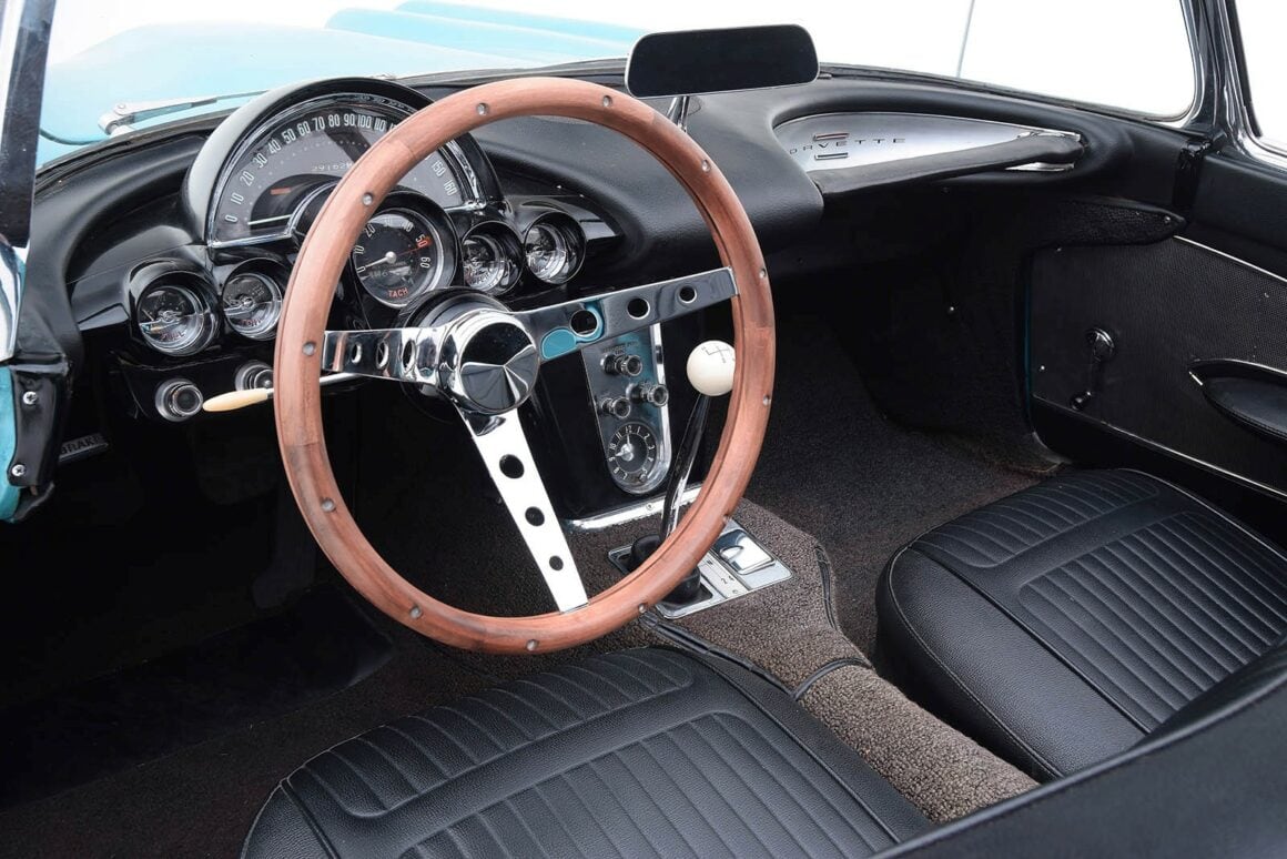 Aujourd’hui, cette Corvette réplique XP 700 de Barris Kustoms 1958 se présente en très bon état avec les modifications Barris d’origine et les pièces AI encore intactes. C’est une Corvette mythique car de Georges Barris “Hommage à Bill Mitchell” (sic !) une pièce d’époque super-cool très authentique, jusqu’aux pneus AAA à flancs blancs montés sur des jantes en magnésium Ansen authentiques, équipées de spinners d’Accessories International. Le moteur est un V8 327ci couplé à une boîte manuelle à quatre vitesses avec levier de vitesses Hurst.