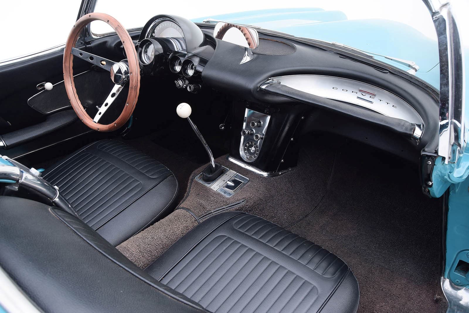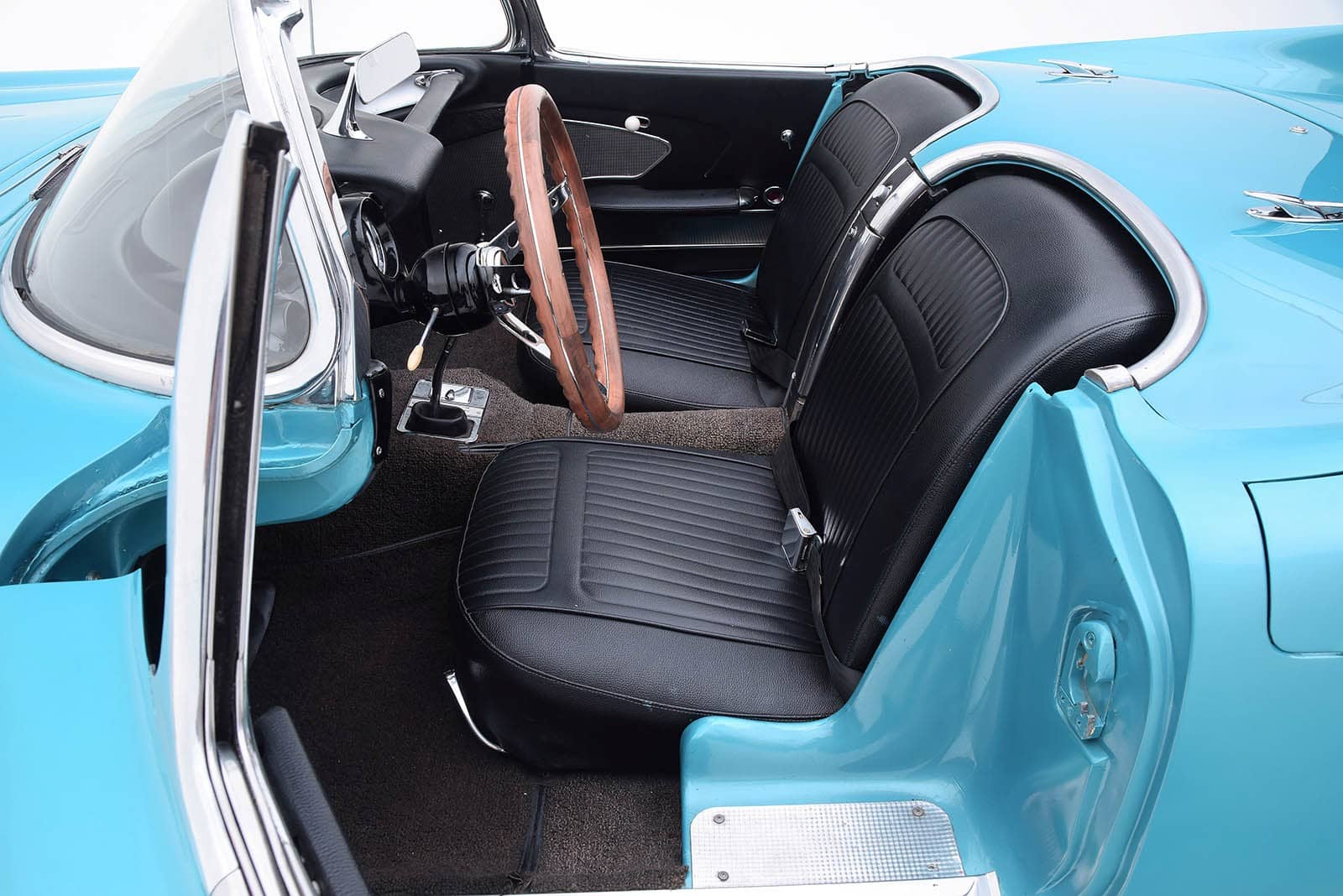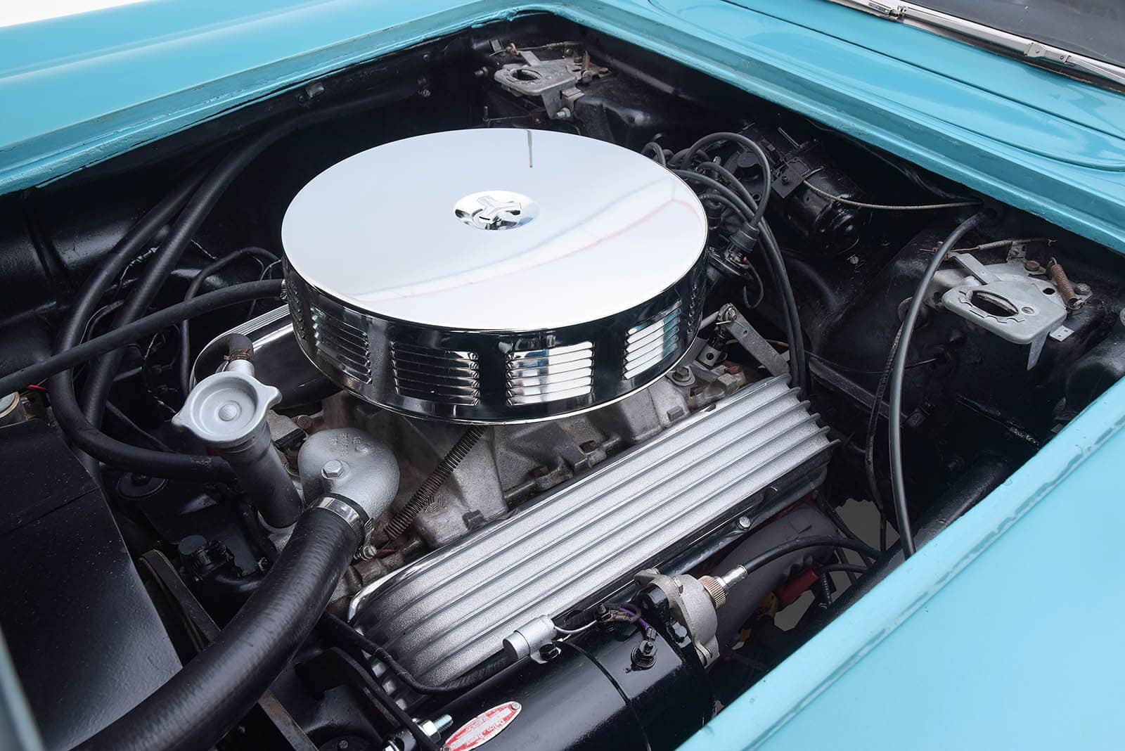 Aujourd’hui, cette Corvette réplique XP 700 de Barris Kustoms 1958 se présente en très bon état avec les modifications Barris d’origine et les pièces AI encore intactes. C’est une Corvette mythique car de Georges Barris “Hommage à Bill Mitchell” (sic !) une pièce d’époque super-cool très authentique, jusqu’aux pneus AAA à flancs blancs montés sur des jantes en magnésium Ansen authentiques, équipées de spinners d’Accessories International. Le moteur est un V8 327ci couplé à une boîte manuelle à quatre vitesses avec levier de vitesses Hurst.