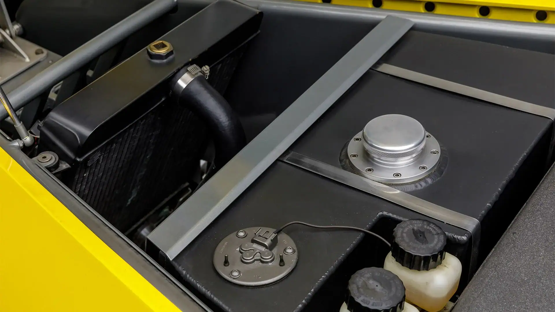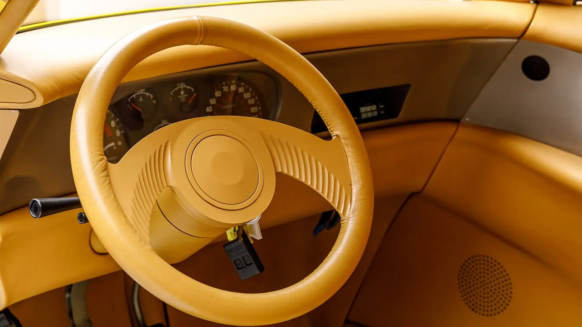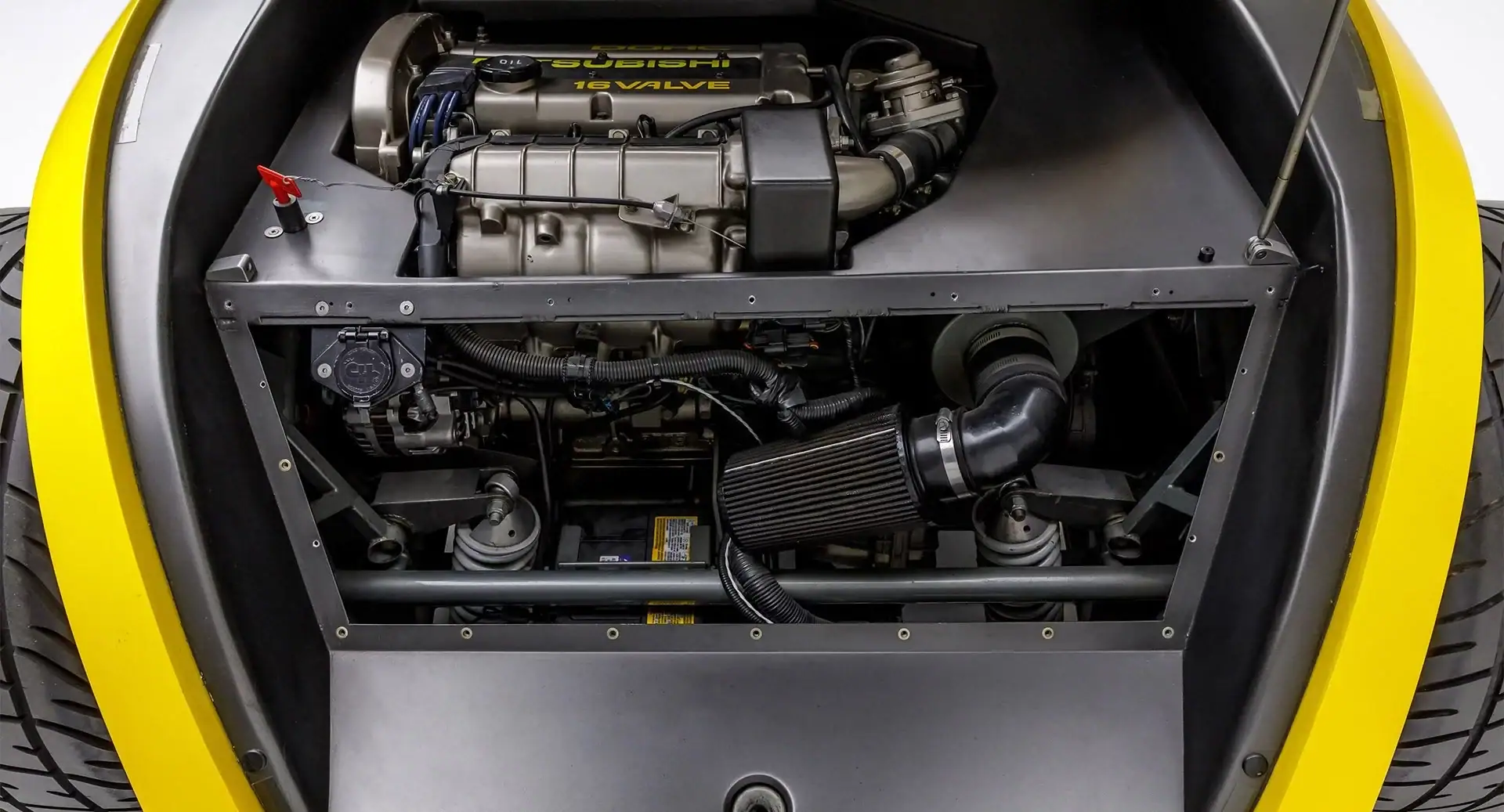 Il a été modifié par Russ Collins de RC Engineering pour atteindre 330cv. Transaxle : Mitsubishi automatique quatre vitesses de 1990… Jantes : Billettes d’alu Boyd Coddington Tri-Fan 16 pouces avant et arrière… Pneus : Goodyear… Suspension avant : porte-à-faux indépendant avec coilovers Porsche Carrera… Suspension arrière : indépendante également avec coilovers Porsche Carrera intégrés.