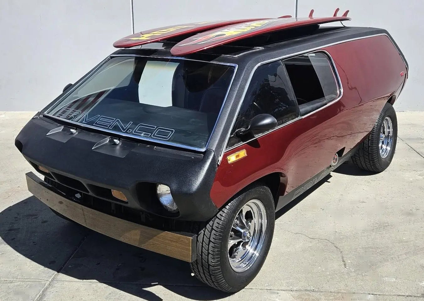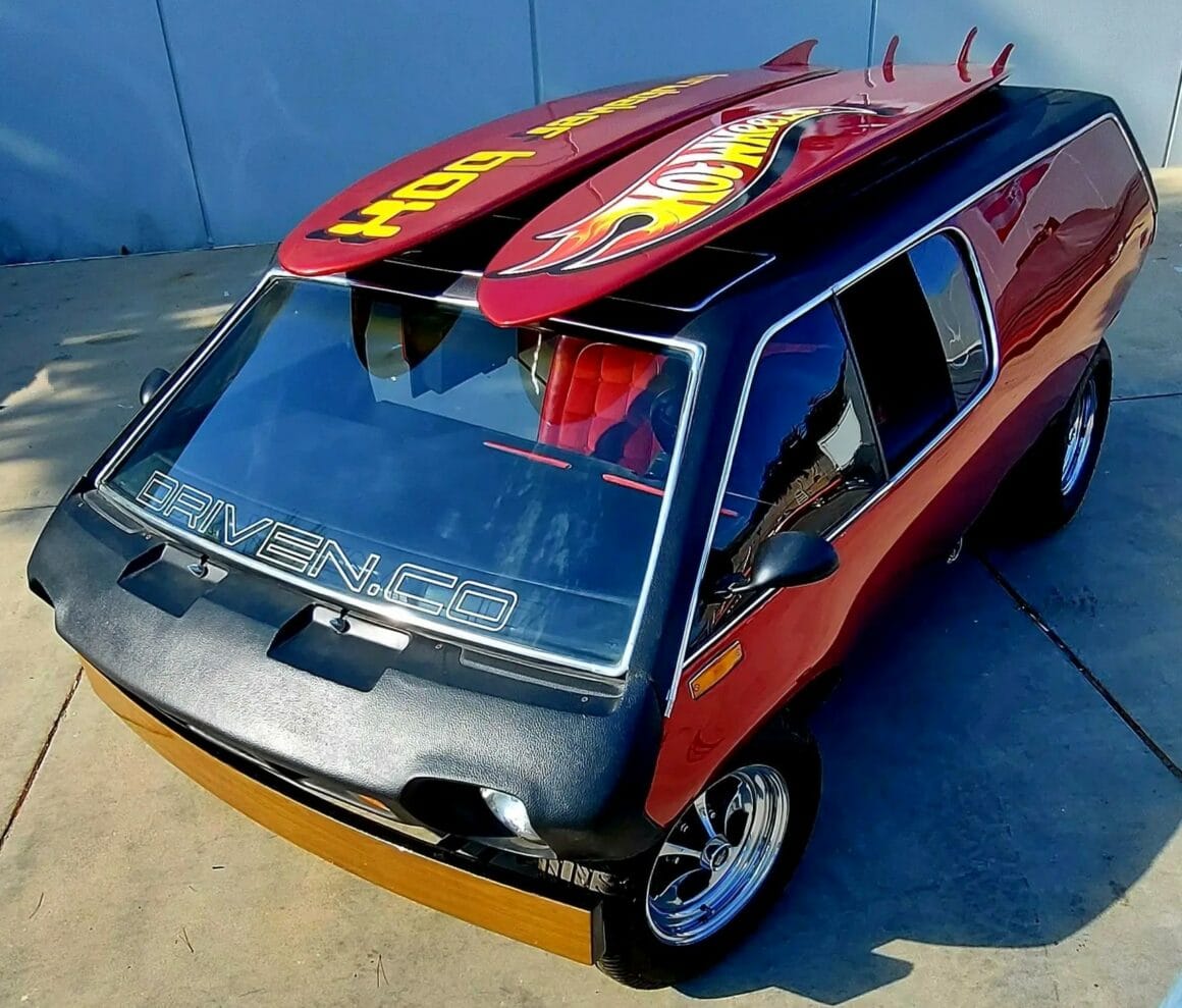C’était un Mini-Van à l’allure de mini-van futuriste, capable de rouler sur le sable et d’embarquer les planches de surf sur le toit et les surfeuses en attente d’être baisées dans le lit/compartiment arrière. Pas de hayon ni de porte cabine, mais un accès unique et coulissant sur le côté droit pour l’intimité sexuelle…