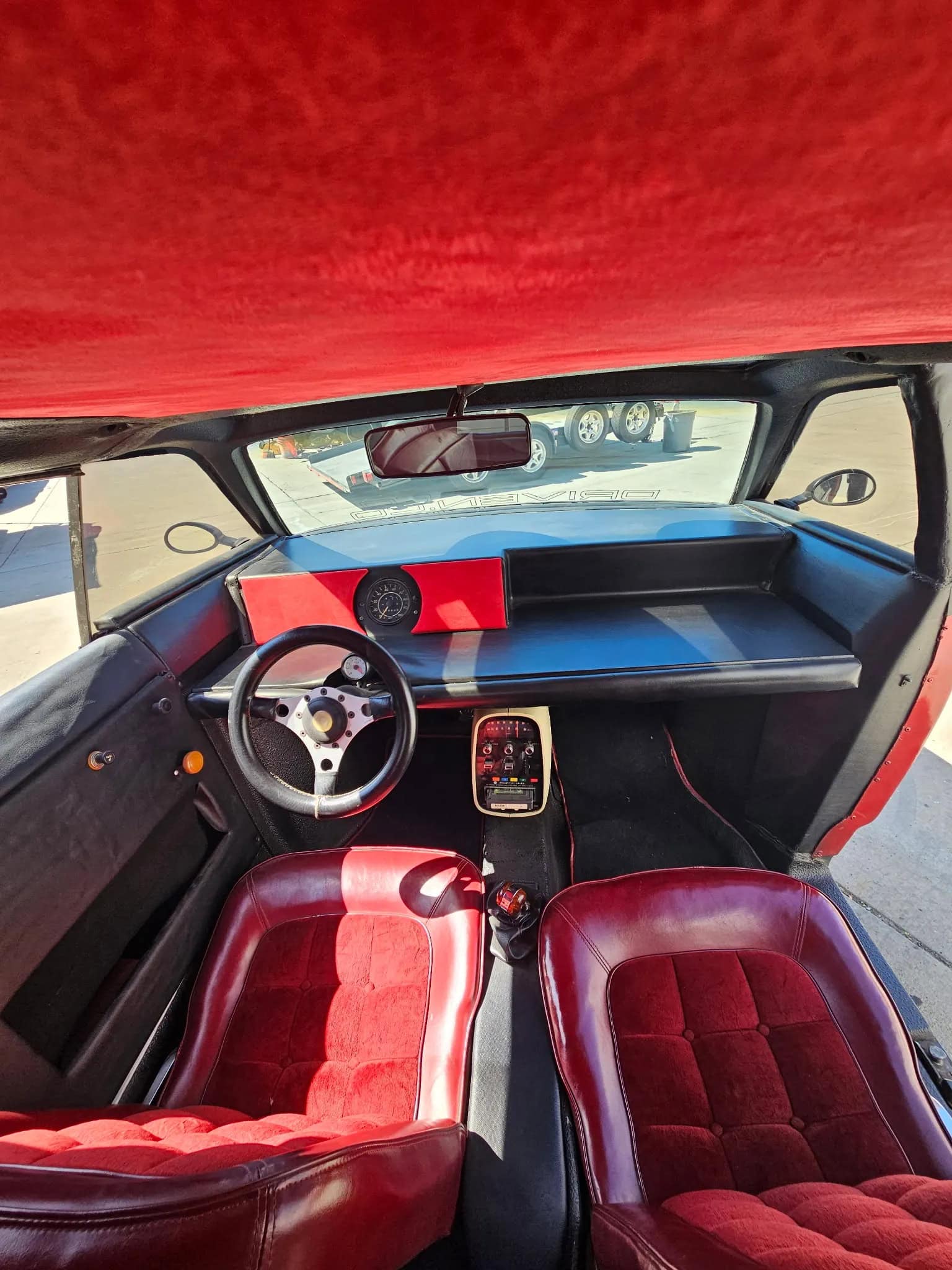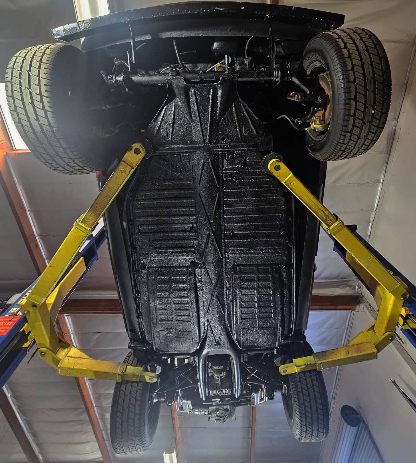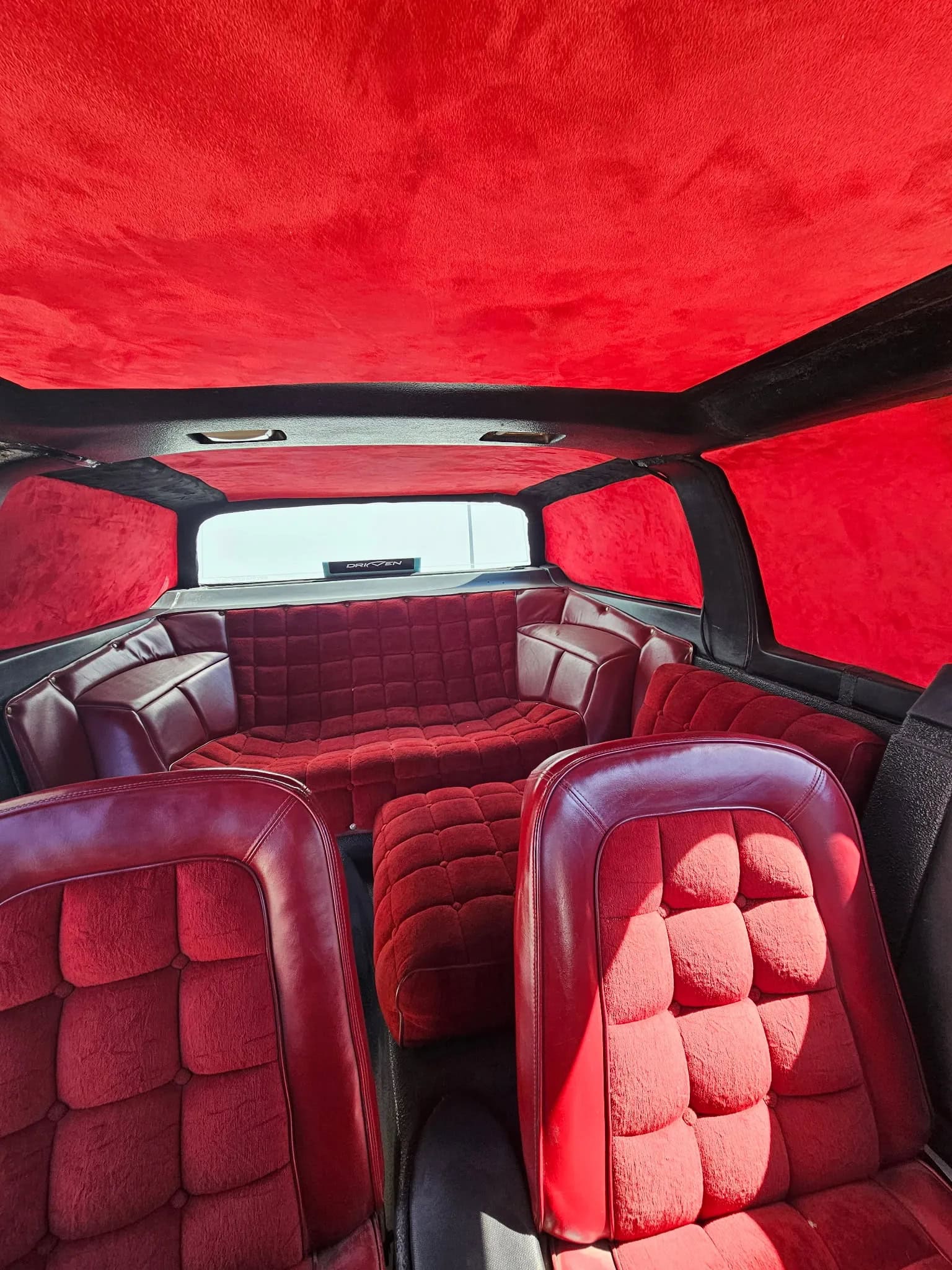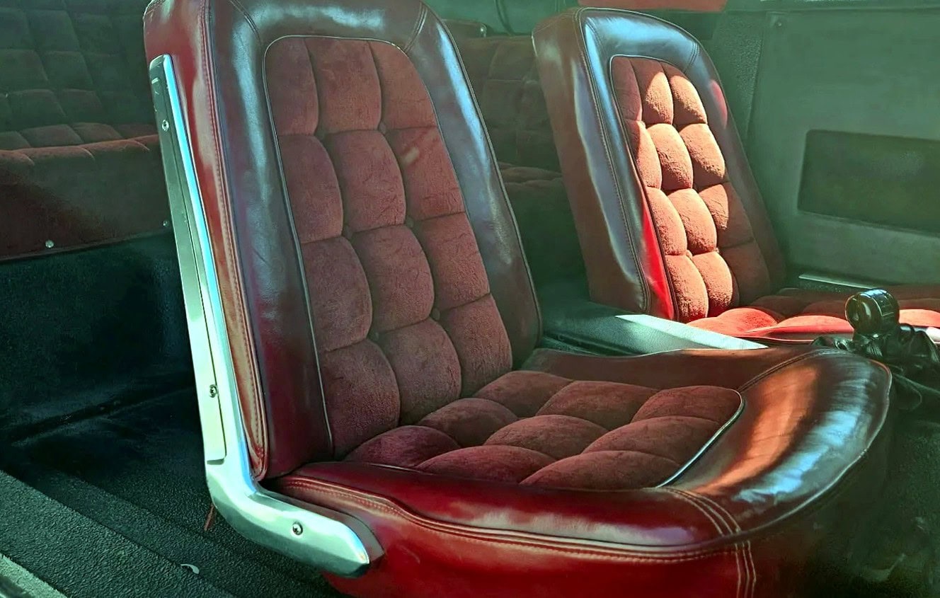 Ont été ajoutés des freins à disque à l’avant et 4 jantes Cragar de 15 pouces. Le tout a été monté sur le même châssis qui n’avait aucune trace de corrosion. L’intérieur est resté doté de la sellerie capitonnée d’époque avec des sièges de salon enveloppants et d’un lecteur 8 pistes Brother Aquatron VX-33…