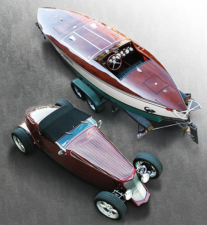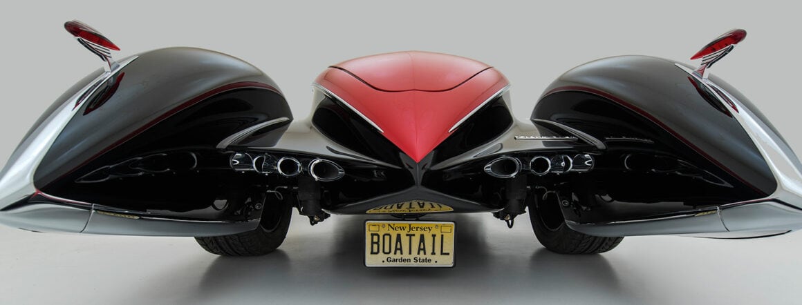 Commençant sa vie comme une voiture sans ailes, elle a évolué pour devenir la première “queue de bateau” de deuxième génération avec des ailes pontons tout autour. Cela a commencé comme le Highboy avec des inserts de hors-bord en bois (véritable) stratifié. Ensuite, les pontons fermés à l’avant et à l’arrière ont été ajoutés par Gary Brown. Cette voiture s’est vendue aux enchères Keels & Wheels au Texas pour 105.000 $. Plusieurs autres queues de bateau à ailes pontées Gen Two ont suivi avec la Type 57 Bugnotti noire qui s’est vendue pour 227.000 $ à la vente aux enchères Gooding Scottsdale, AZ.
