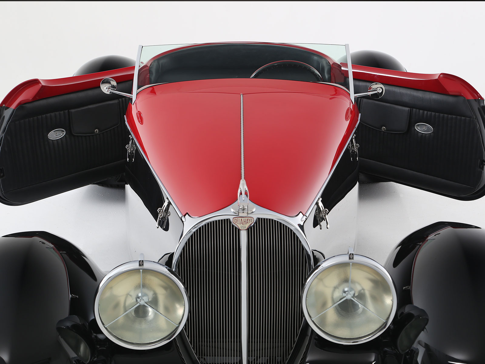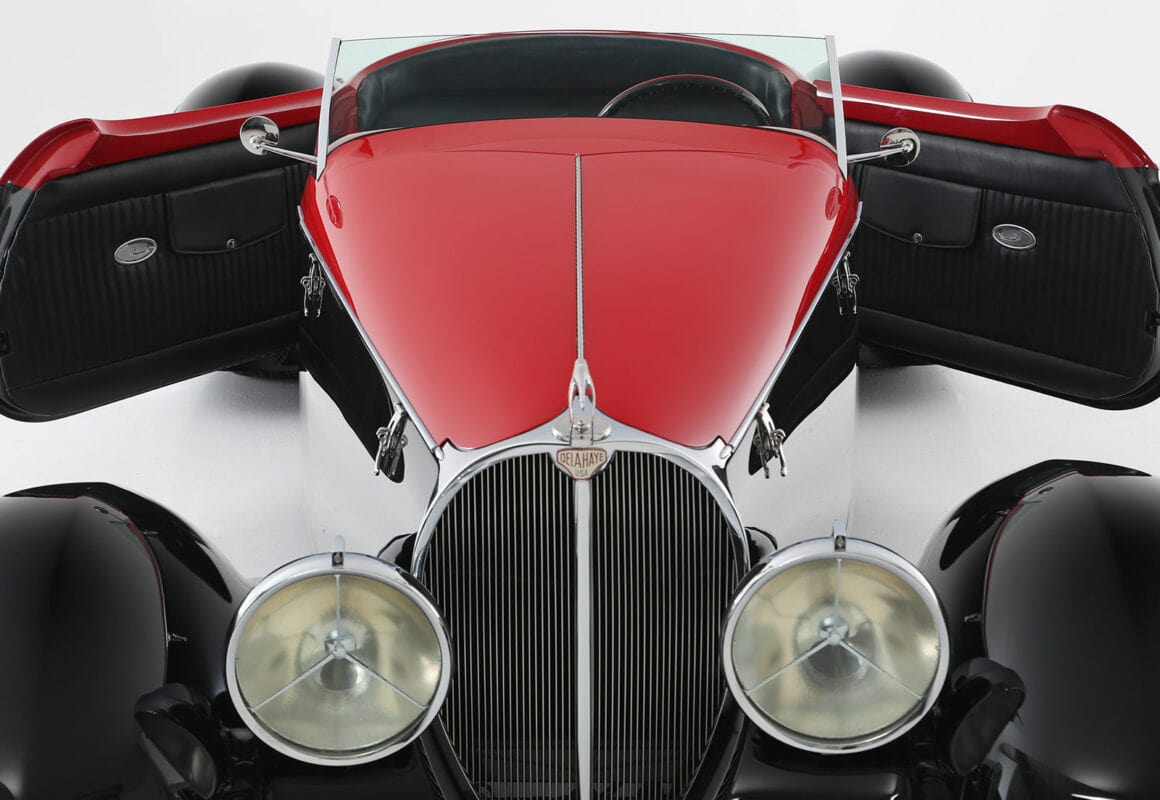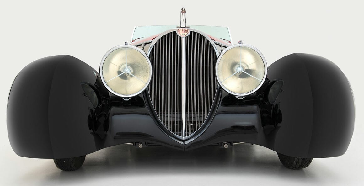 Par exemple, l’extraordinaire Bugatti Type 1939 “Shah of Persia’57” avec une carrosserie du carrossier Achille Vanvooren. Les automobiles personnalisées américaines abaissées étaient déjà classiques lorsque cette Bugatti est apparue en 1995 au Concours de Reading, PA. Cette voiture se distinguait par quatre ailes de style “ponton” qui étaient entièrement fermées (on ne voit pas les roues). D’autres belles voitures profilées de cette époque qui comportaient des ailes de roue fermées étaient des coupés Talbot Lago Teardrop de Figoni & Falaschi, des Delahayes F & F 135M et deux Delahayes Type 165 1939 de Figoni.