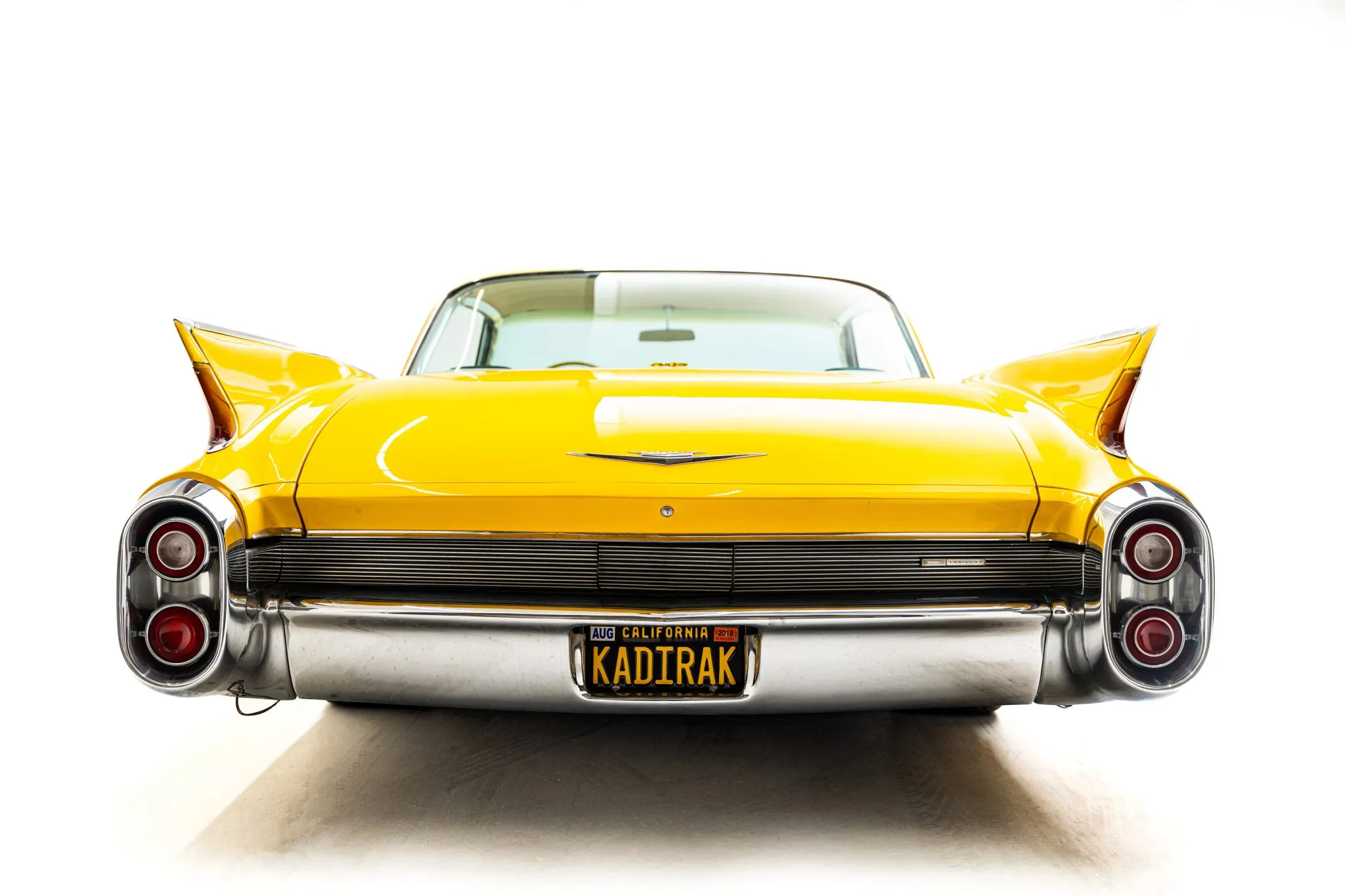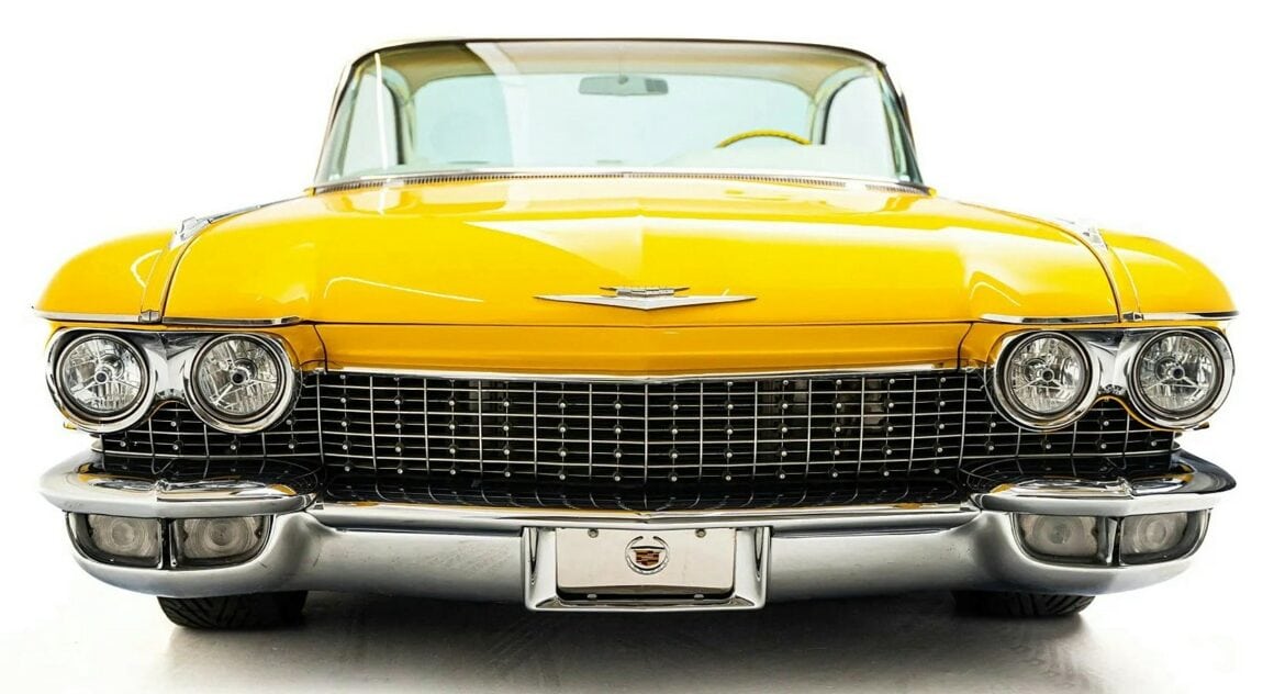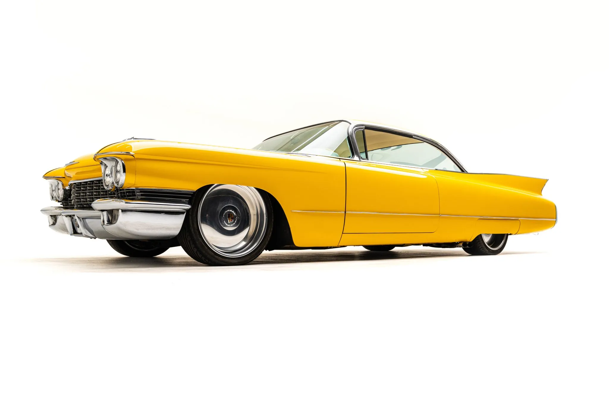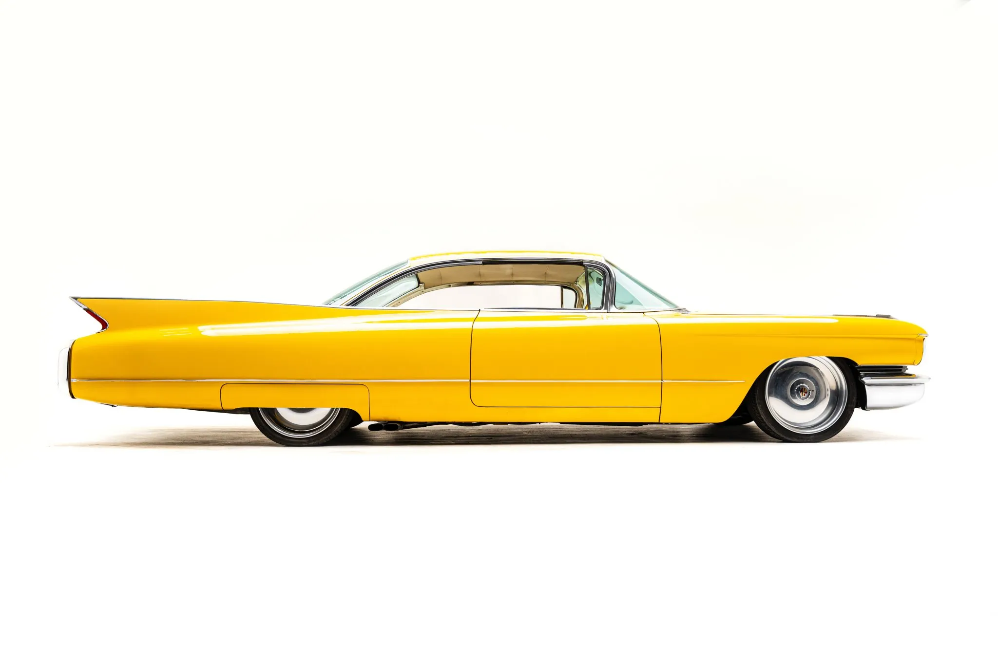 Cette Cadillac DeVille modifiée est réellement une auto de rêve… La voiture a quitté l’usine en 1960 finie en couleur sable persan (code 48), et les poignées de porte et autres objets “qui dépassent” ont été rasés avant la repeinture générale en jaune. Il y a la climatisation et les vitres sont électriques… Rouler dans cette Cadillac 60, c’est comme chevaucher un nuage, pas ces oreillers blancs gonflés, mais plutôt ces monstres qui précèdent un orage avec des tonnes de tonnerre et d’éclairs. La taille esbaudit la foule, éclipsant les autres voitures par son design, chaque centimètre étant le résultat de l’aérodynamique de la course à l’espace de l’époque. Pourtant, c’est la taille impressionnante qui renforce le style, créant un attrait général indéniable. C’est qu’en 1960, Cadillac avait encore le vent en poupe…