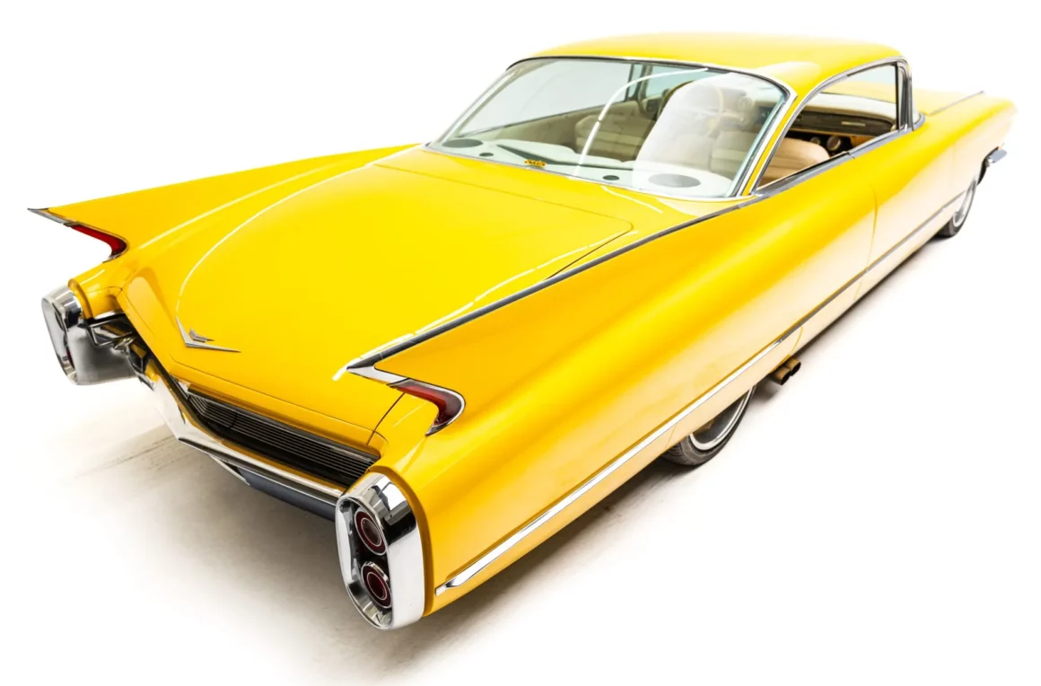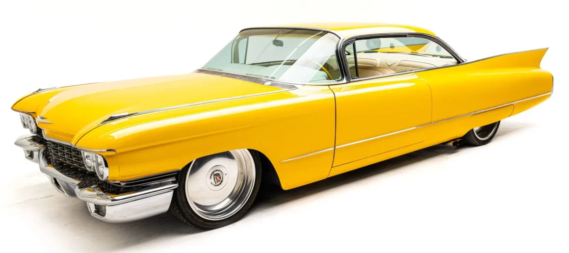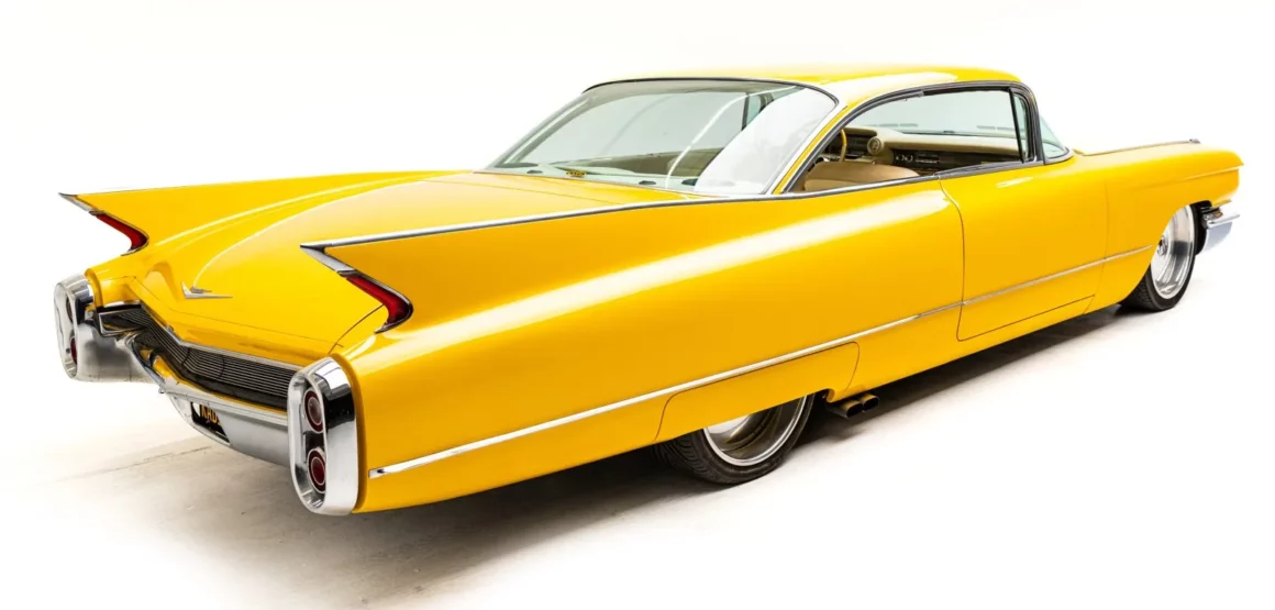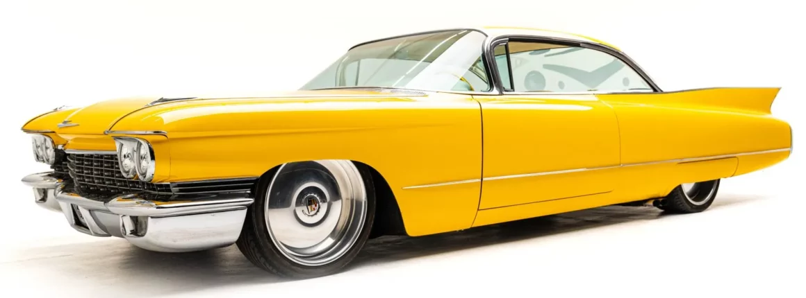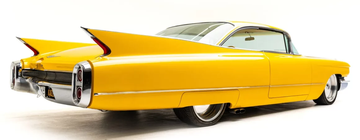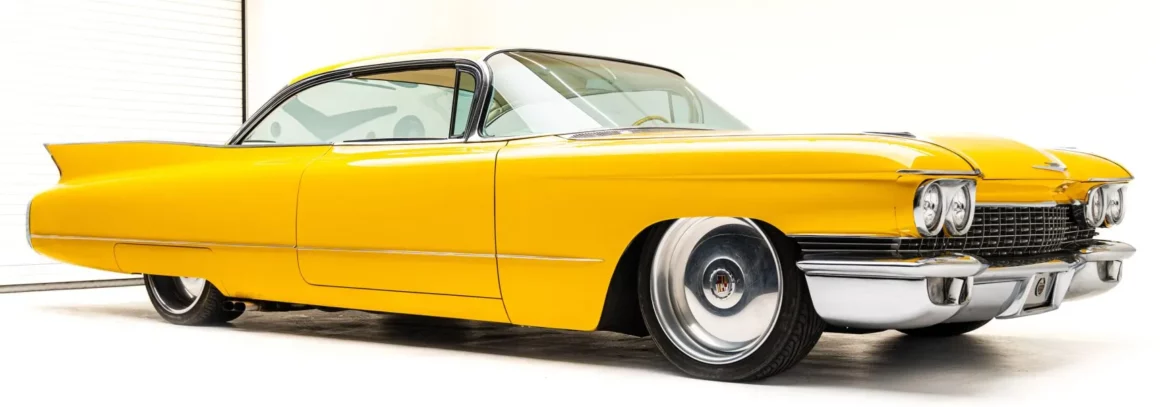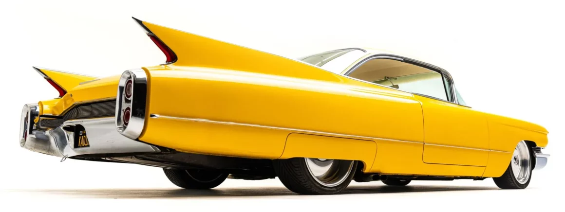 Après une nuit de folies sexuelles puis textuelles réparatrices, après avoir tapoté mon billet d’humeurs noires remplaçant temporairement mon humour noir, j’ai noté que c’était bien beau mais totalement crétin, mon moi profond me murmurant que pour faire le pitre, la Cadillac jaune, c’était plus qu’assurément le pied intégral… Le look, le look, le look… Donc, tant pis pour la Fisker, d’ailleurs en faillite, idem pour la Tesla qui semble problématique et j’ai décidé de franchir le pas, en avant… oubliant que je surplombais le puits sans fond de la connerie humaine, dans lequel je ne cesse de choir… Je chois donc avec cette Cadillac Coupe DeVille de 1960 qui a été modifiée par les soins de West Coast Customs de Burbank, en Californie, environ deux décennies avant d’être acquise en 2021 par le Petersen Automotive Museum de Los Angeles en Californie.