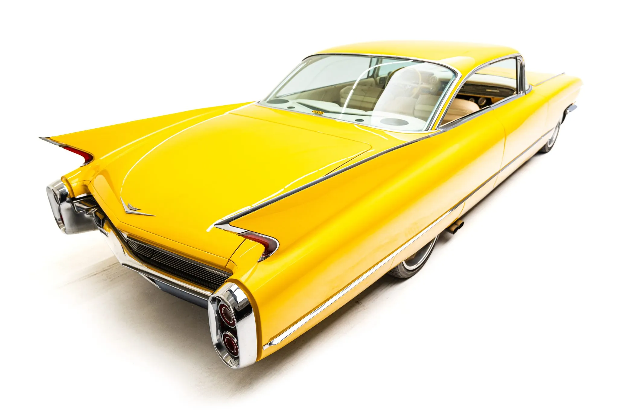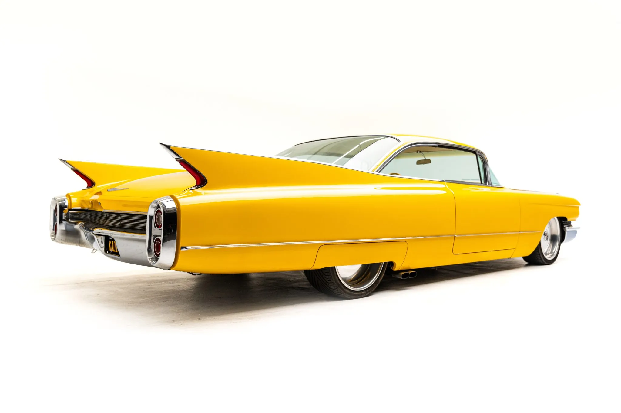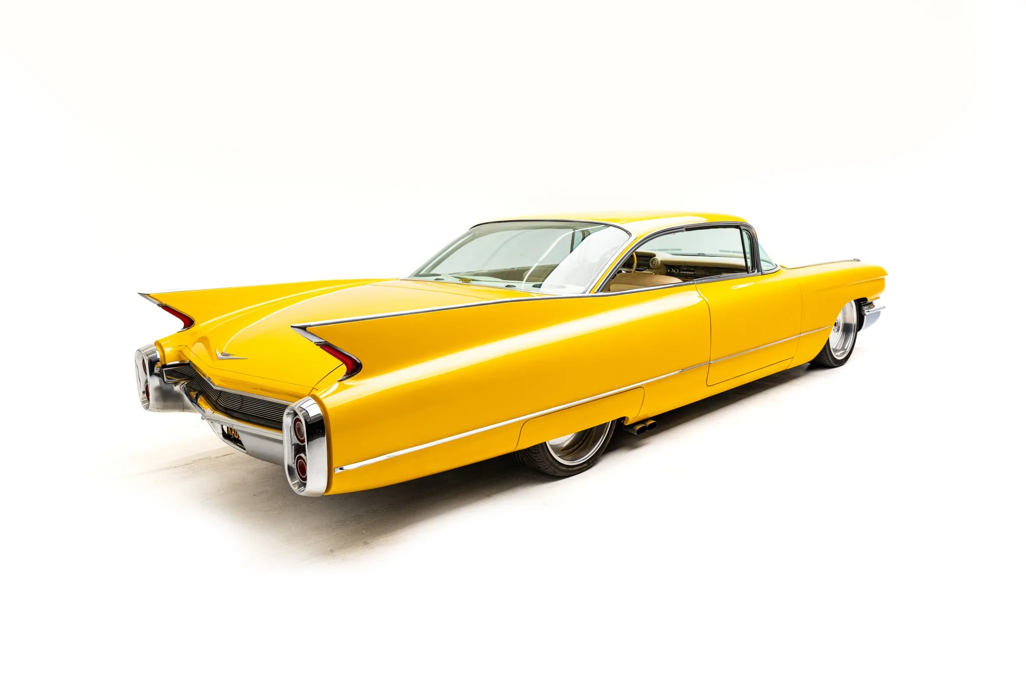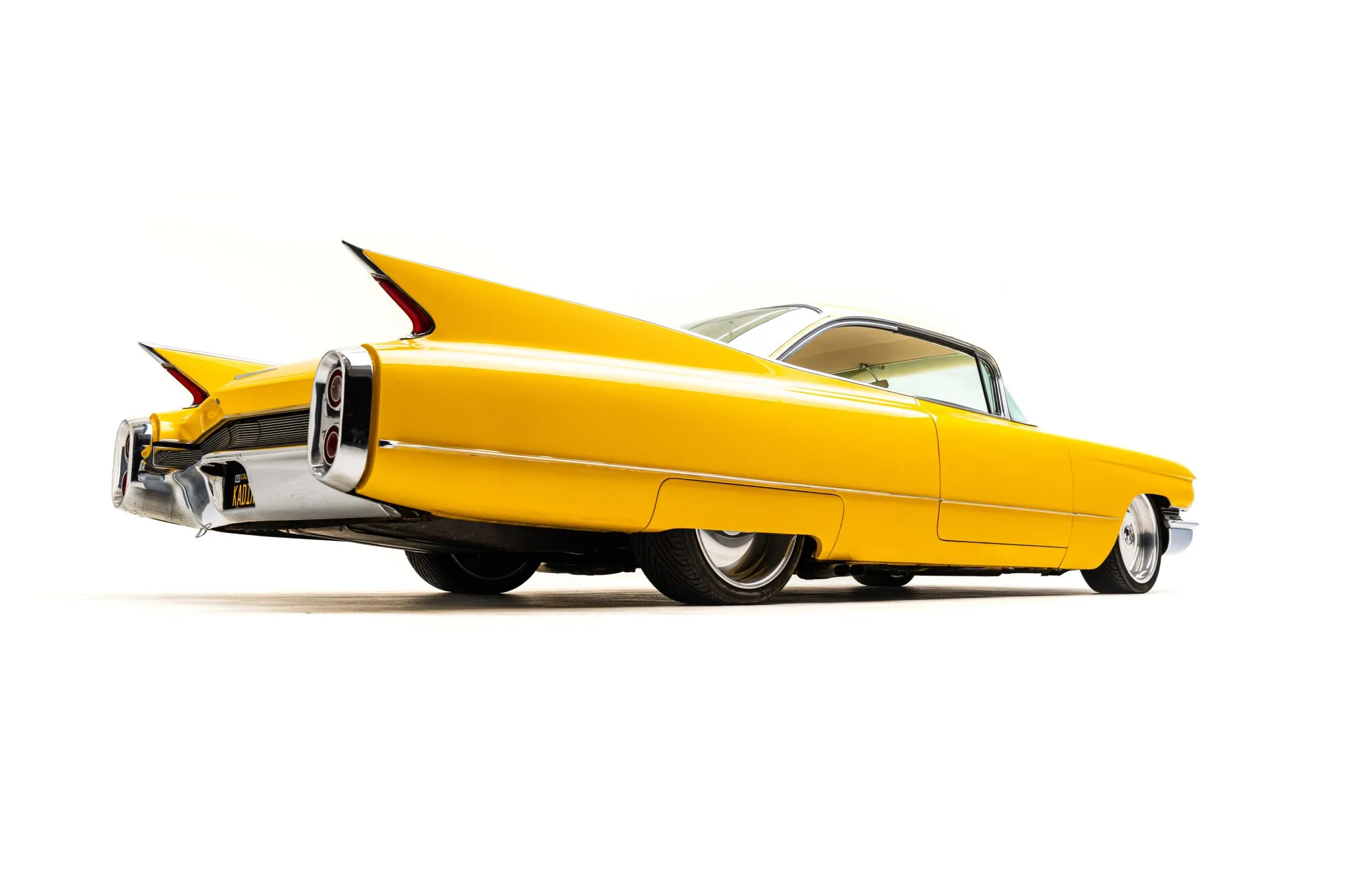Après une nuit de folies sexuelles puis textuelles réparatrices, après avoir tapoté mon billet d’humeurs noires remplaçant temporairement mon humour noir, j’ai noté que c’était bien beau mais totalement crétin, mon moi profond me murmurant que pour faire le pitre, la Cadillac jaune, c’était plus qu’assurément le pied intégral… Le look, le look, le look… Donc, tant pis pour la Fisker, d’ailleurs en faillite, idem pour la Tesla qui semble problématique et j’ai décidé de franchir le pas, en avant… oubliant que je surplombais le puits sans fond de la connerie humaine, dans lequel je ne cesse de choir… Je chois donc avec cette Cadillac Coupe DeVille de 1960 qui a été modifiée par les soins de West Coast Customs de Burbank, en Californie, environ deux décennies avant d’être acquise en 2021 par le Petersen Automotive Museum de Los Angeles en Californie.