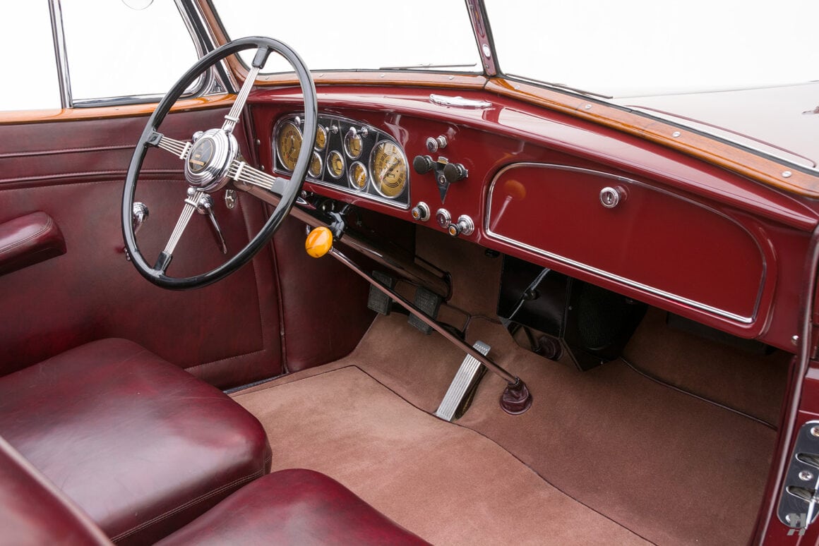 M. Plunkett avait créé l’une des plus grandes collections mondiales de Cadillac, les exposant dans son célèbre domaine Fleetwood Acres, et cette V16 a servi de pièce maîtresse de sa collection superlative. Il a fréquemment exposé cette Cadillac, obtenant un “Best in Show” au Hilton Head Concours 2017. Pendant le mandat de Plunkett, les travaux mécaniques et le rafraîchissement cosmétique ont été confiés à des experts renommés dont RM Restorations en Ontario. Le propriétaire le plus récent a acquis la voiture de Plunkett en 2018, et elle a continué à récolter des prix et des éloges. Cette extraordinaire Cadillac est présentée en superbe état, avec une restauration de classe mondiale qui reste remarquablement fraîche. La Cadillac a été restaurée avec précision selon ses spécifications d’origine, à l’exception d’un changement de couleur du noir au marron et de l’ajustement de jupes de passage de roue arrière façon époque, qui améliorent subtilement le design Streamline-Moderne. La sellerie en cuir bordeaux et la capote en toile noire complètent l’élégante présentation.
