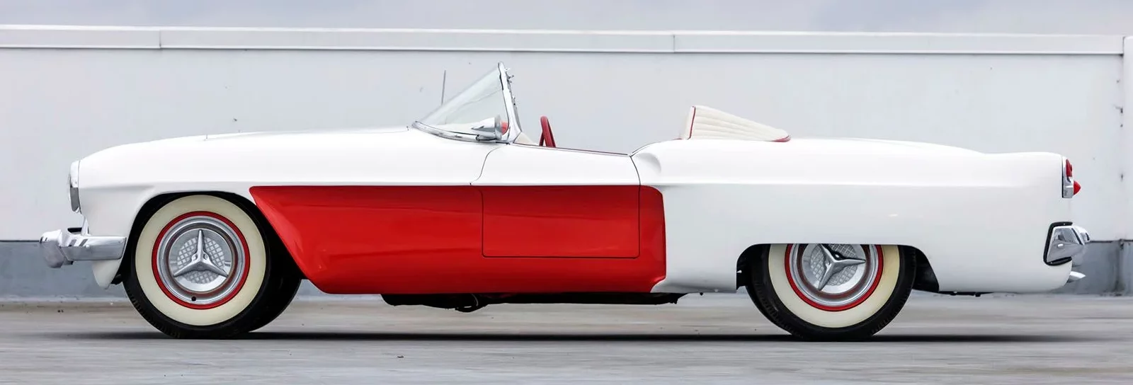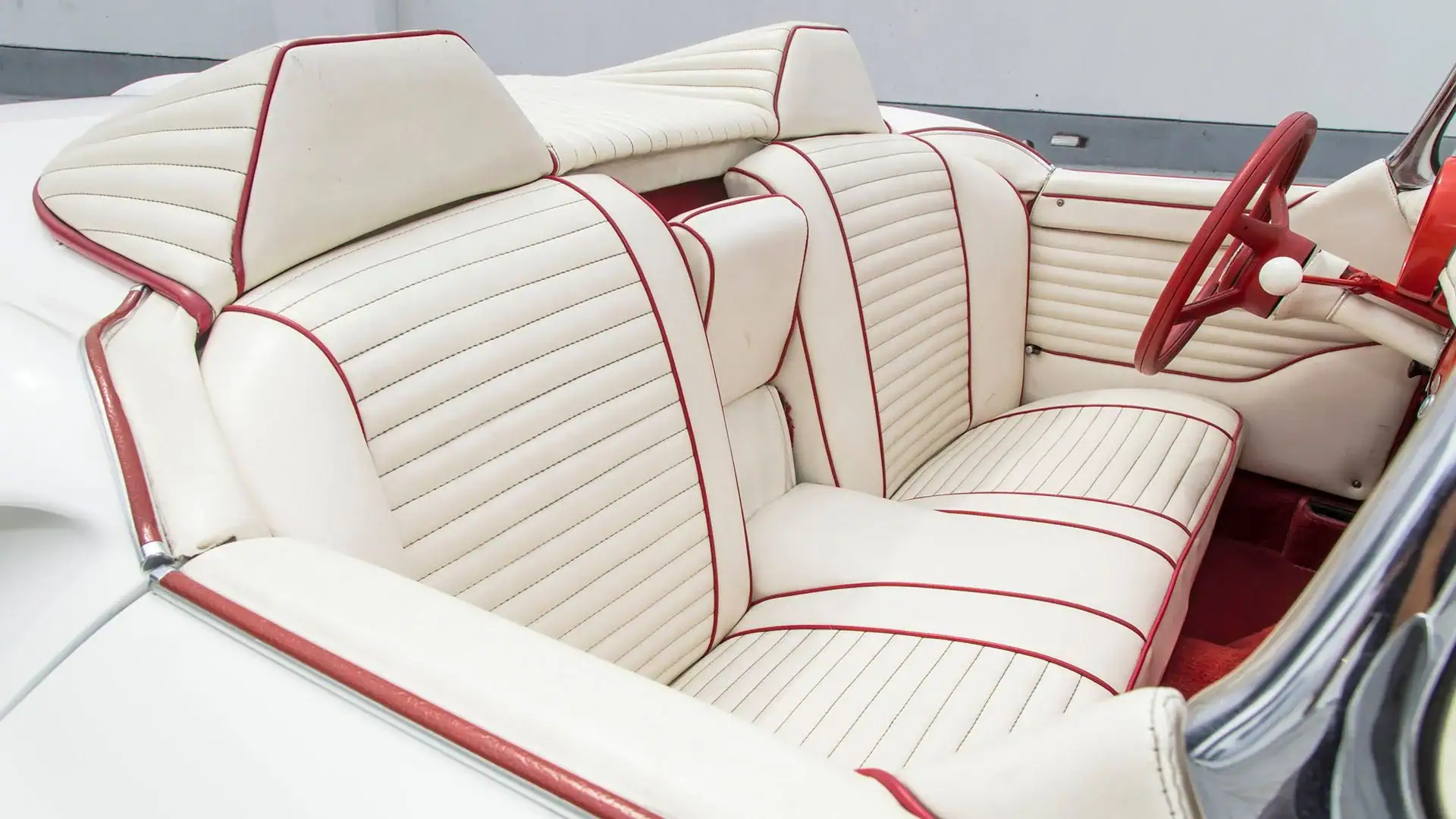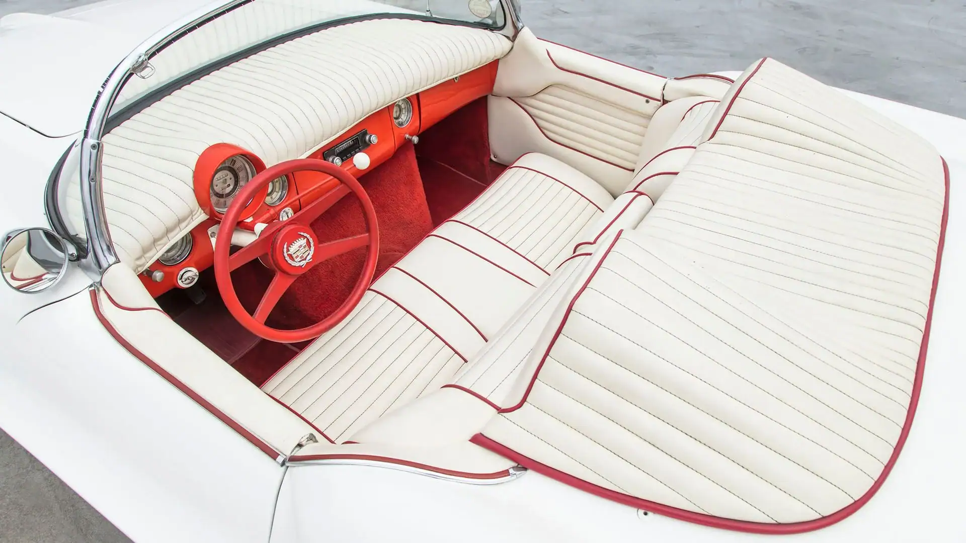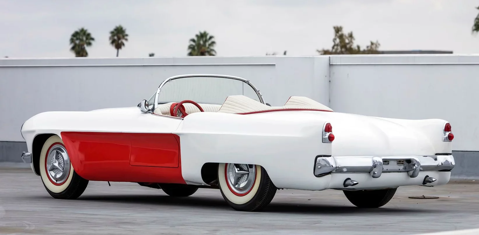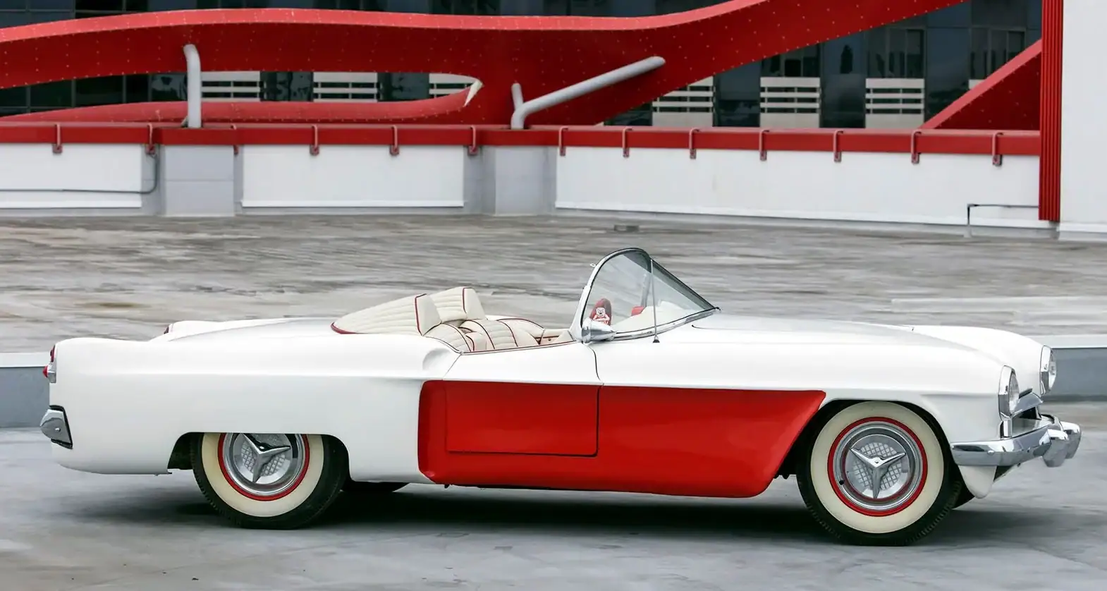 Une fois le moule durci, il a été coupé en six sections pour faciliter la création des panneaux de carrosserie finaux. Les touches finales comprenaient les pare-chocs d’une Studebaker de 1953, les phares d’une Cadillac de 1953, la barre de calandre d’une Chevrolet de 1952, les feux arrière modifiés d’une Chevrolet de 1953 et, enfin et surtout, le pare-brise, qui était en fait la lunette arrière d’une Studebaker de 1953, à l’intérieur d’un cadre de Chevrolet Corvette.